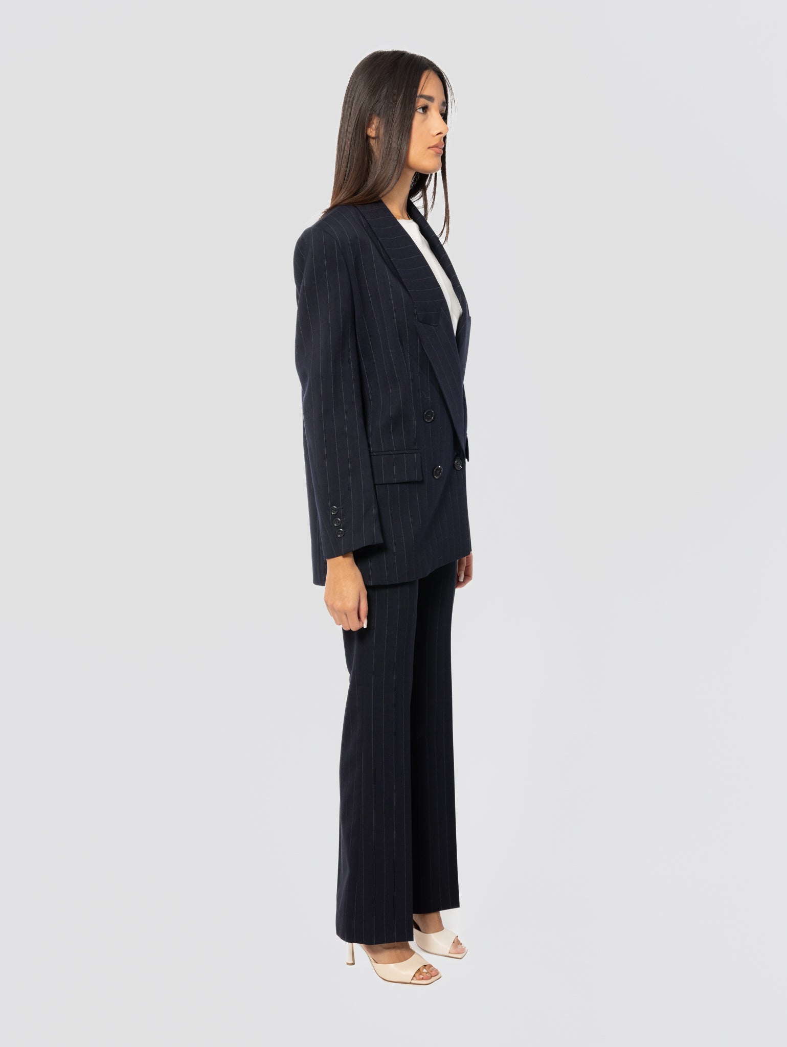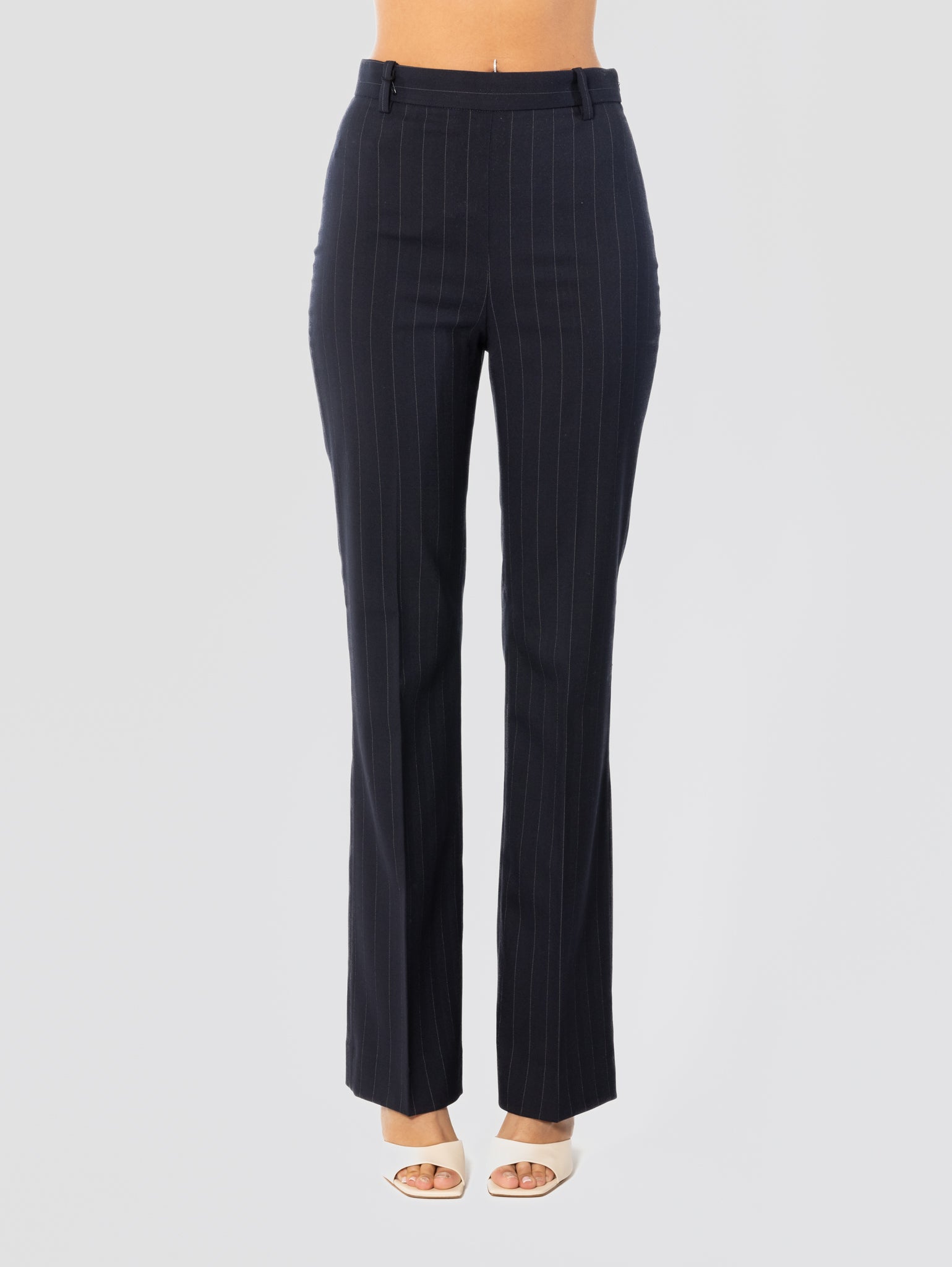 PINKO-Pantalone Gessato Vita Alta Blu-TRYME Shop