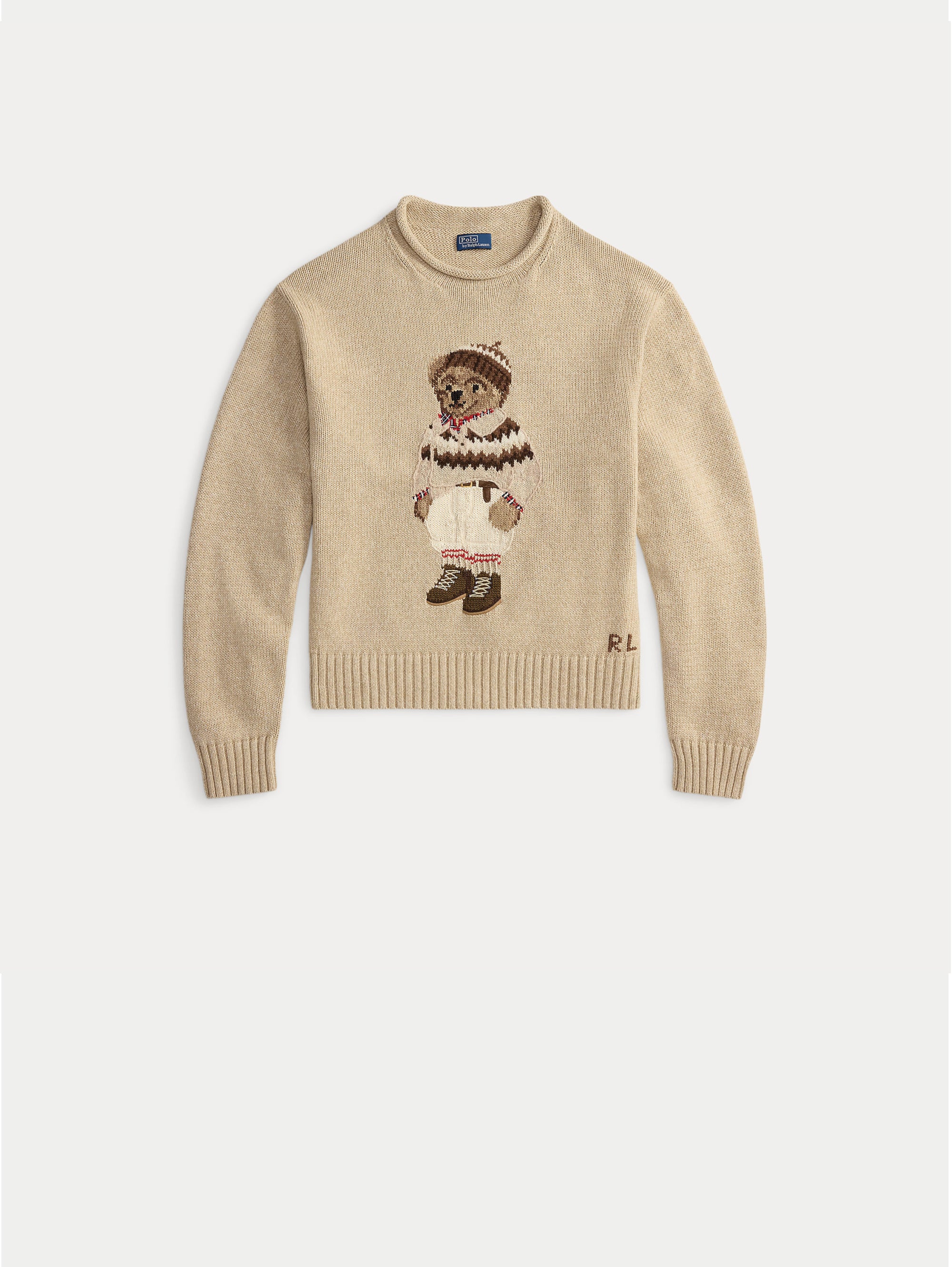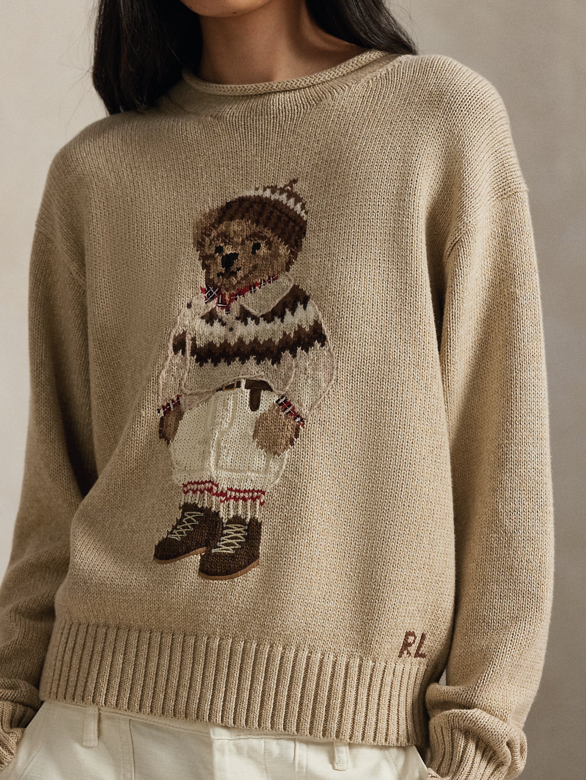 RALPH LAUREN-Maglione in Cotone con Intarsio Polo Bear Mandorla-TRYME Shop