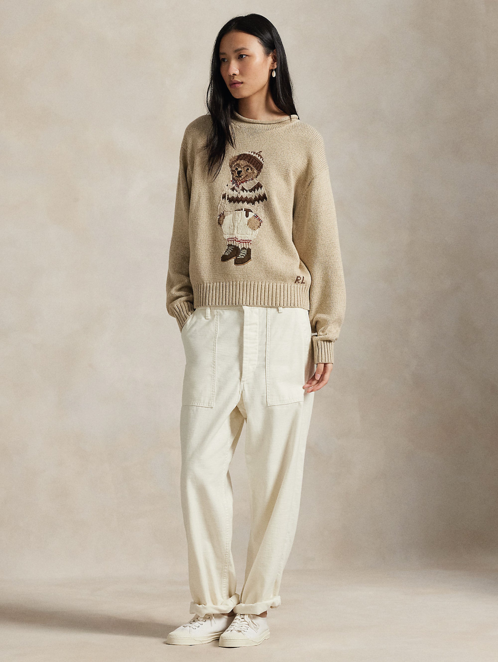 Maglione in cotone con intarsio dell'iconico Polo Bear da donna di Polo Ralph Lauren.
