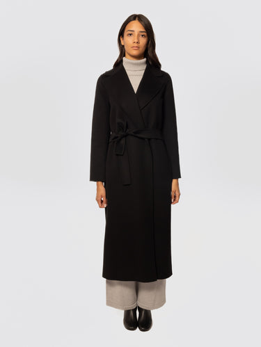 Cappotto lungo in drap di pura lana cucito a mano a vestaglia modello Poldo da donna di 'S Max Mara.