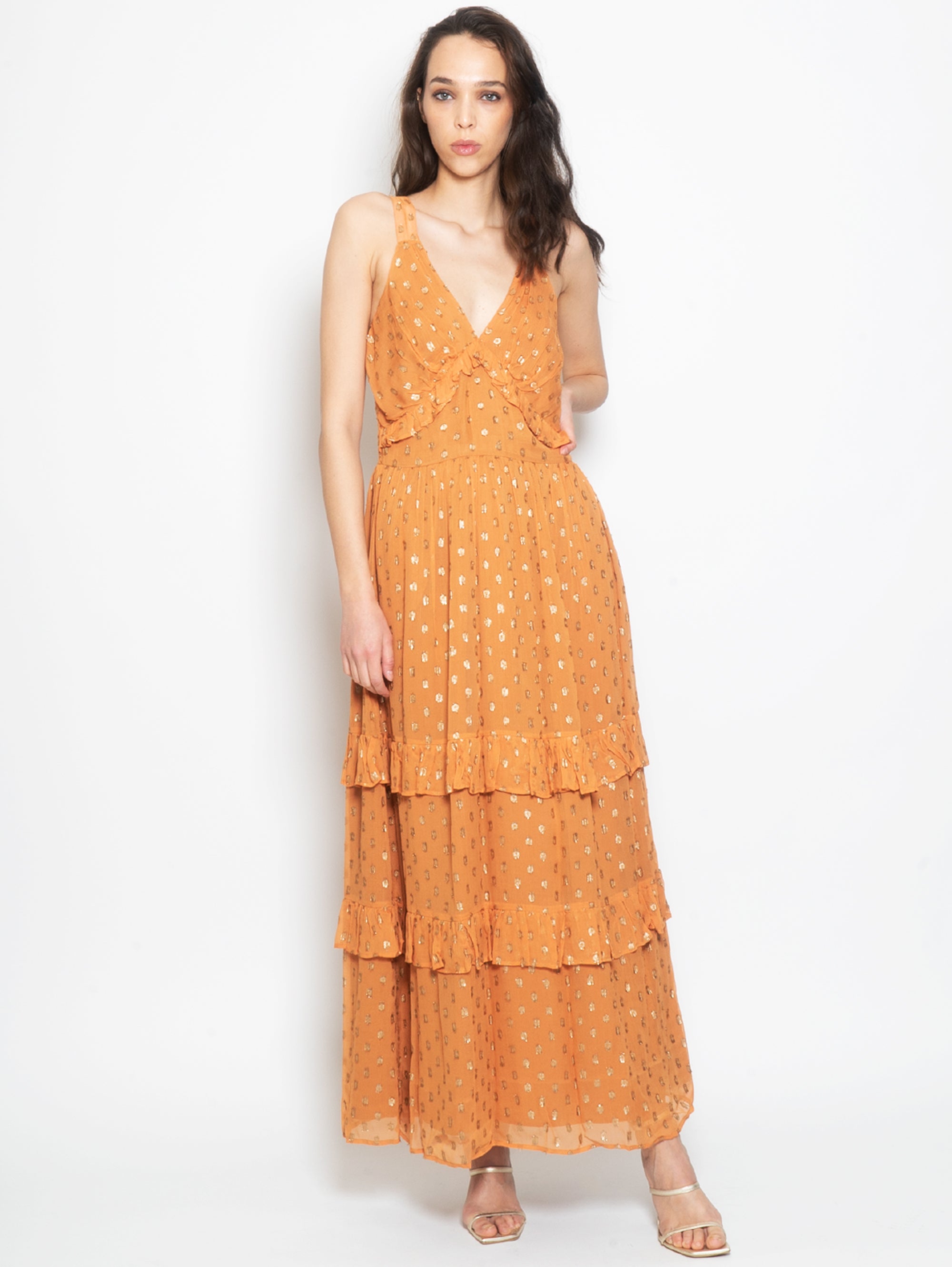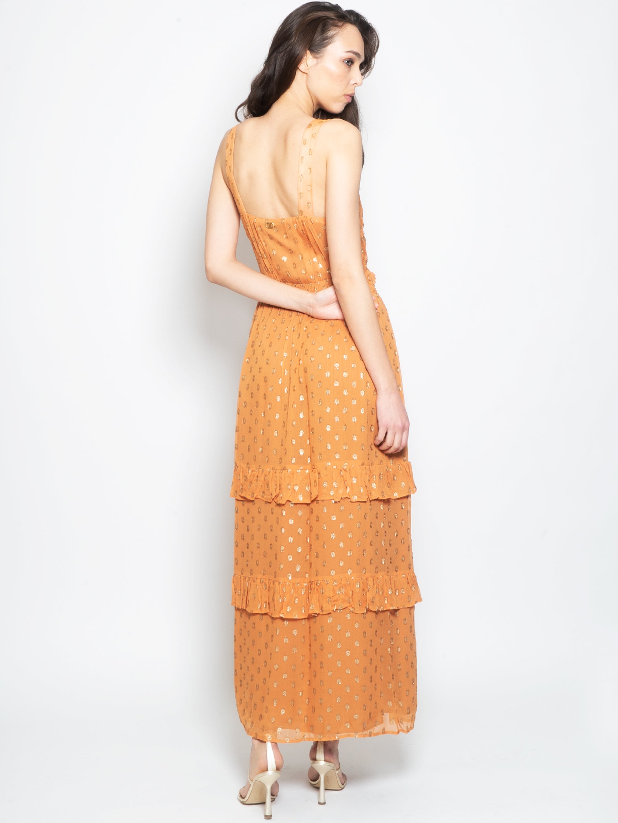 - Abito lungo in georgette di viscosa con lavorazione fil coupé