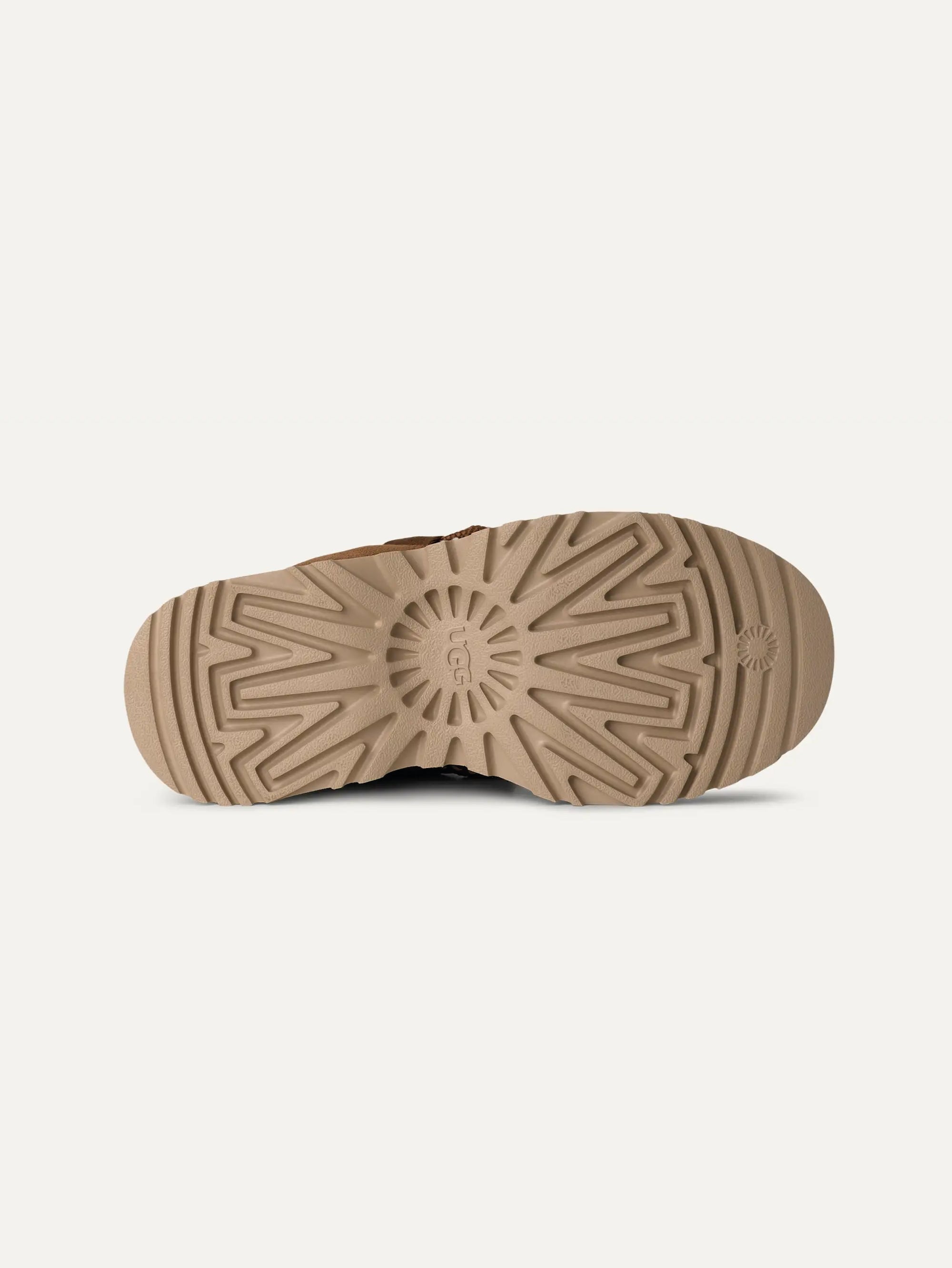 - Doppie cuciture, tirante in tessuto resistente sul tallone, applicazione con logo UGG®, linguetta imbottita