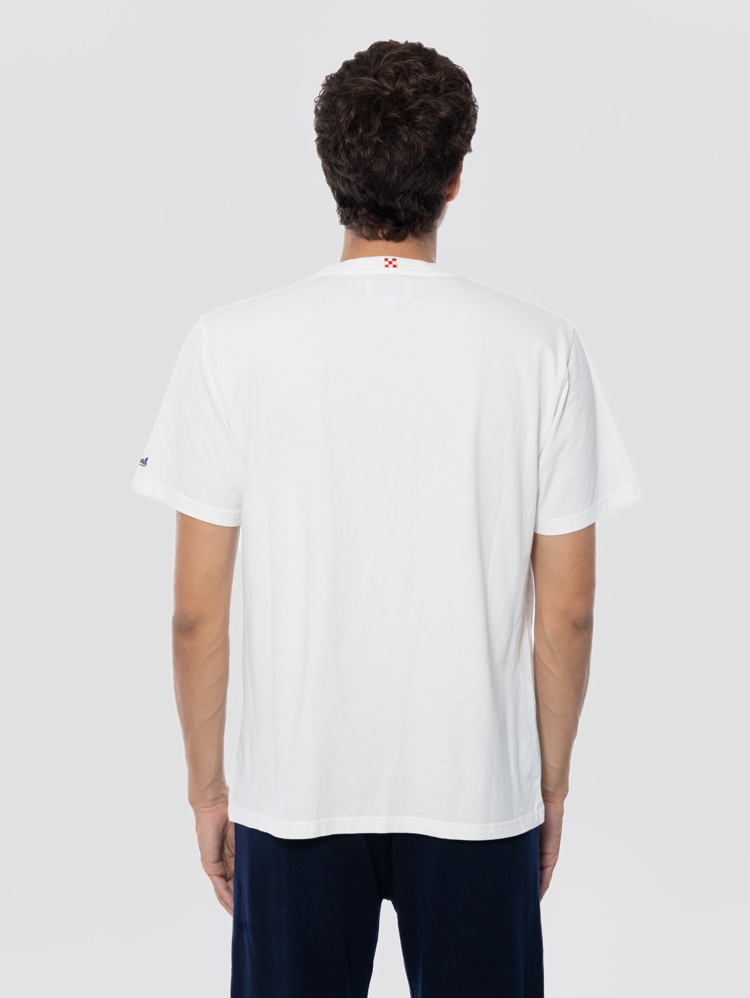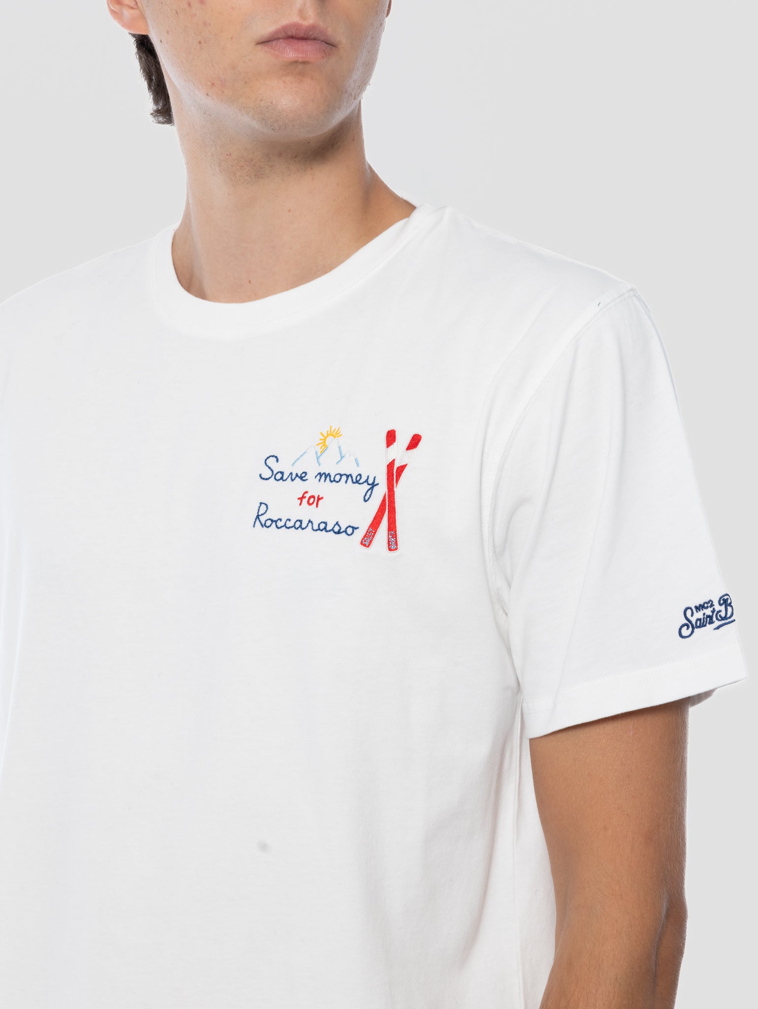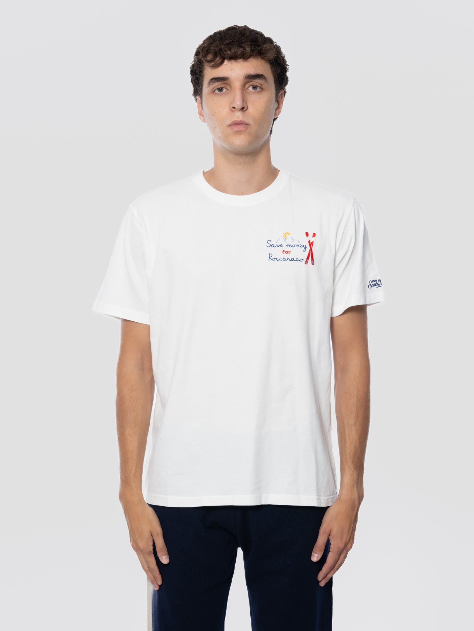 T-shirt girocollo in cotone organico con ricamo Save Money For Roccaraso modello Arnott da uomo di Mc2 Saint Barth.