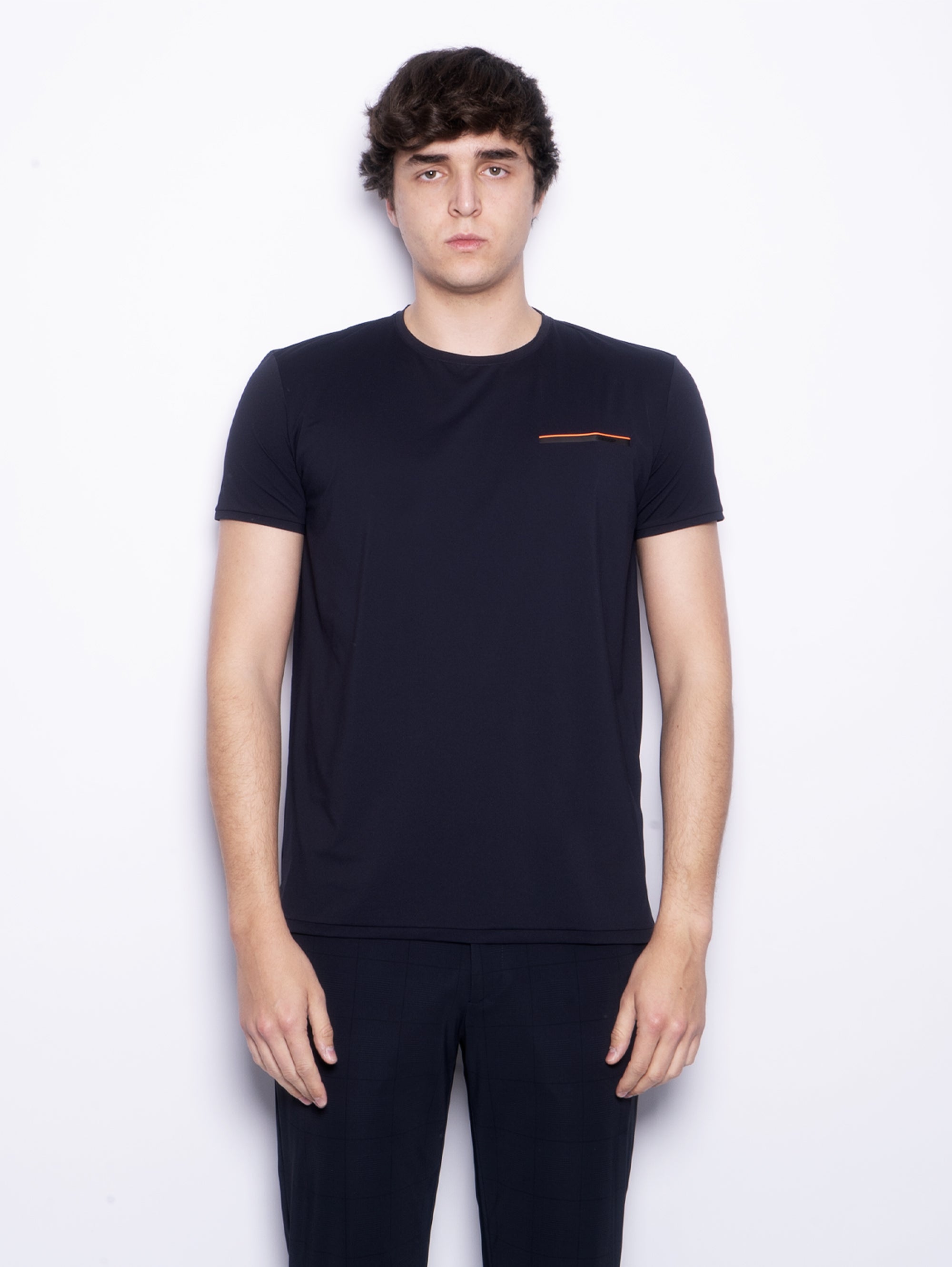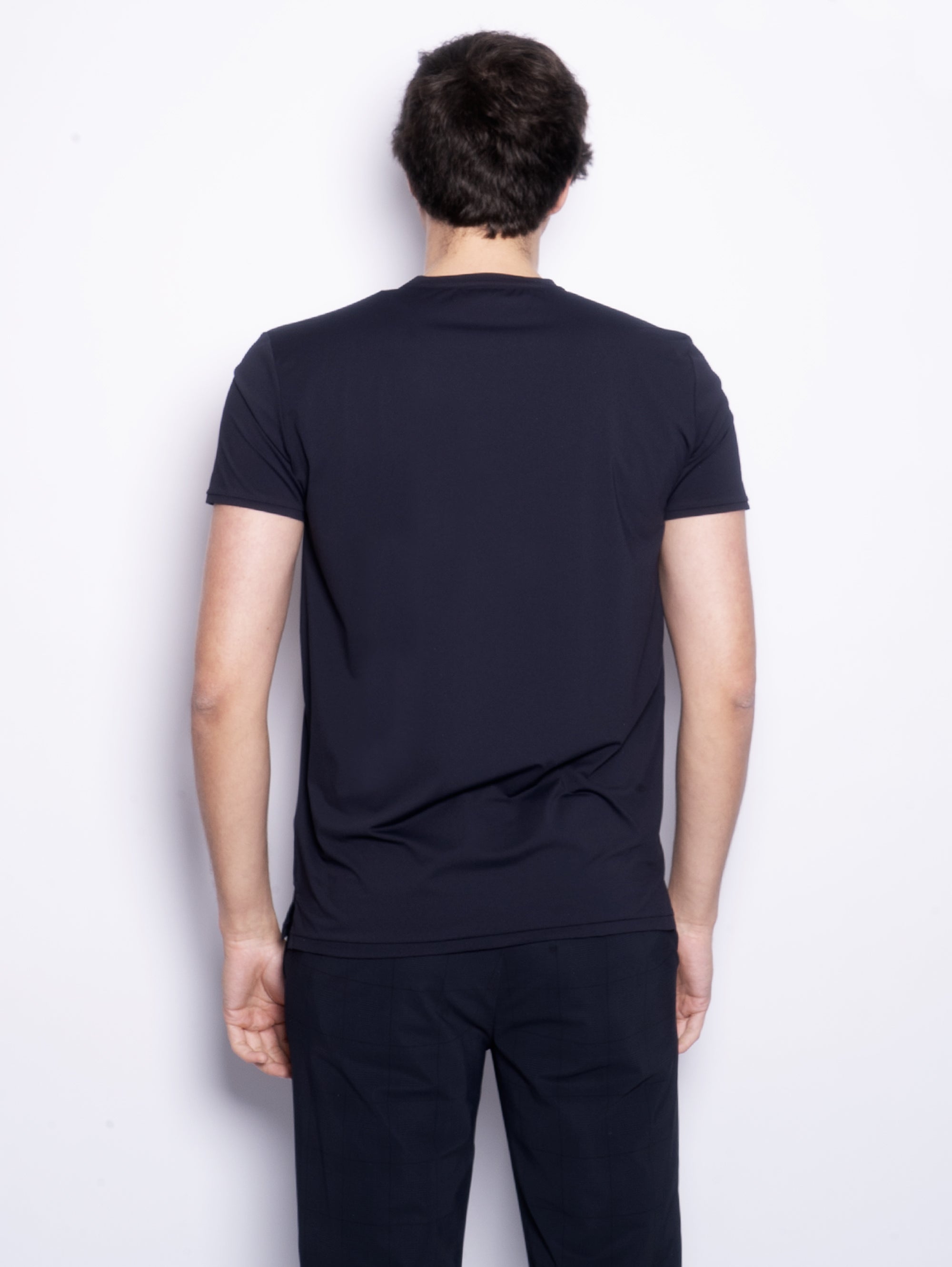 T-shirt in Tessuto Traspirante con Taschino Blu Notte