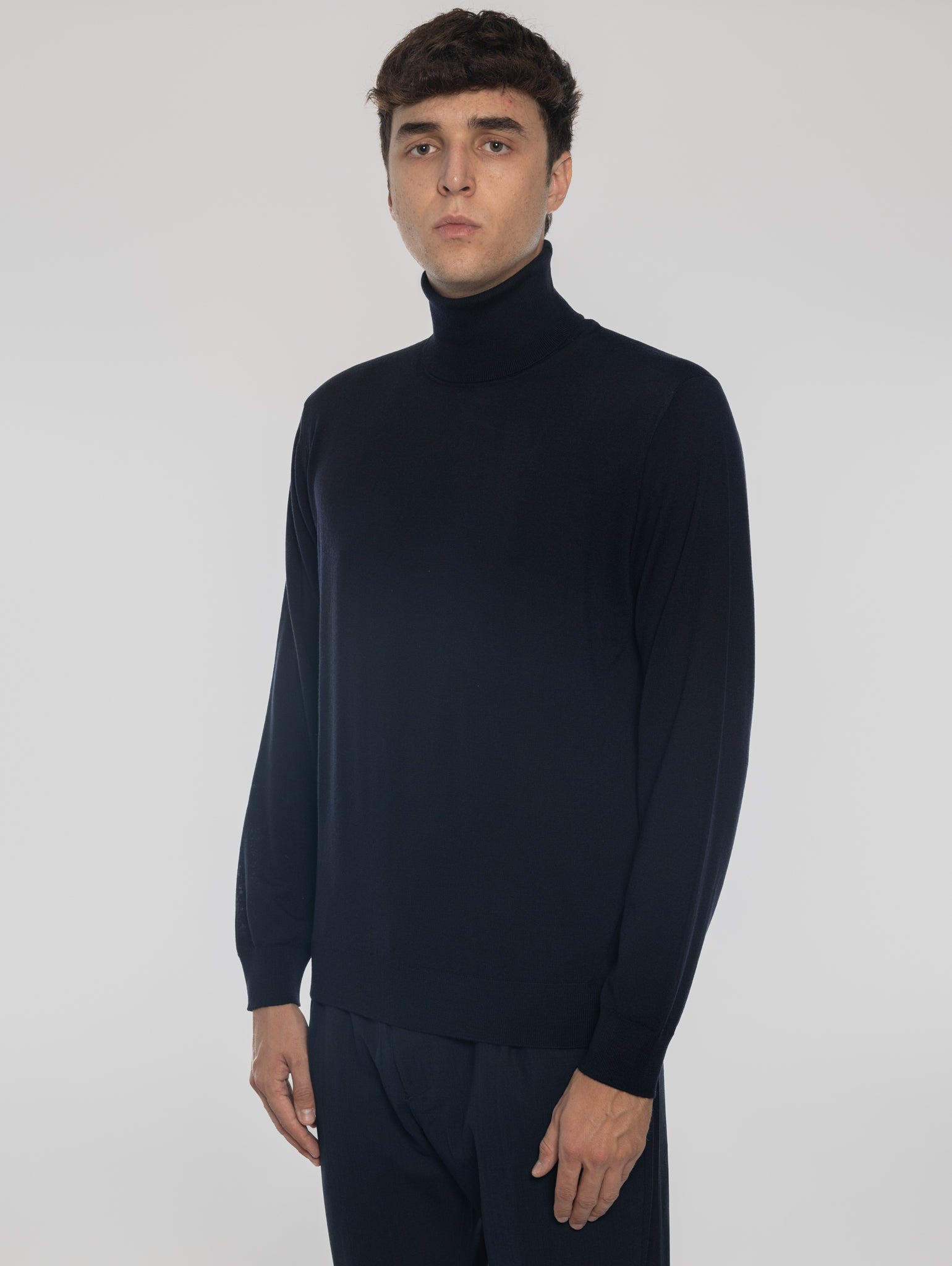 Pullover mit Stehkragen aus ultrafeiner Wolle in Blau