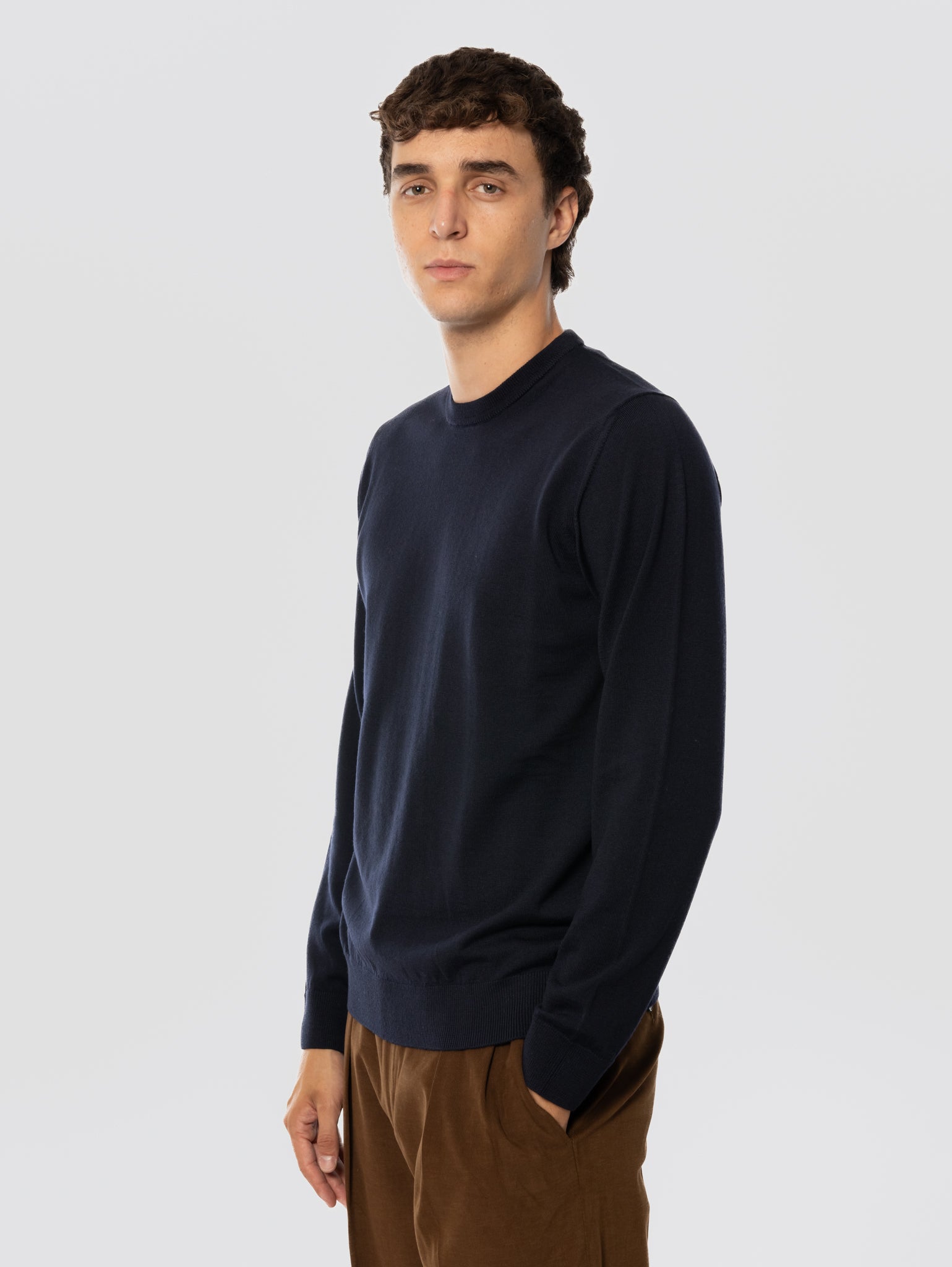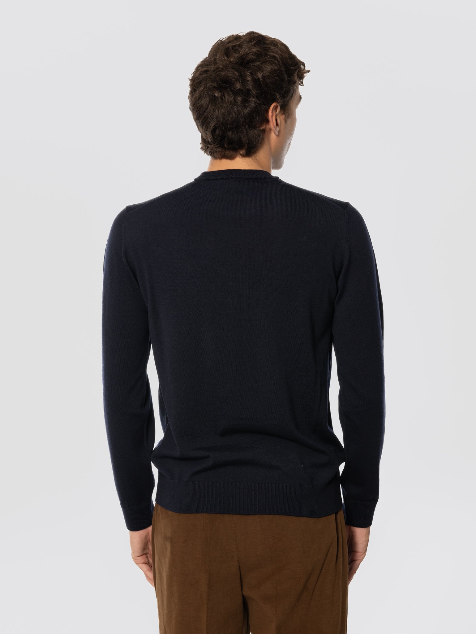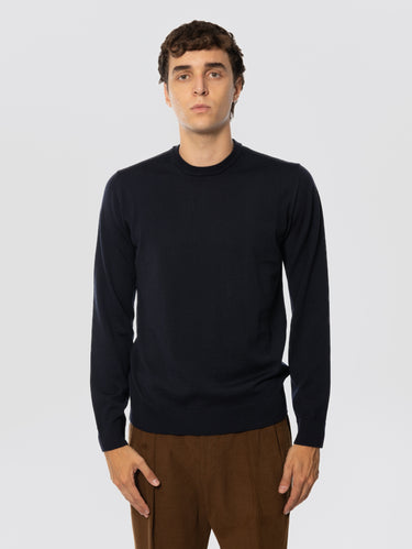 Maglione Girocollo in Lana Extrafine Blu Notte