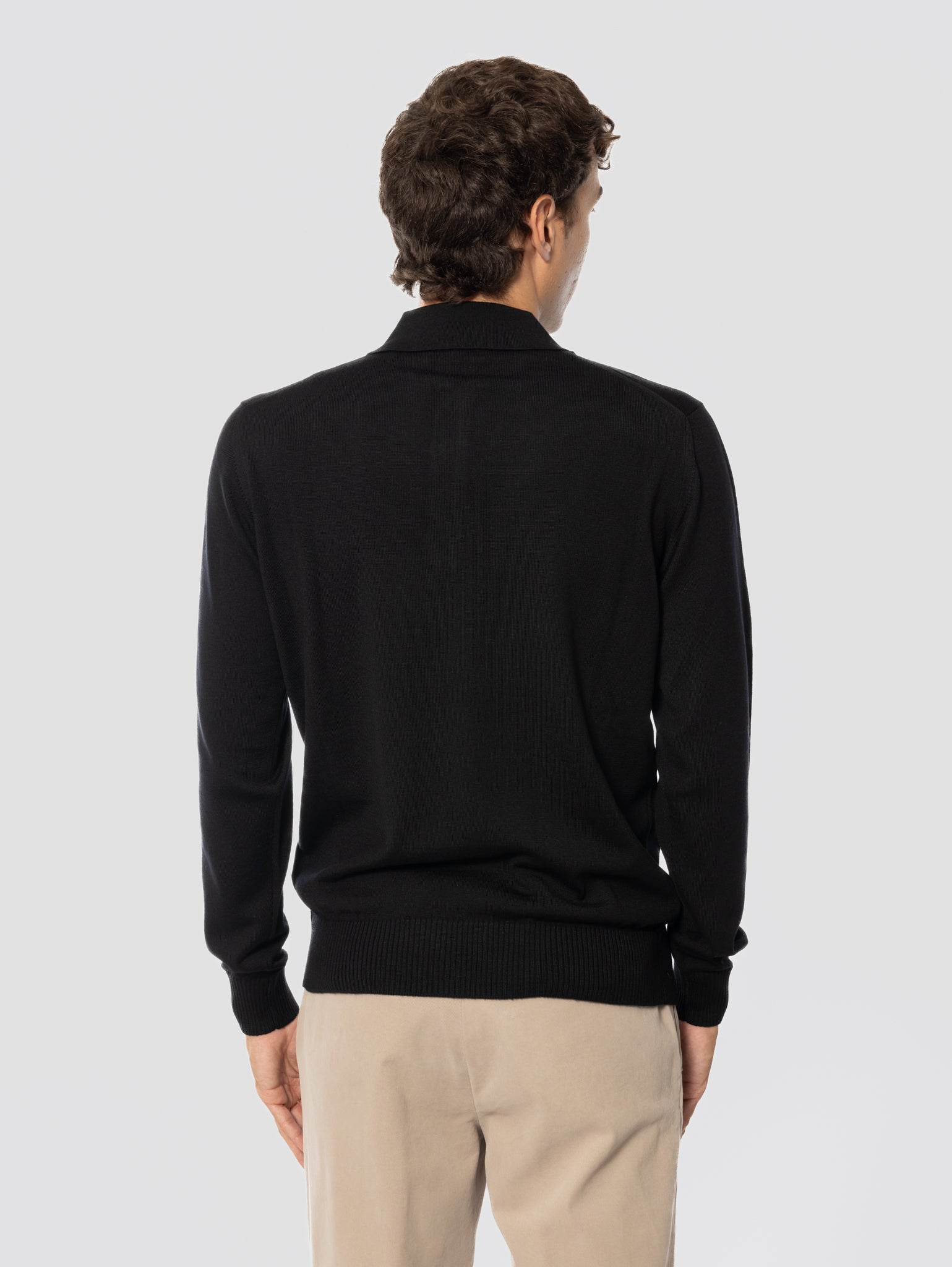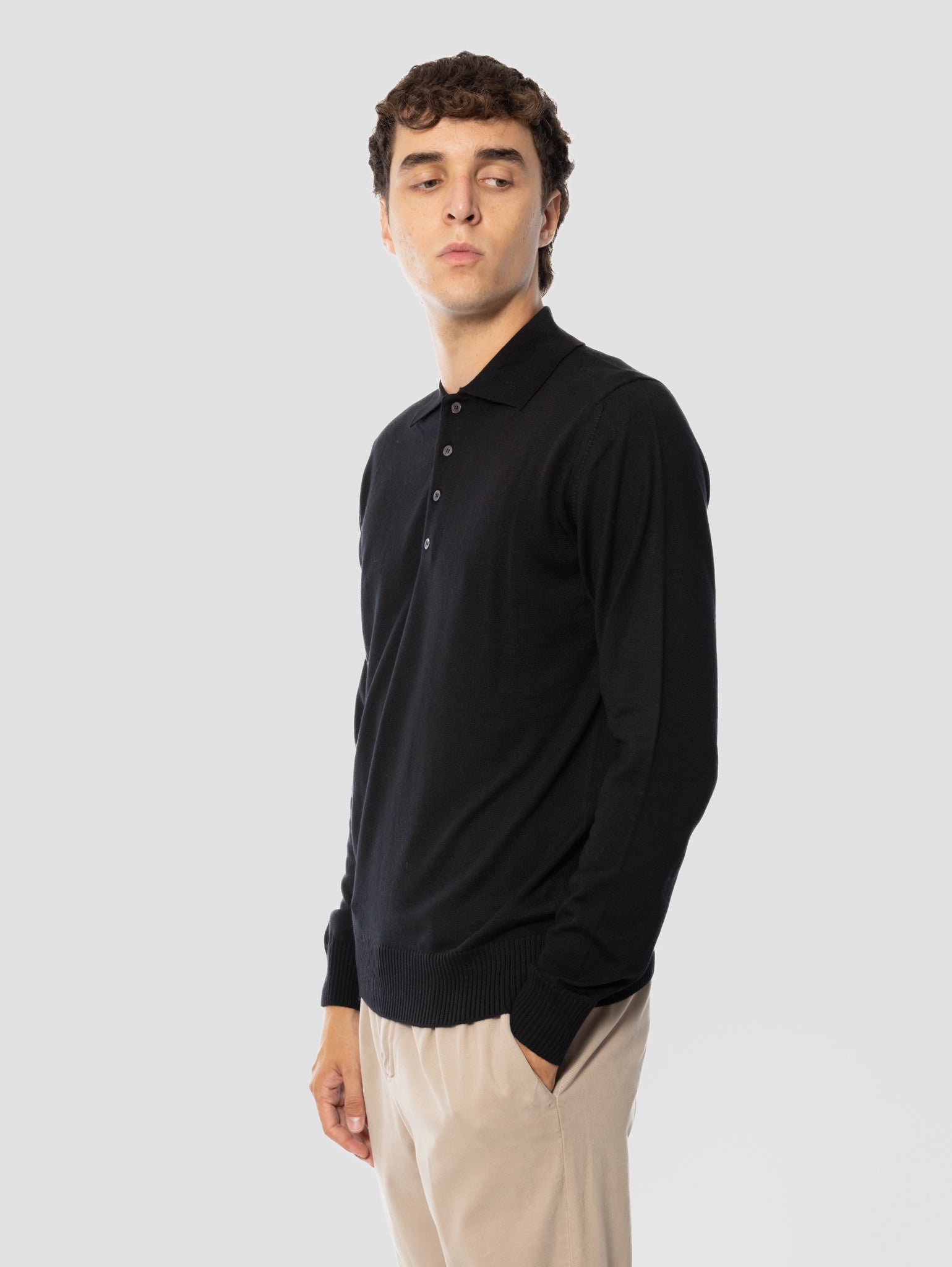 Polo Quattro Bottoni in Lana Merinos Nero