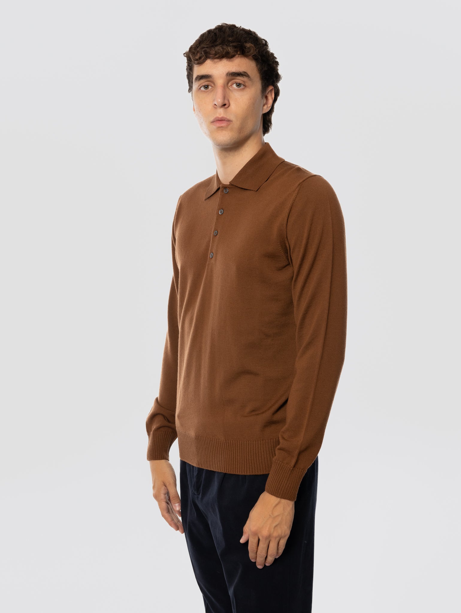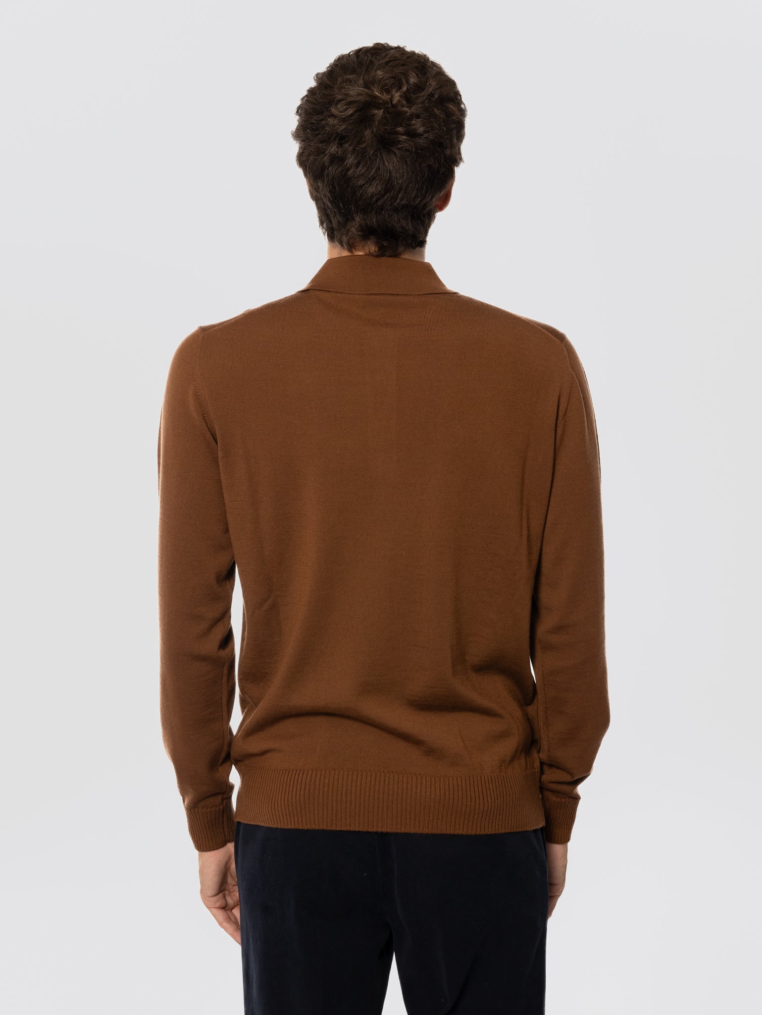 Polo Quattro Bottoni in Lana Merinos Tabacco