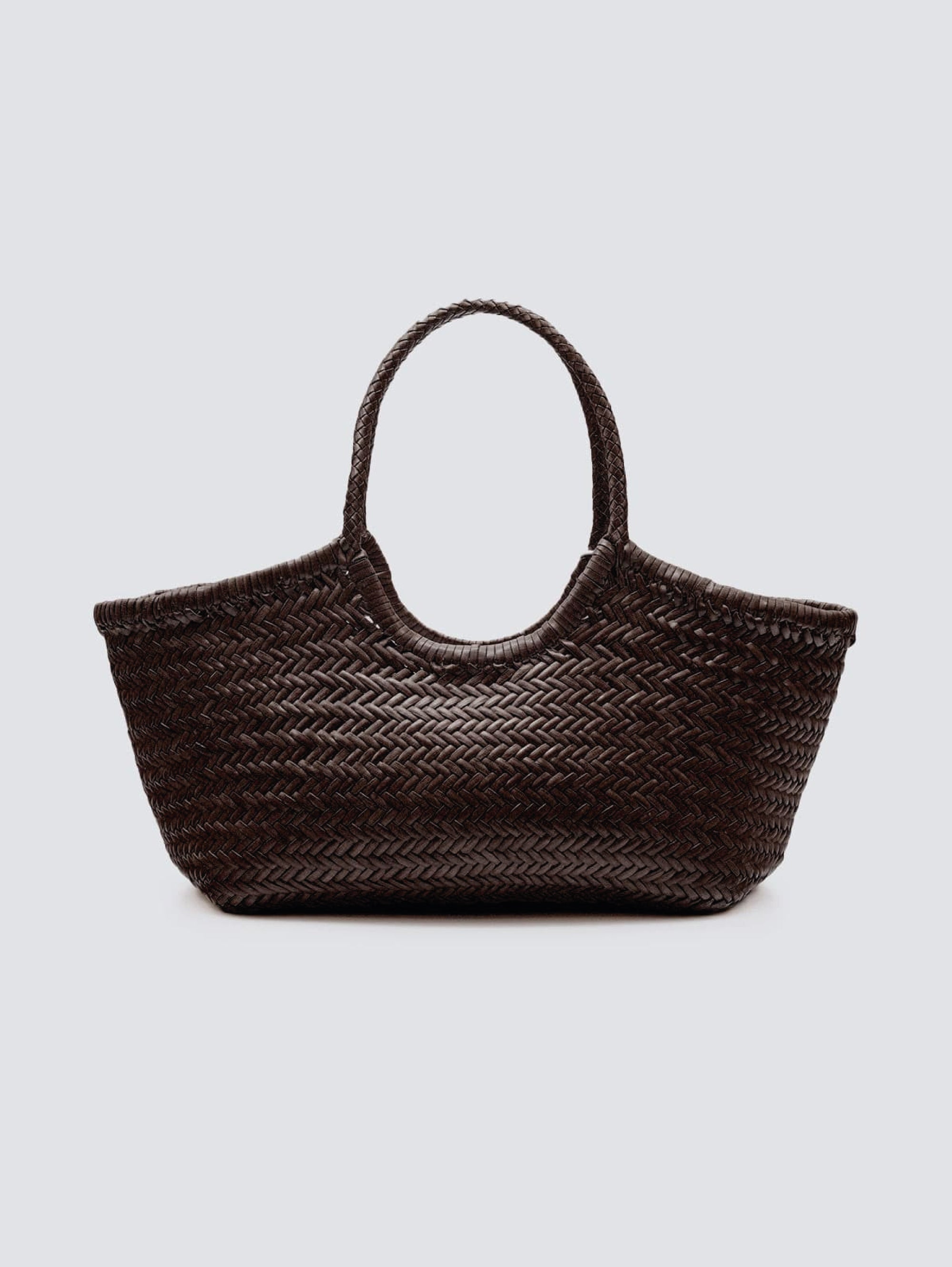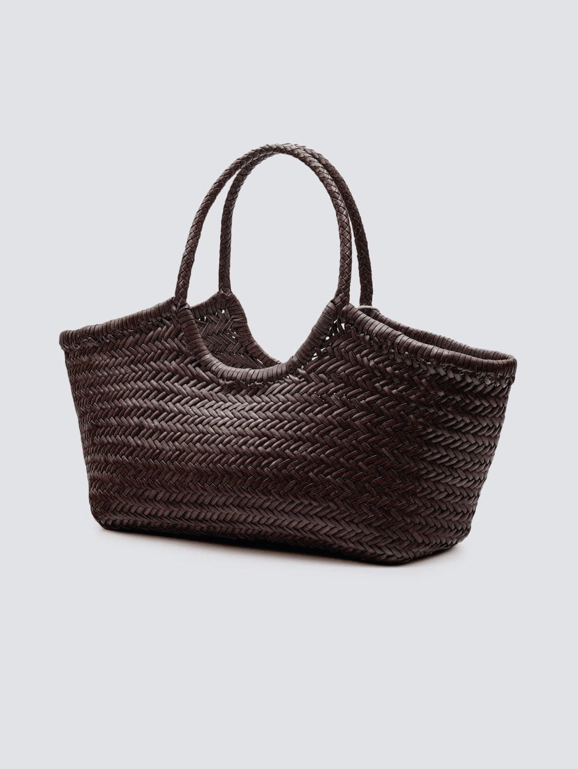 - Borsa a mano ampia realizzata in pelle di vitello intrecciata a mano