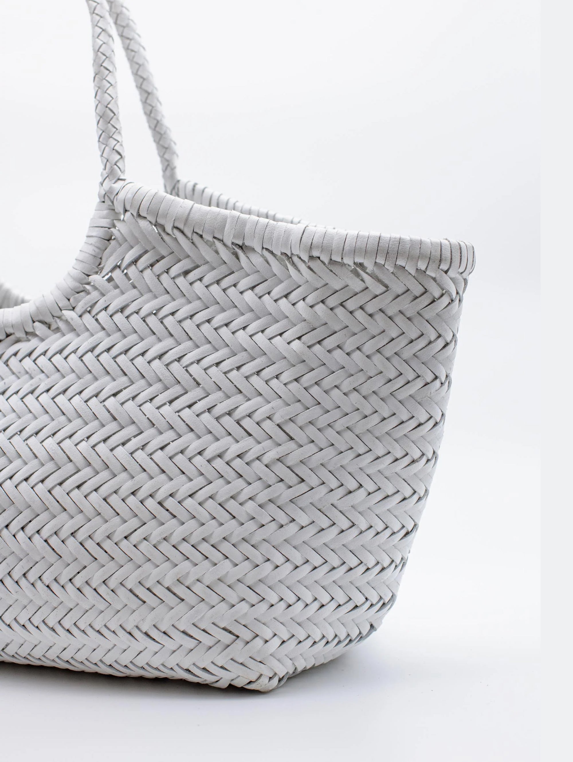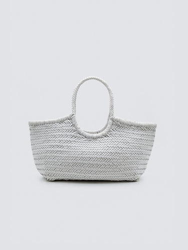 - Borsa a mano ampia realizzata in pelle di vitello intrecciata a mano