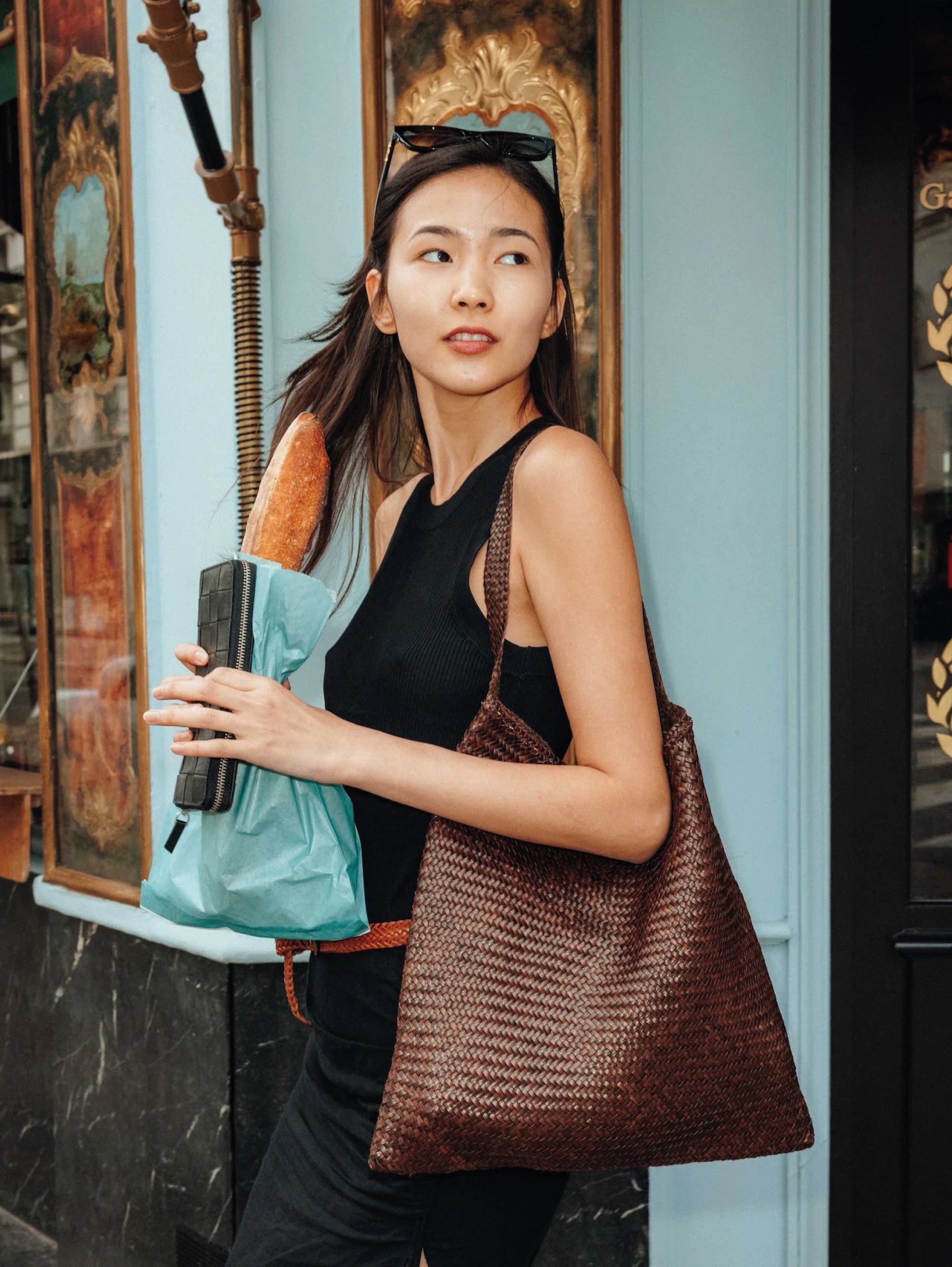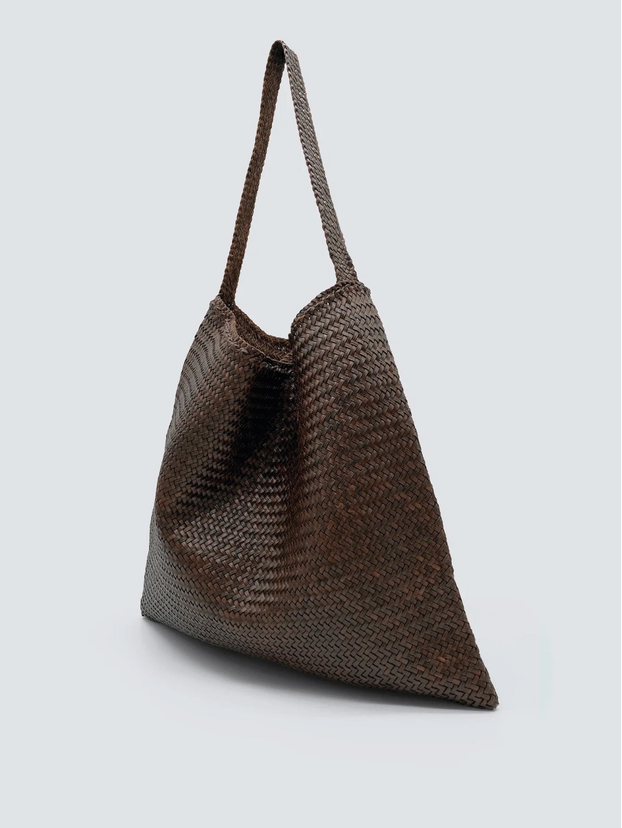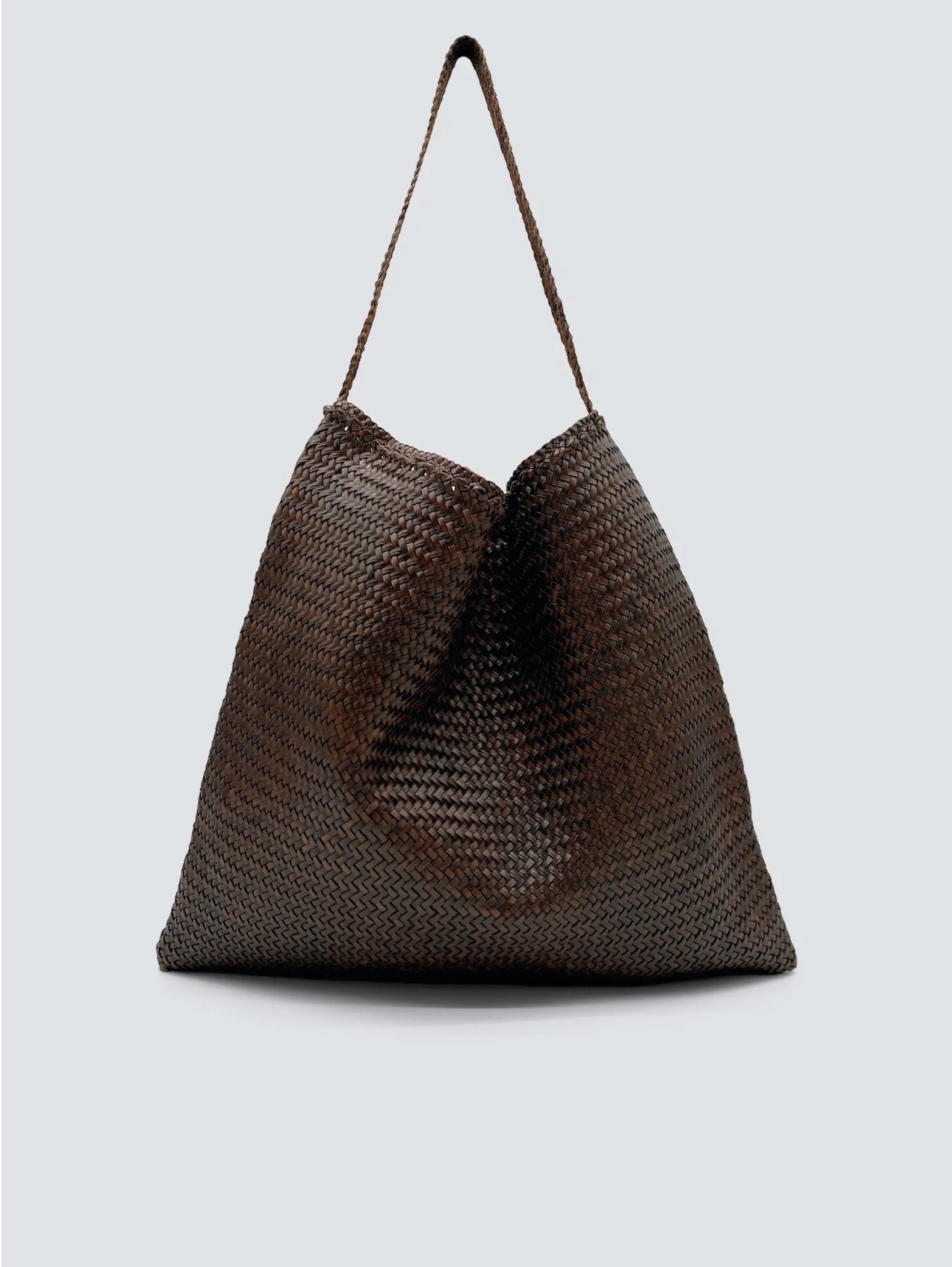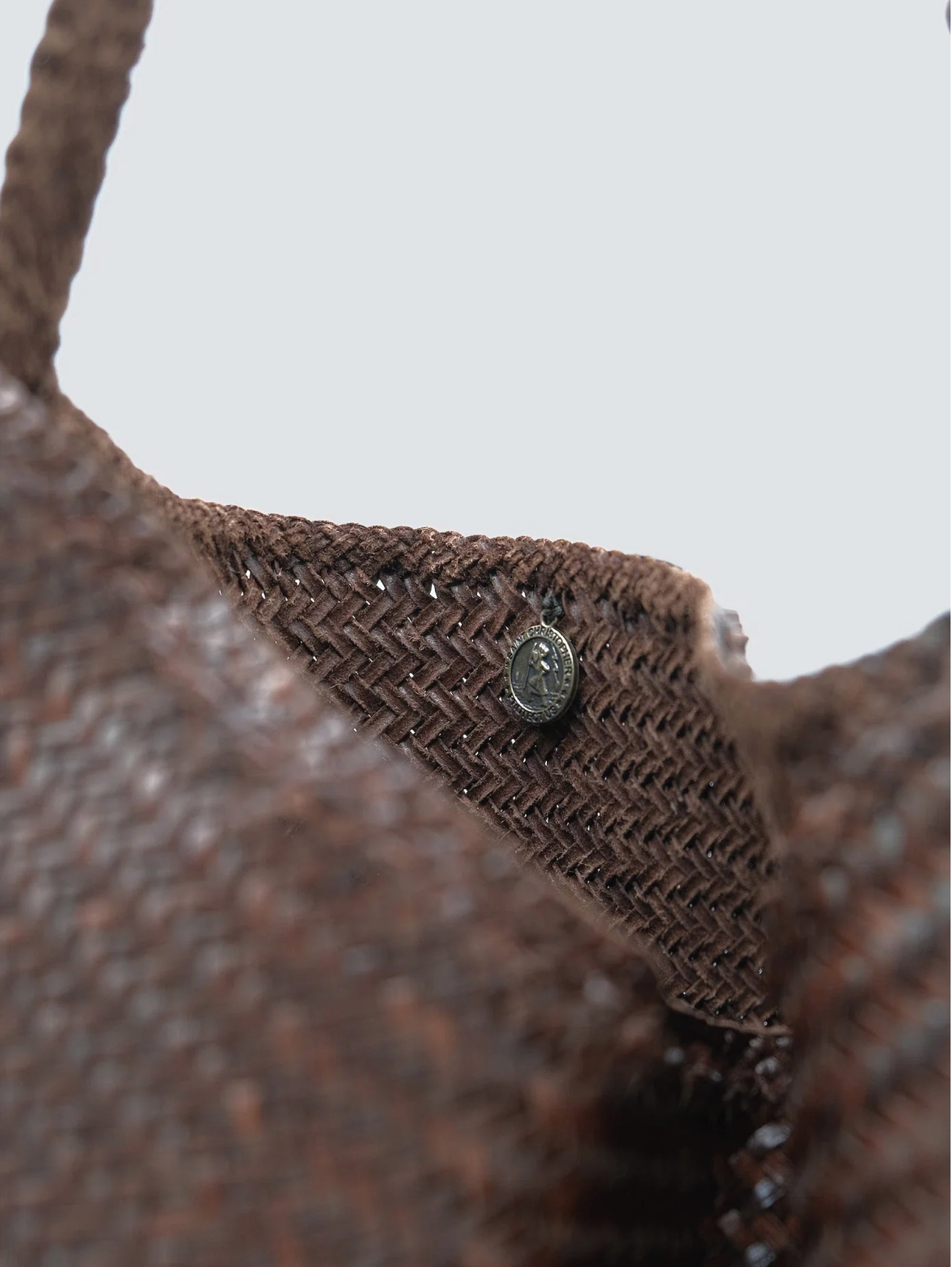 - Borsa tote ampia sfoderata in pelle di vitello di bufalo intrecciata a mano