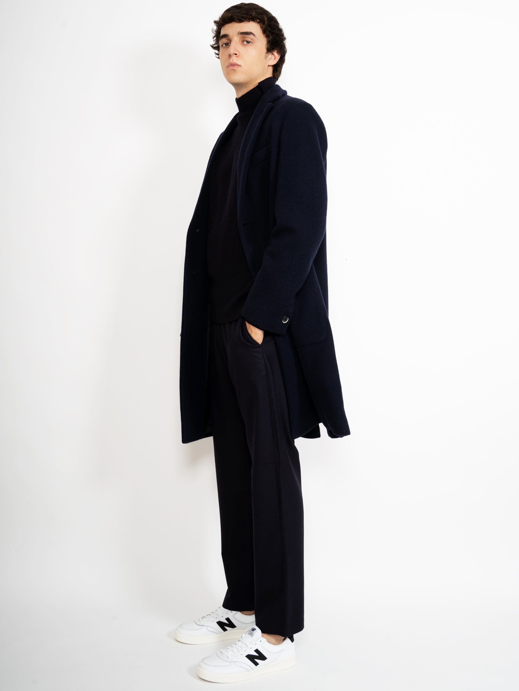 Marineblauer Baron-Mantel mit zwei Knöpfen
