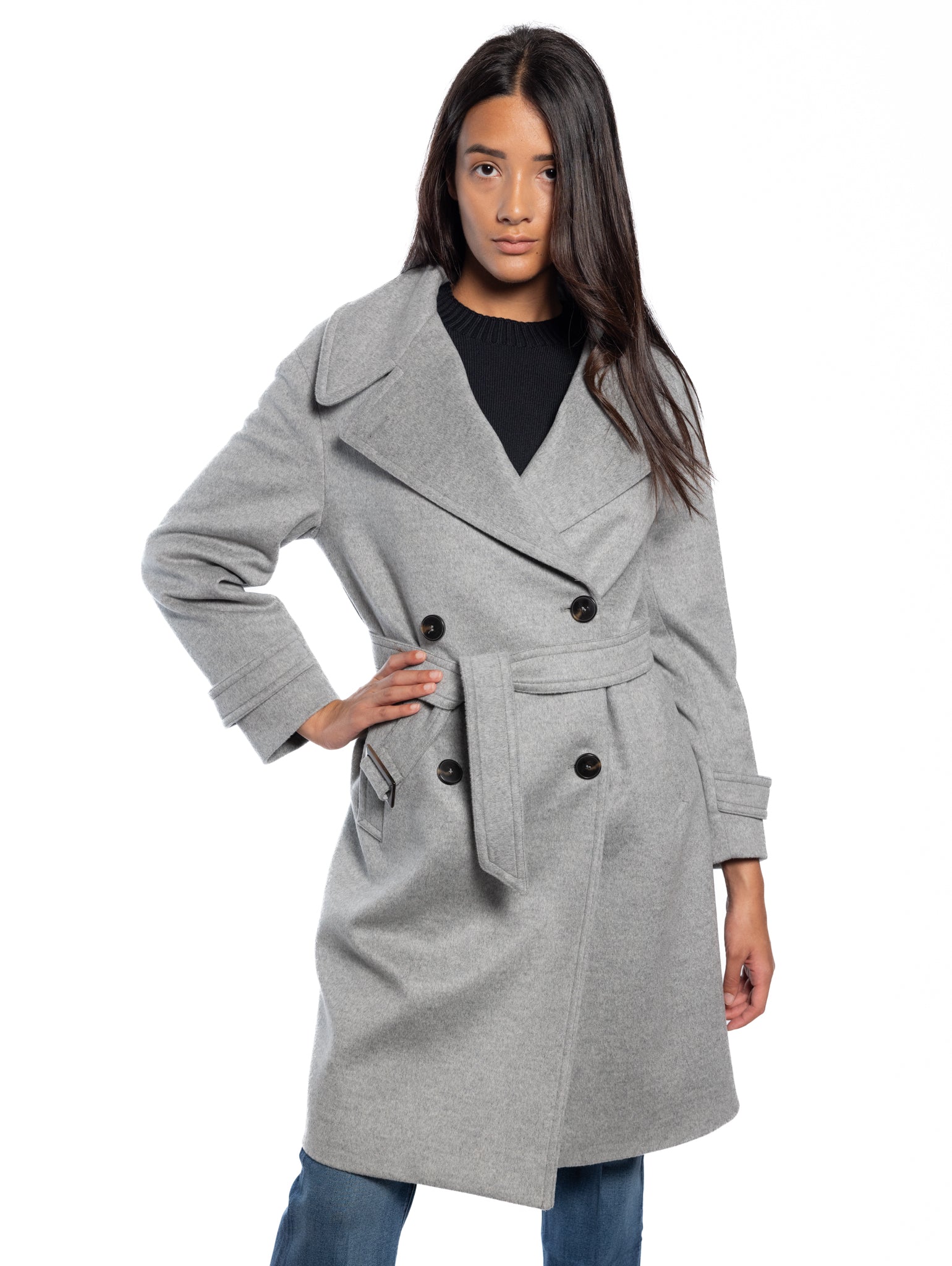 Langer zweireihiger Mantel aus reiner Schurwolle mit Gürtel für Damen von Breras Milano.