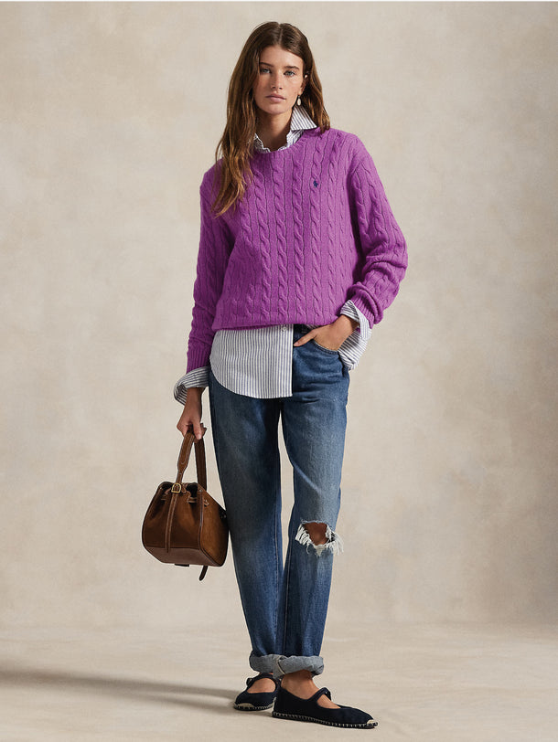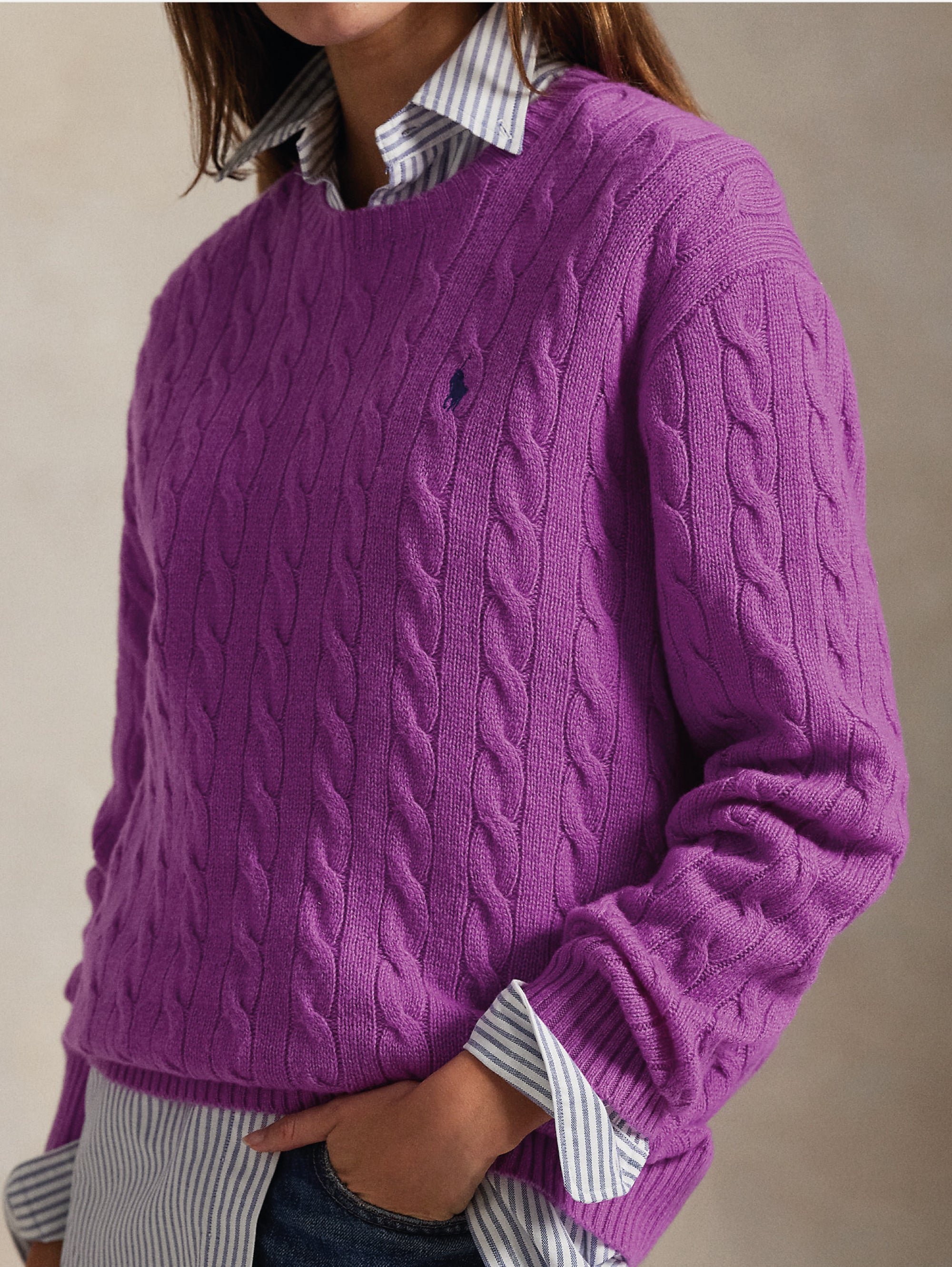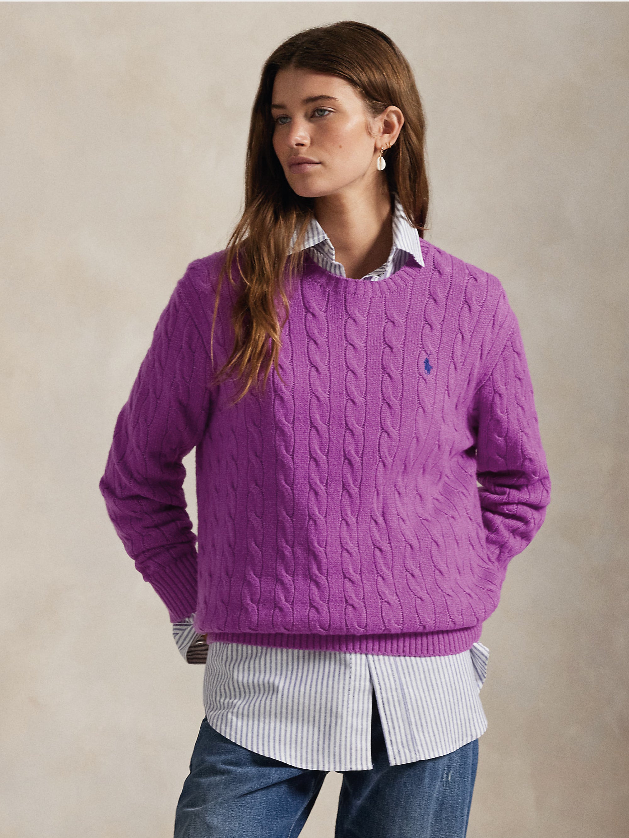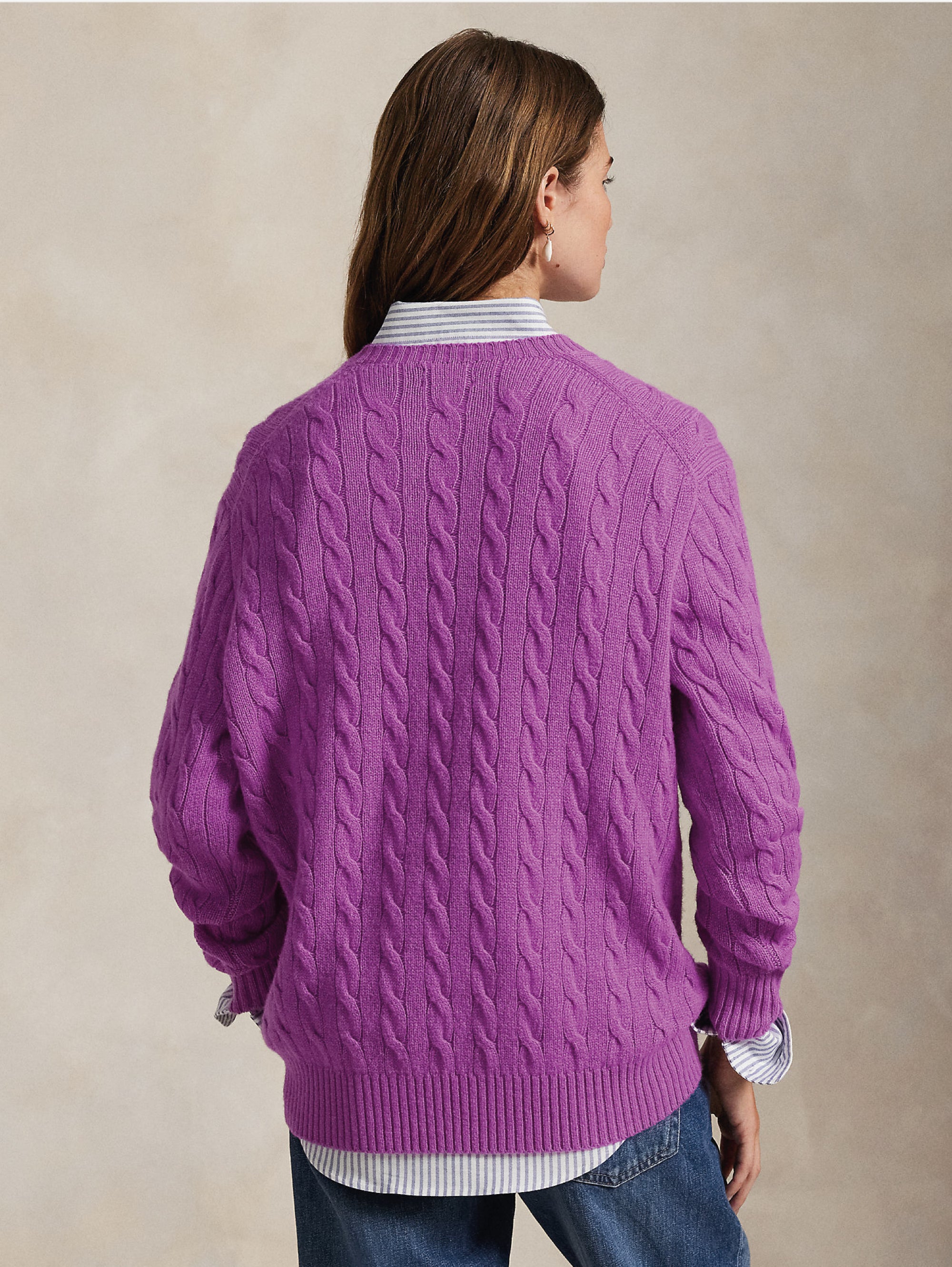 - Maglione lavorato a treccia in lana e cashmere silhouette rilassata