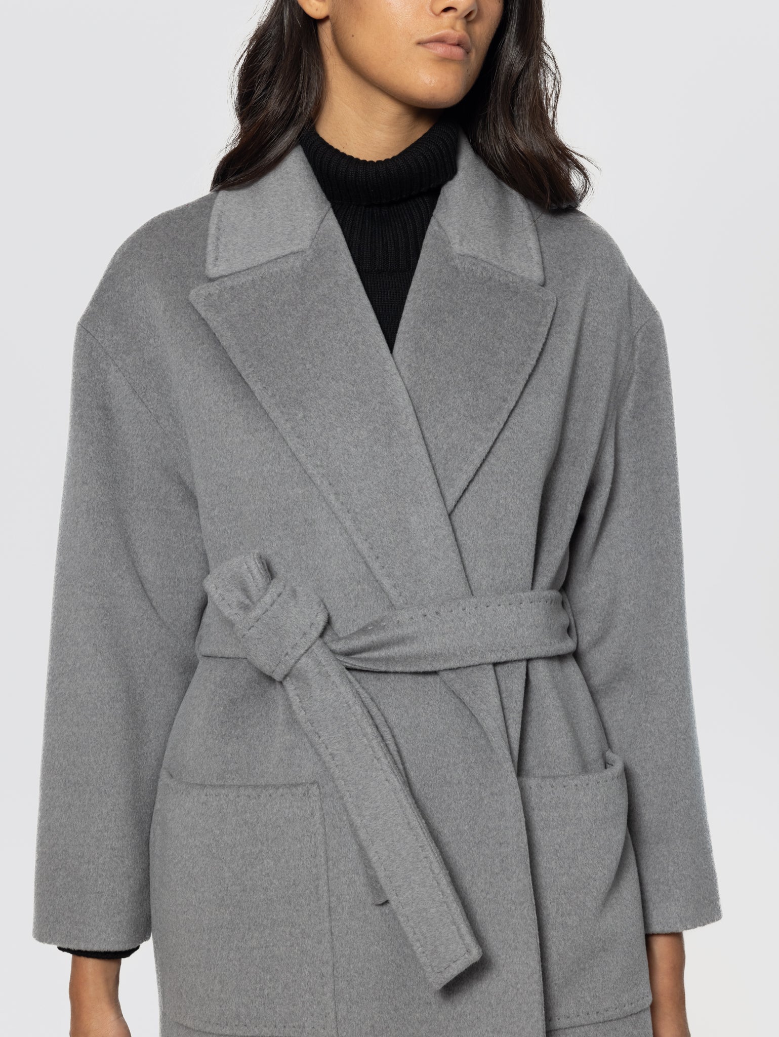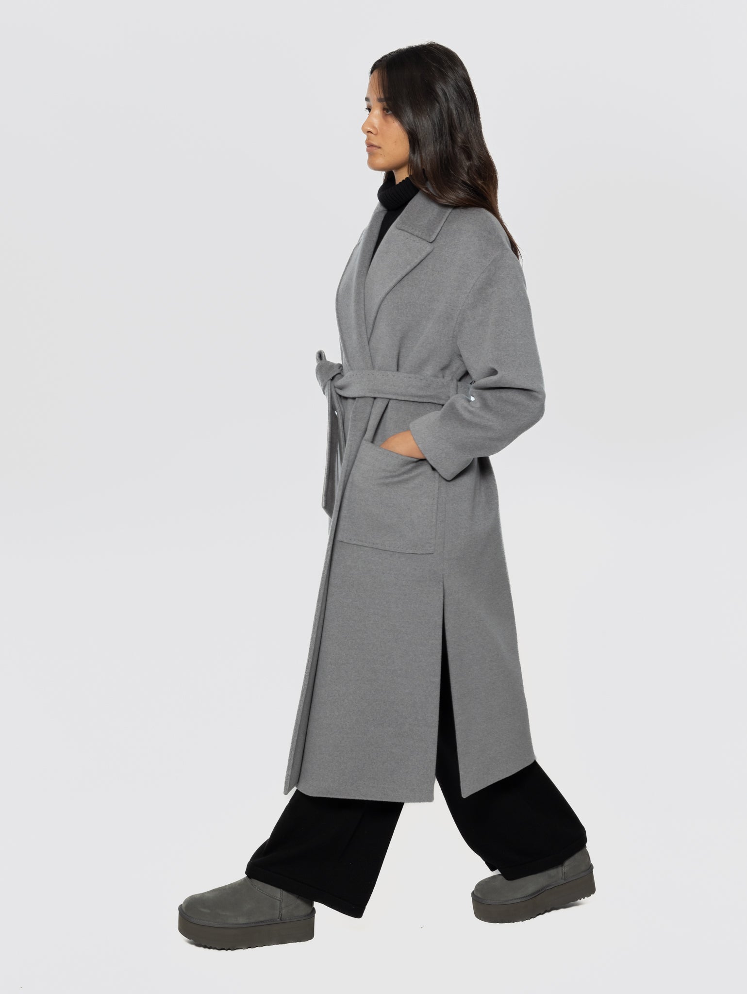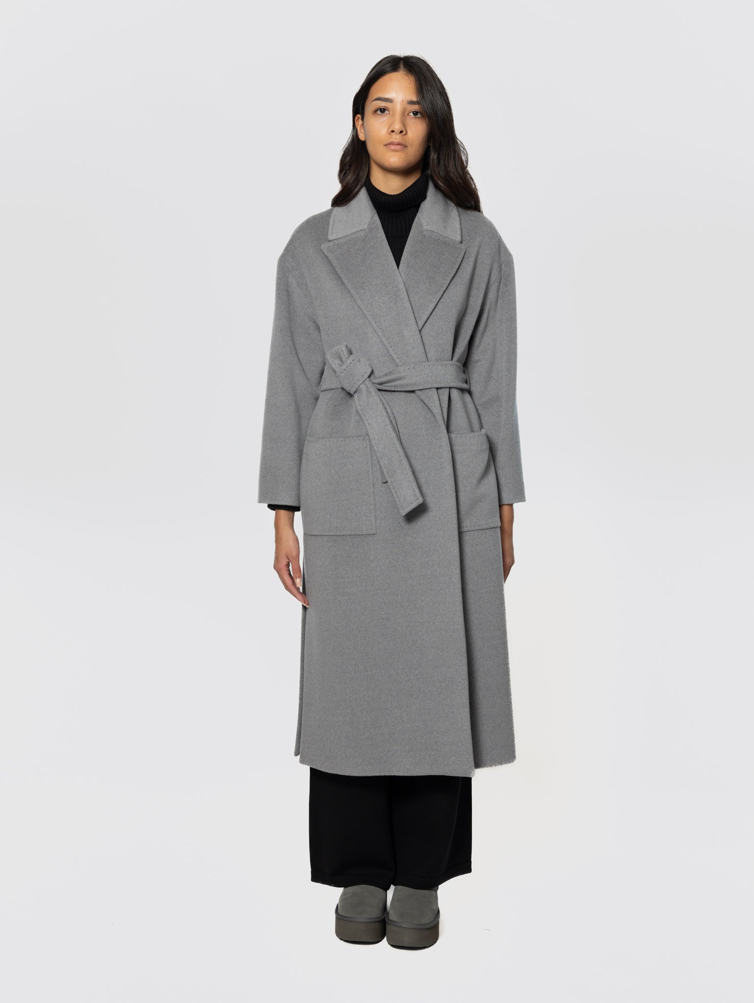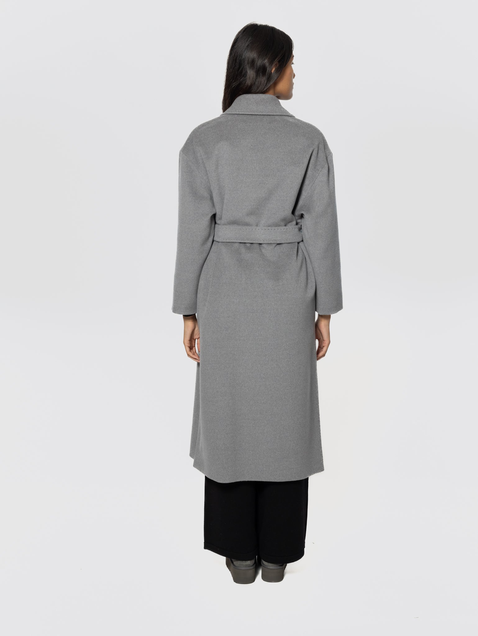 Cappotto Lungo in Lana con Bottone Nascosto Grigio