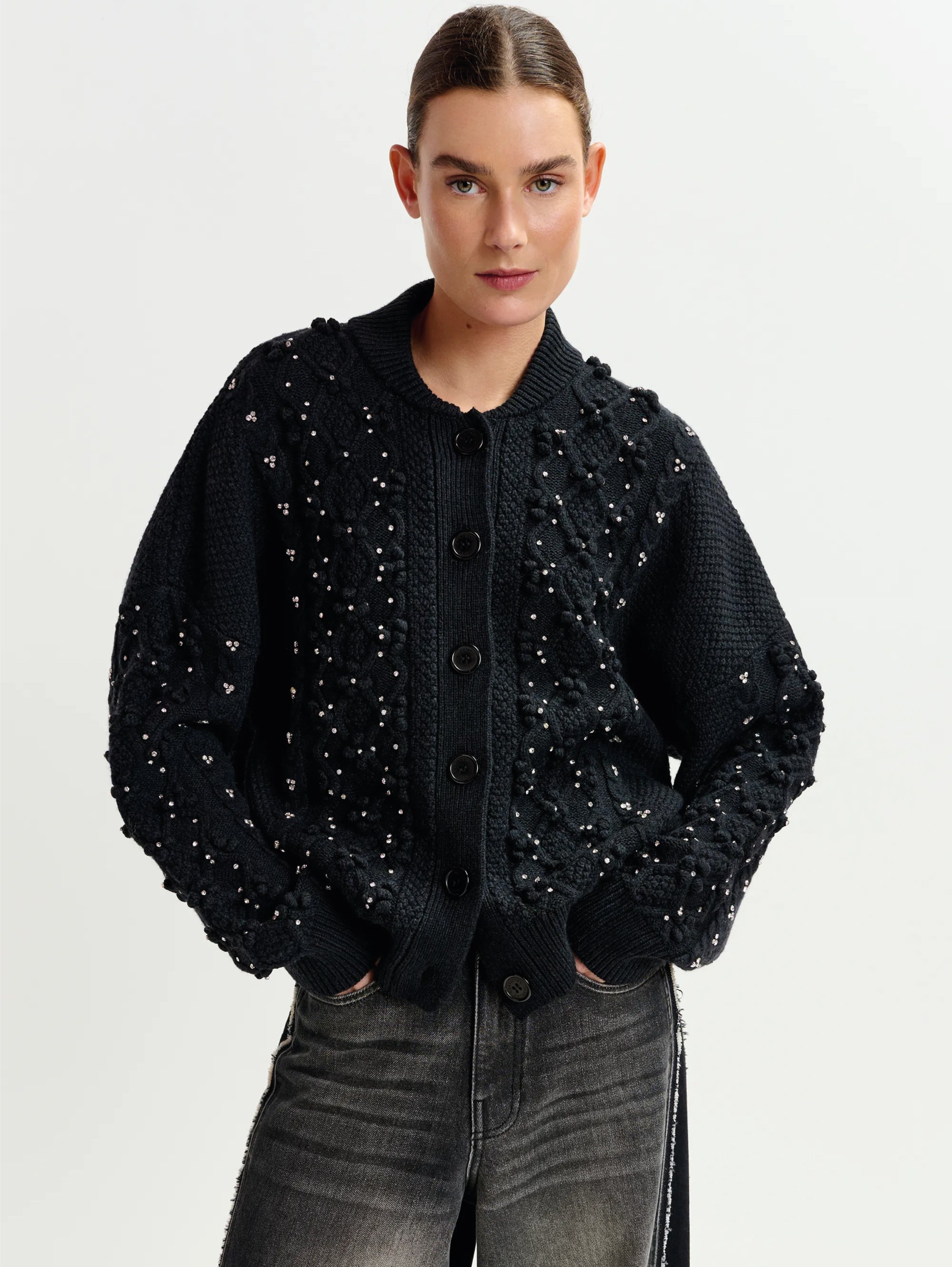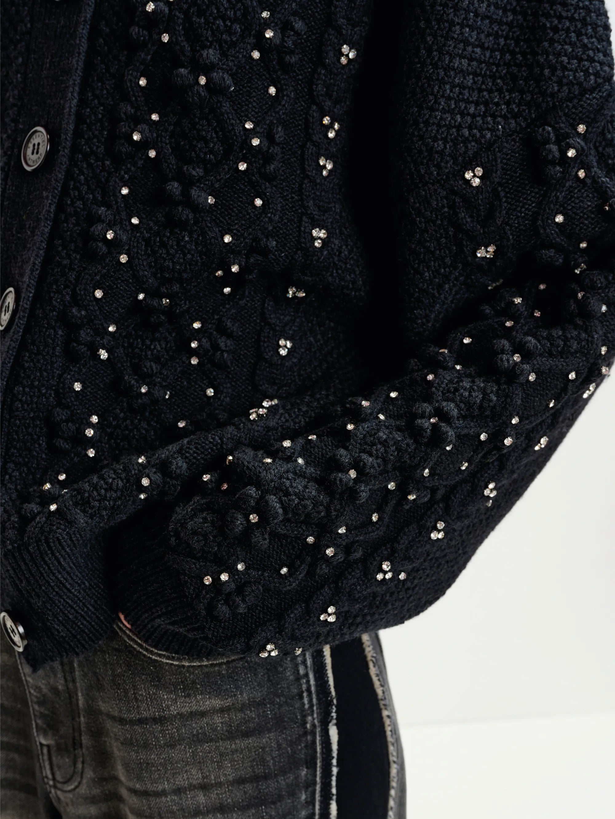 - Cod. ILTIMATE - BL34 - RHINESTONE CARDIGAN - BLACK
