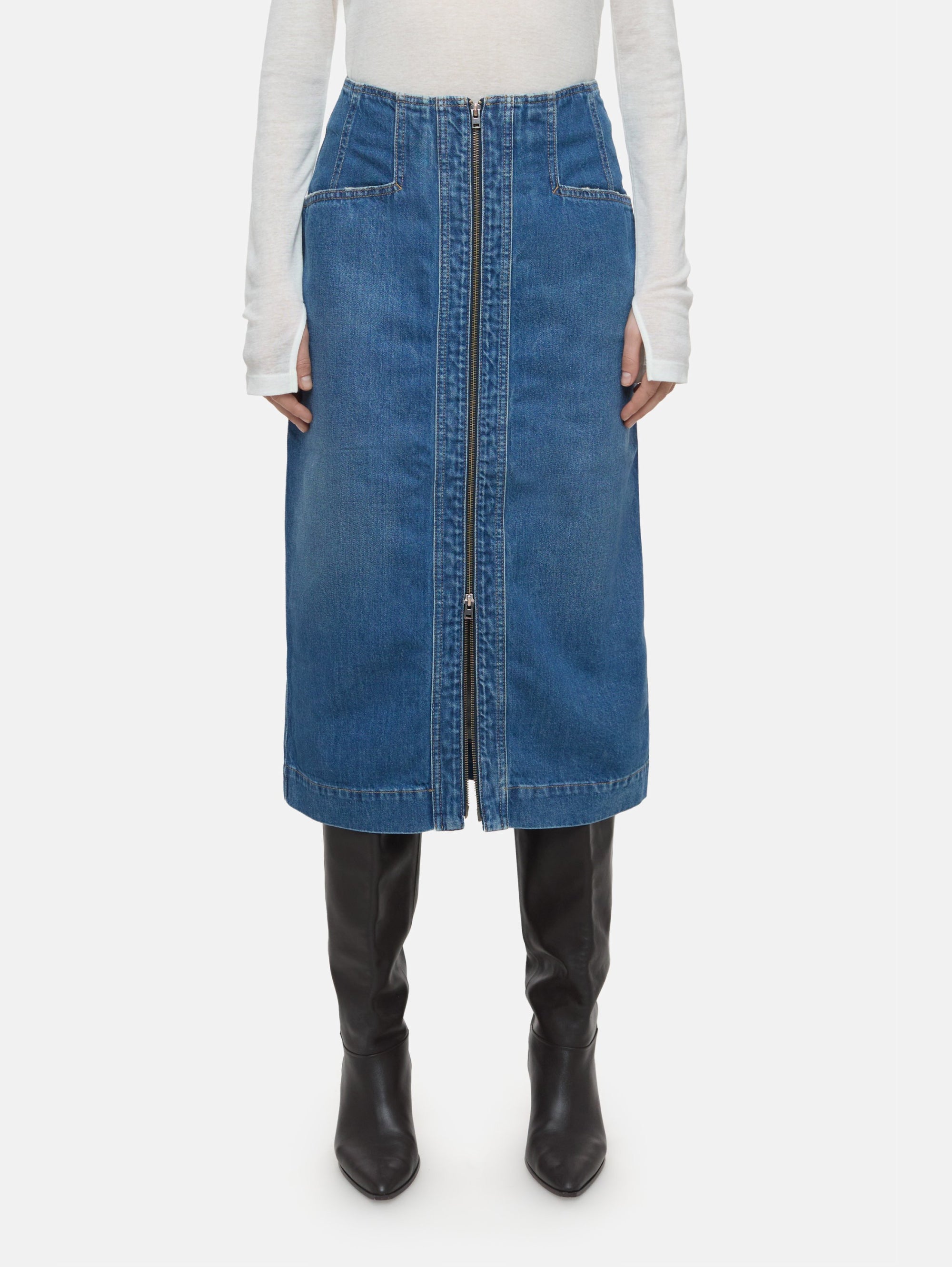 Denim-Bleistift-Midirock mit zentralem Reißverschluss und Kontrastnähten für Damen von Closed.