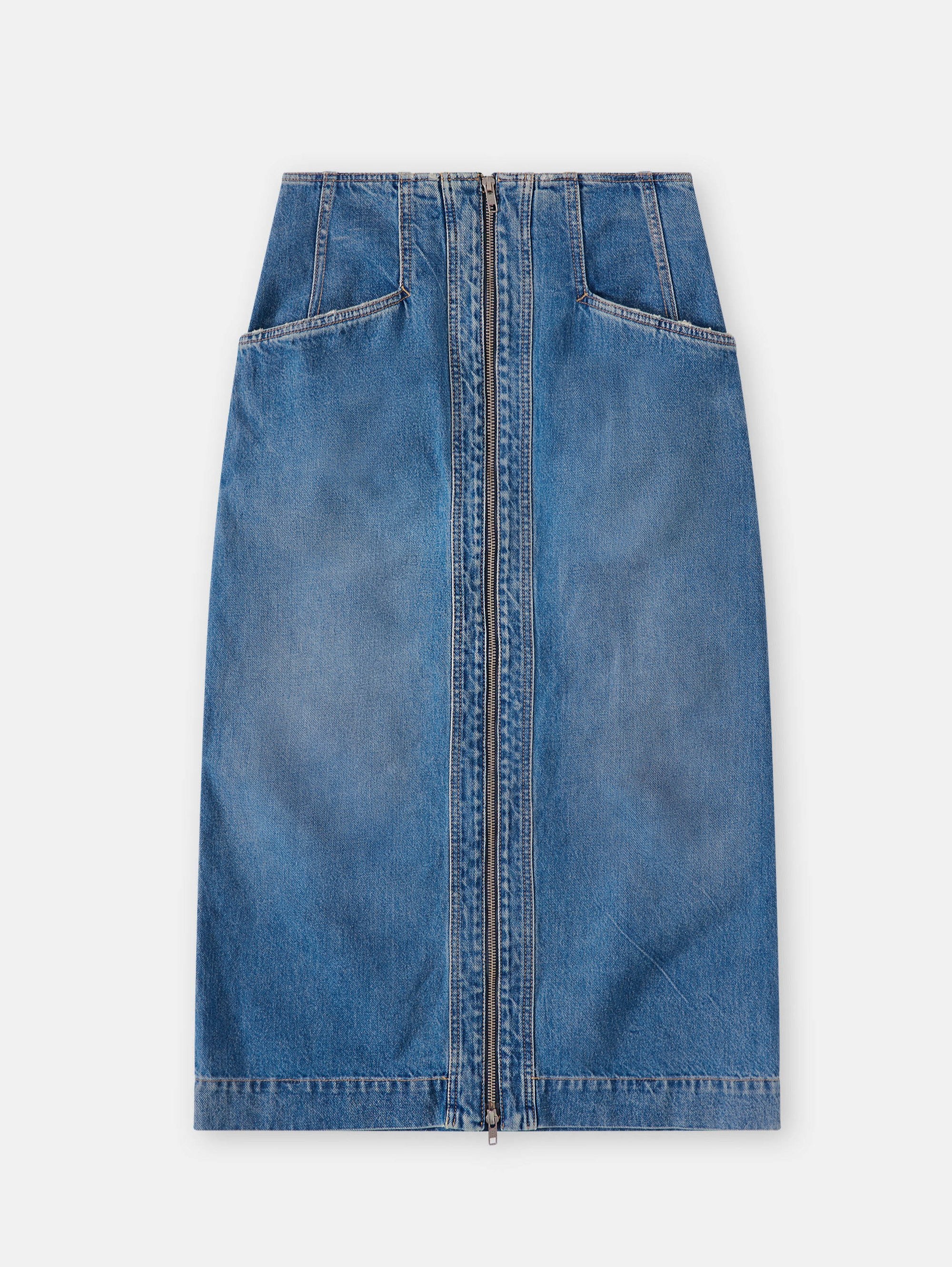 - Cod. C93188-18S-3Y – MBL – BLEISTIFT-JEANSROCK MIT REISSVERSCHLUSS – MITTELBLAU