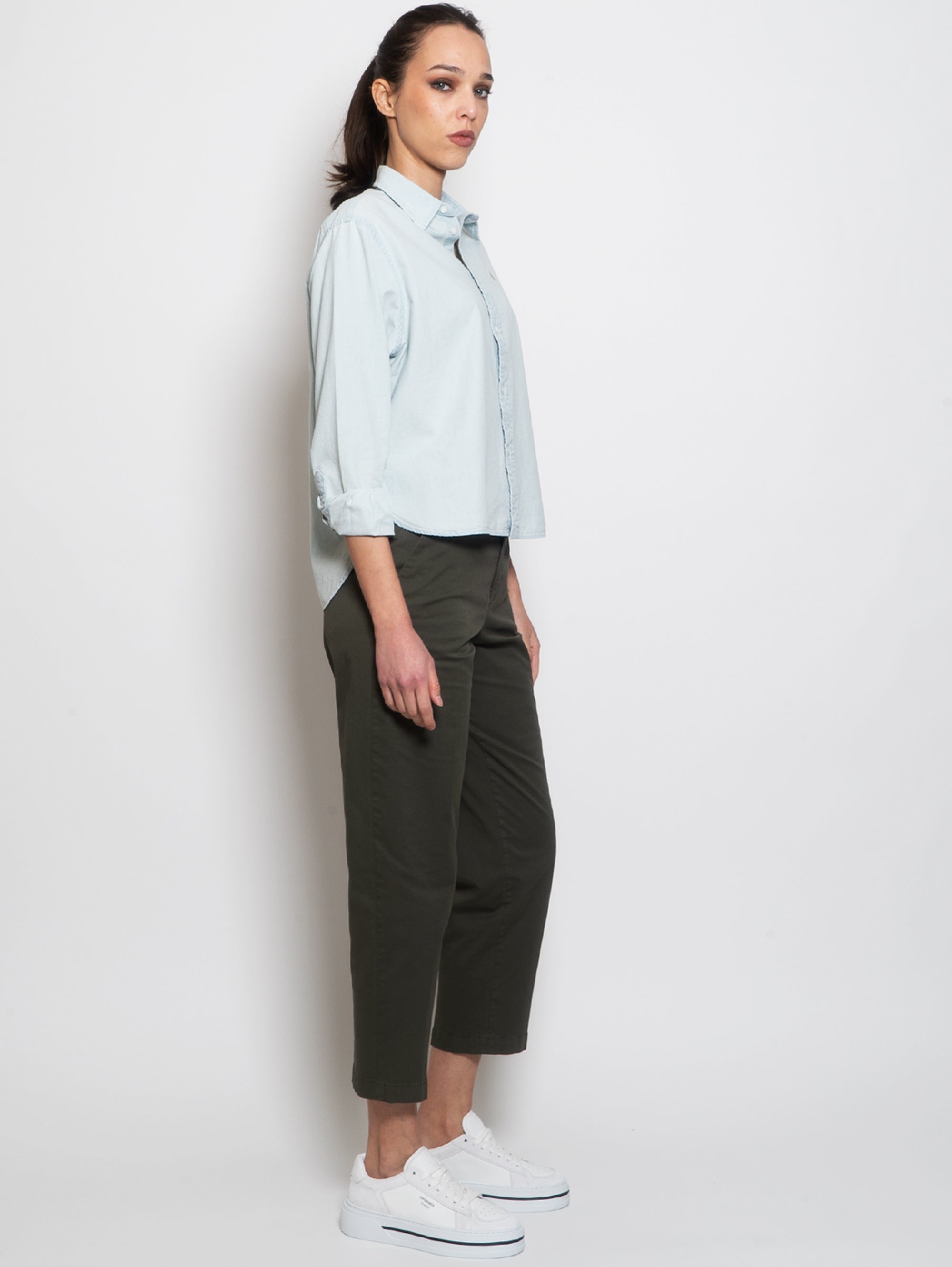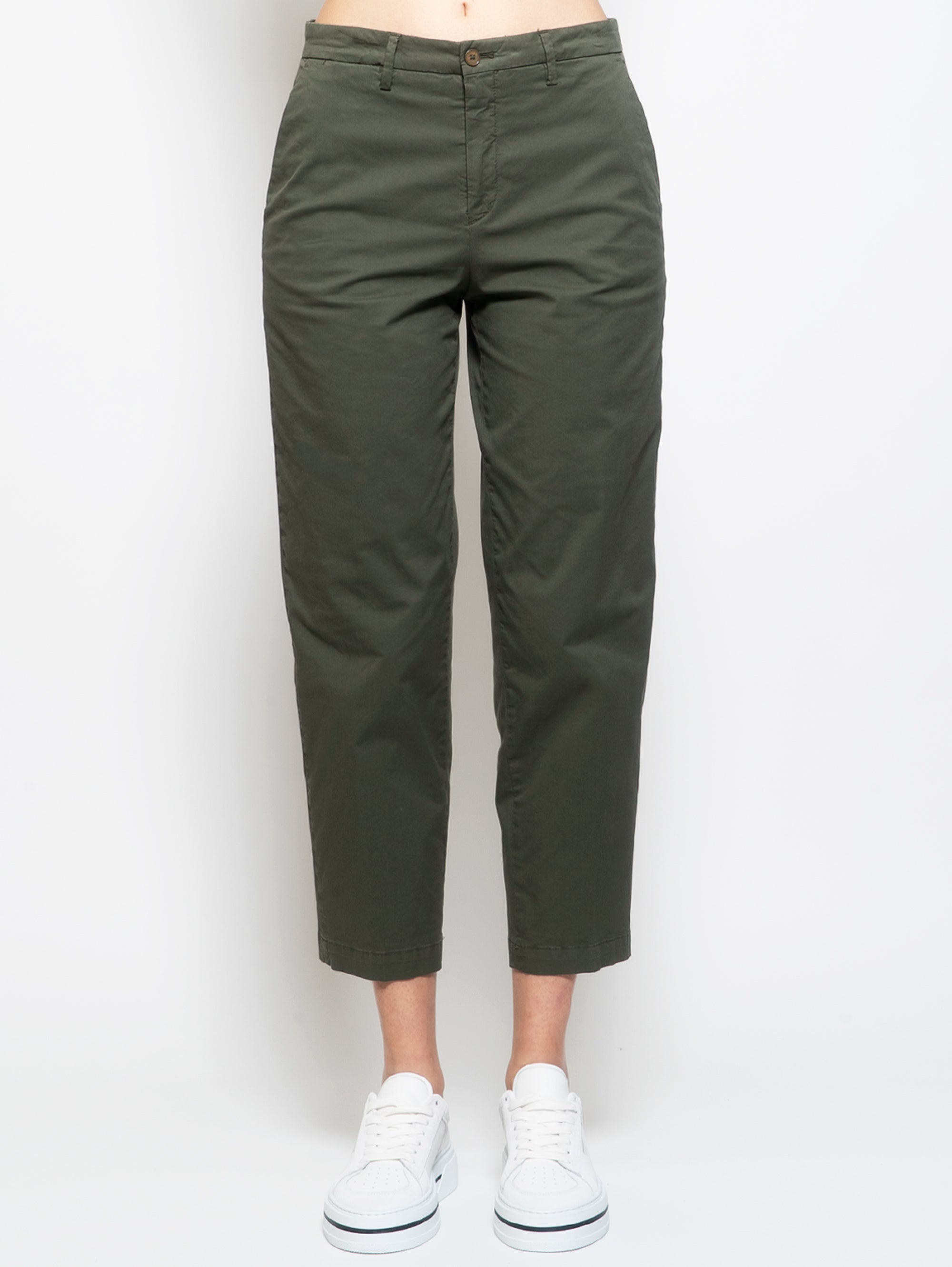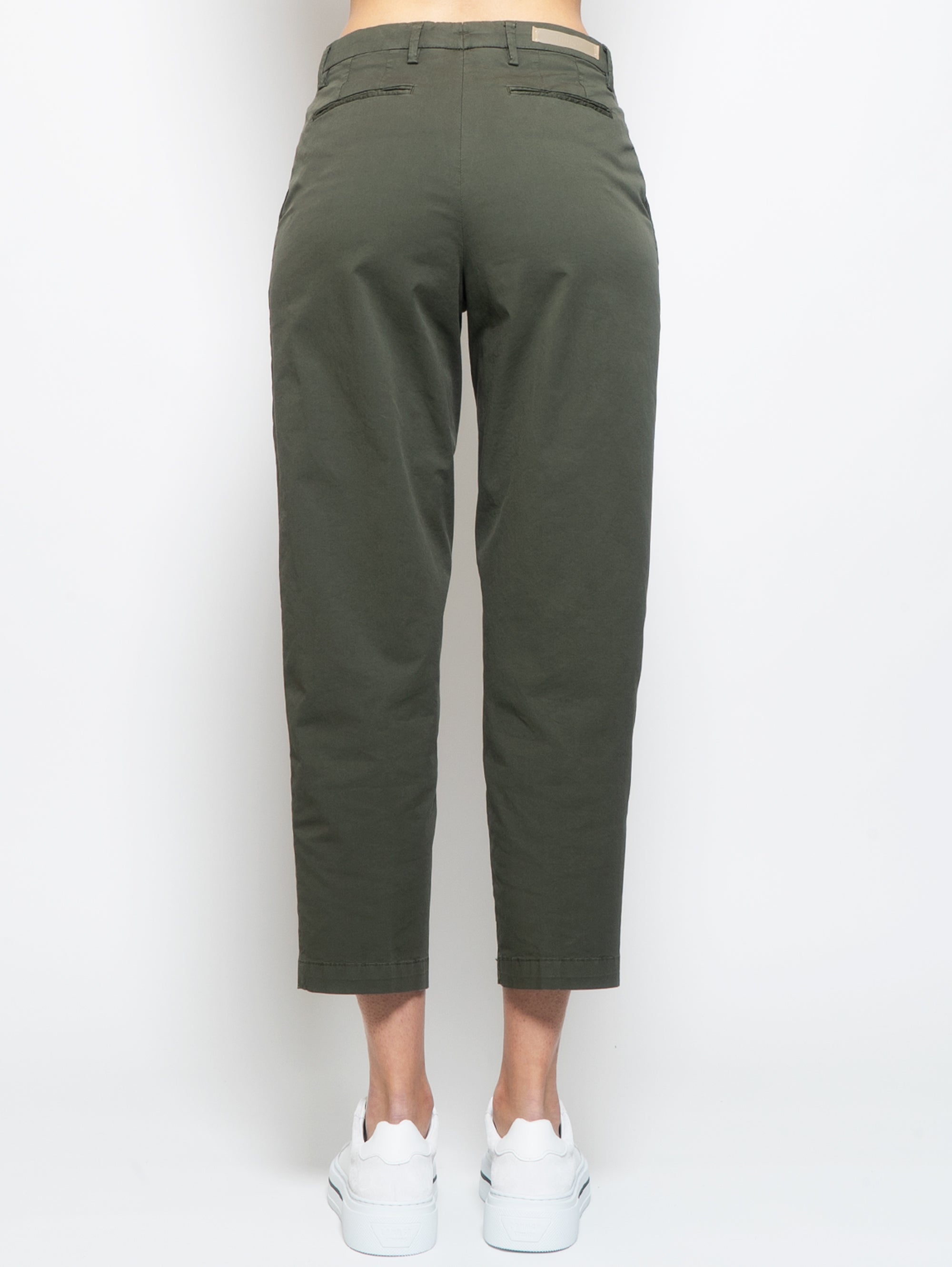 BRIGLIA 1949-Pantaloni Vita Alta in Cotone Verde-TRYME Shop