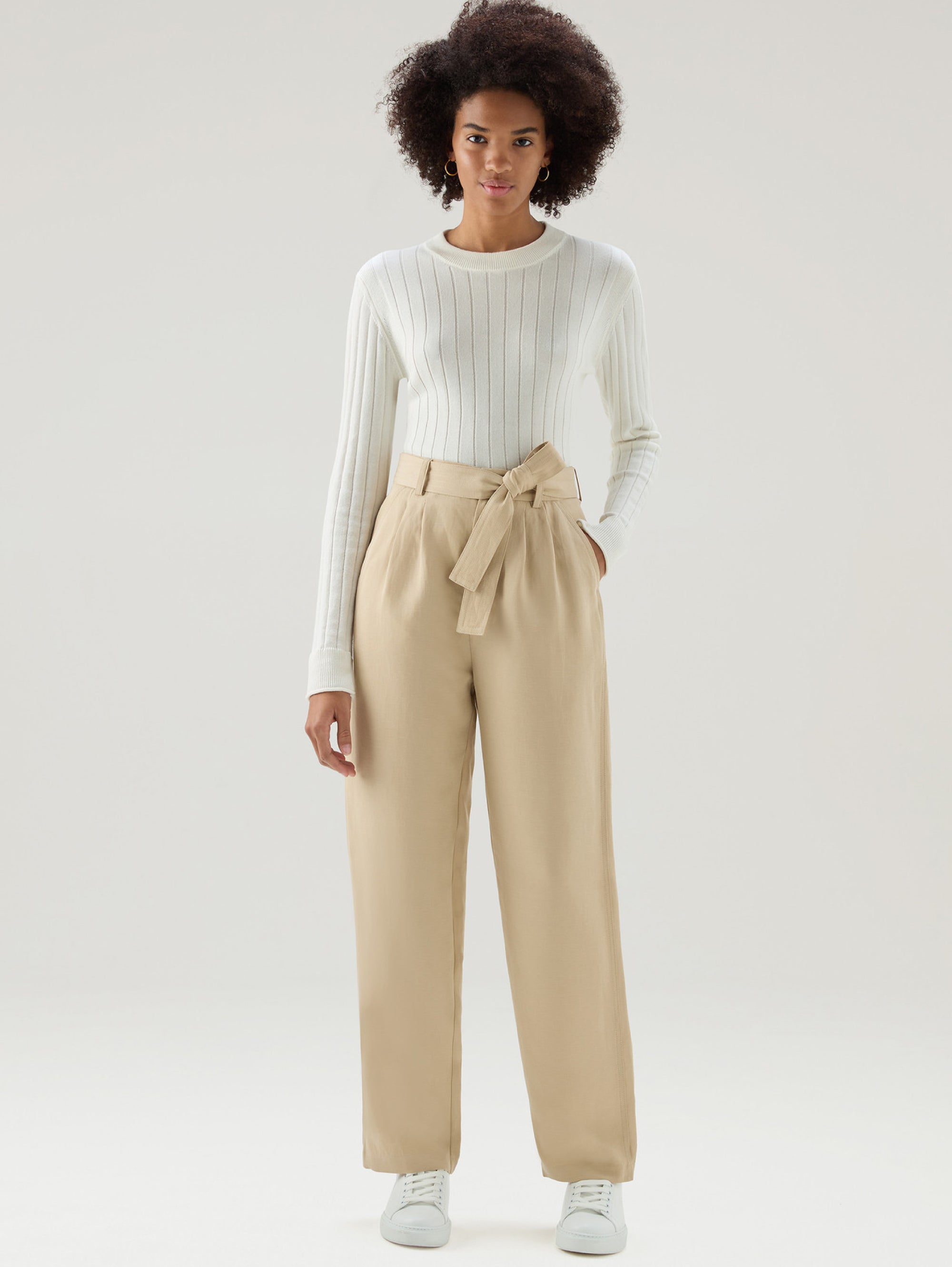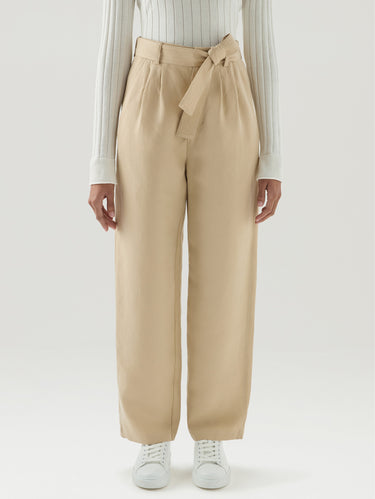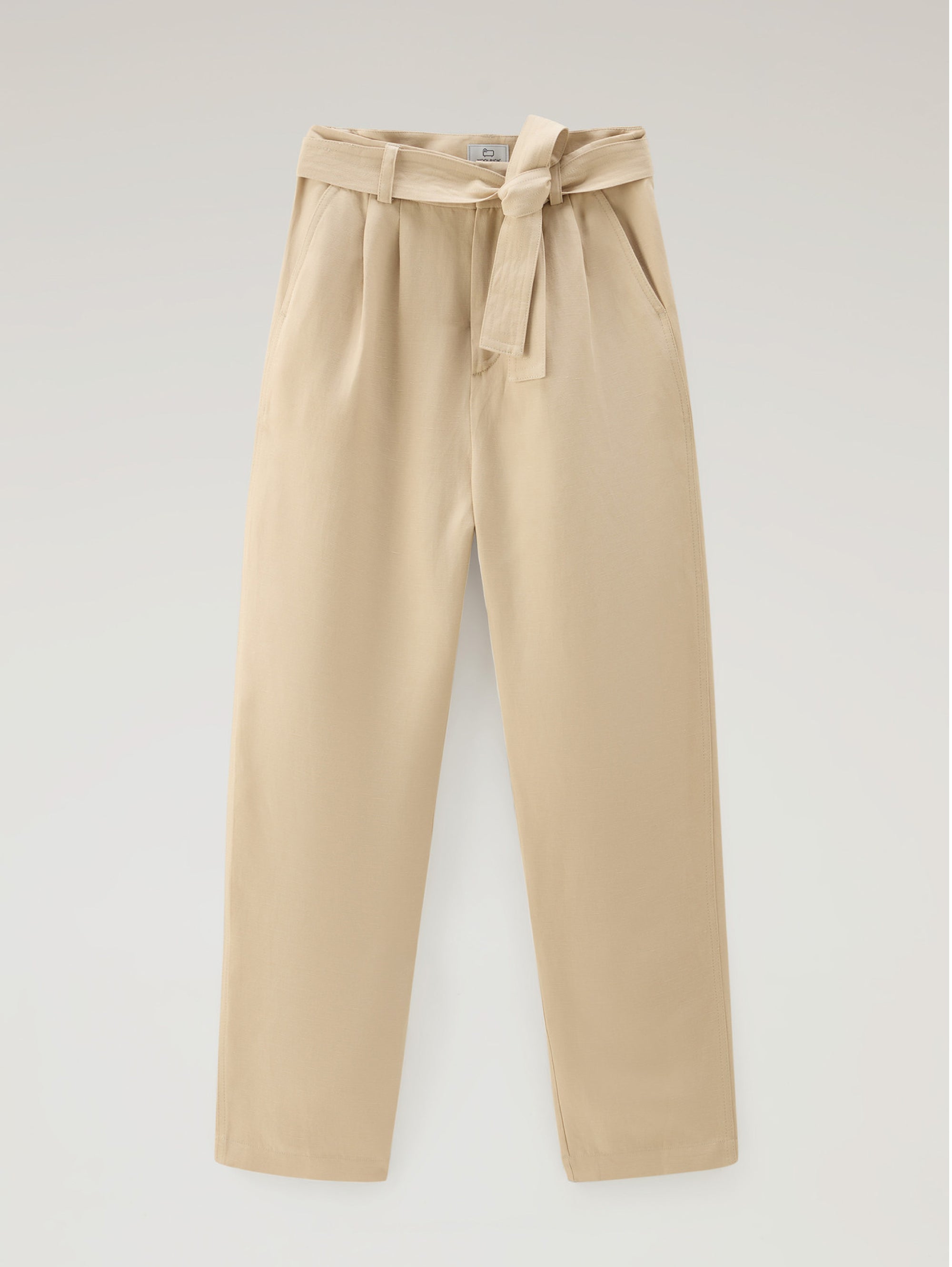 Hose mit beigefarbenem Leinengürtel und Zwickern