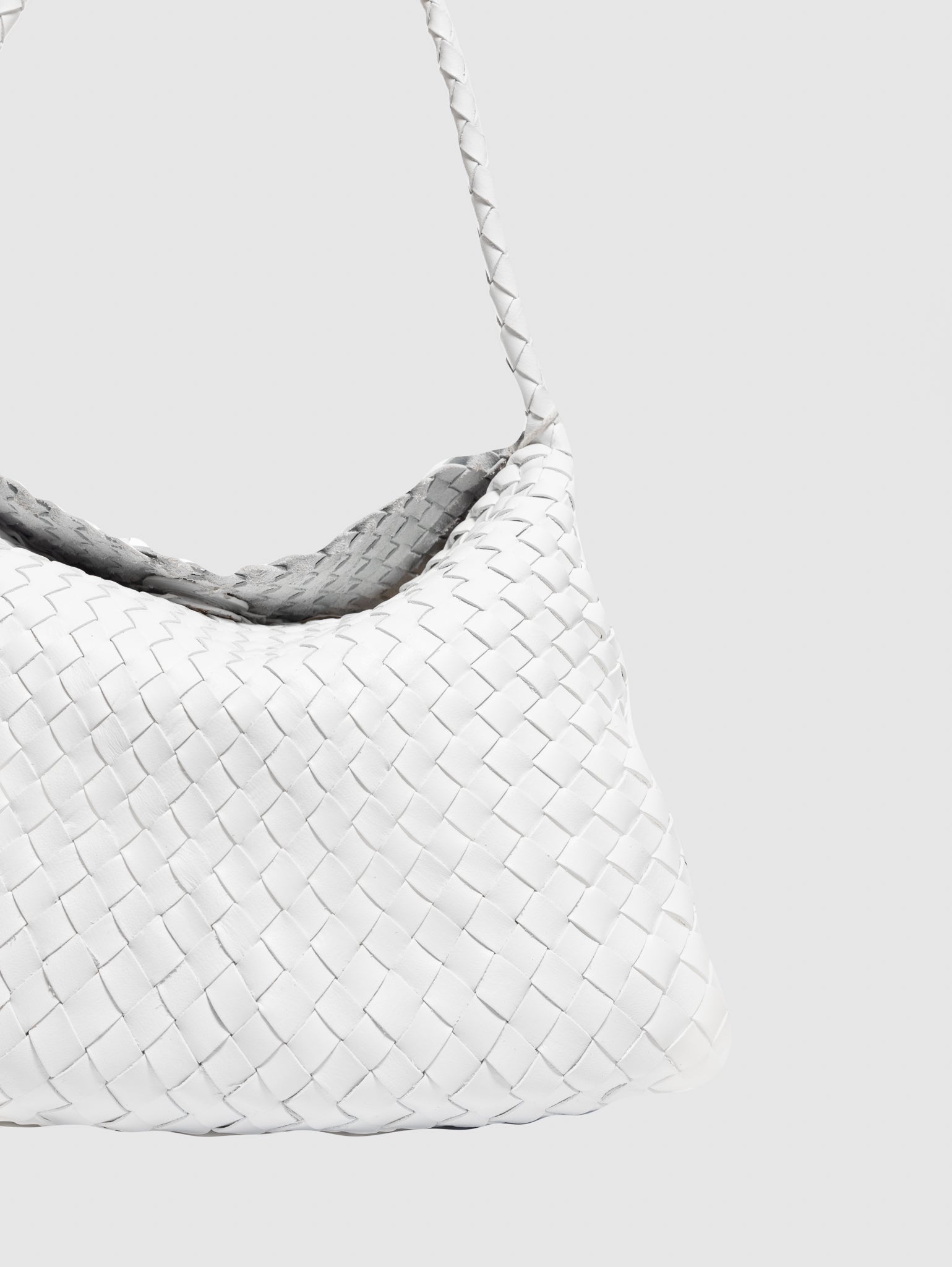 - Borsa dalle dimensioni compatte in pelle di bufalo intrecciata a mano