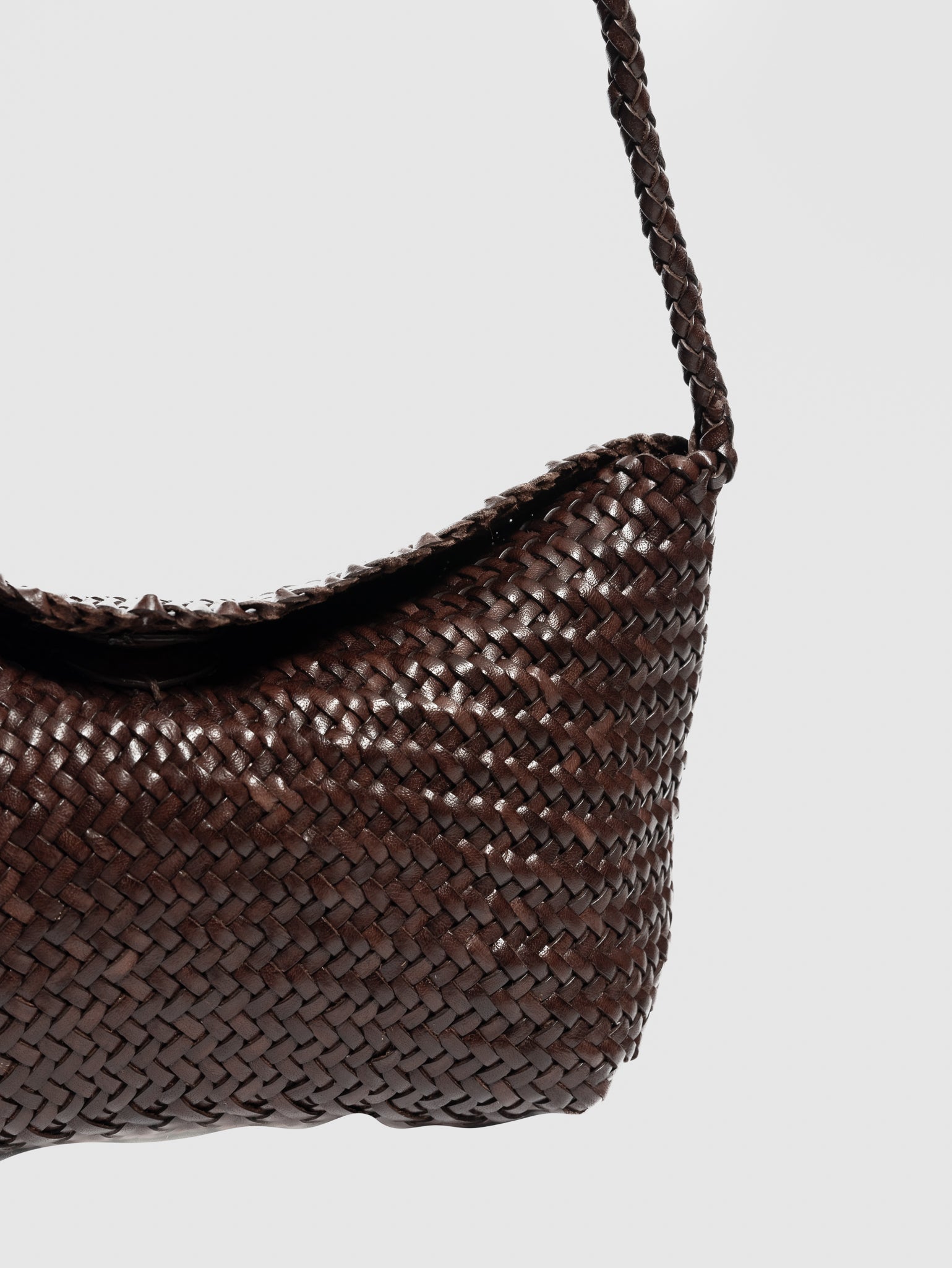 Borsa a Tracolla in Pelle Intrecciata Corsina Marrone