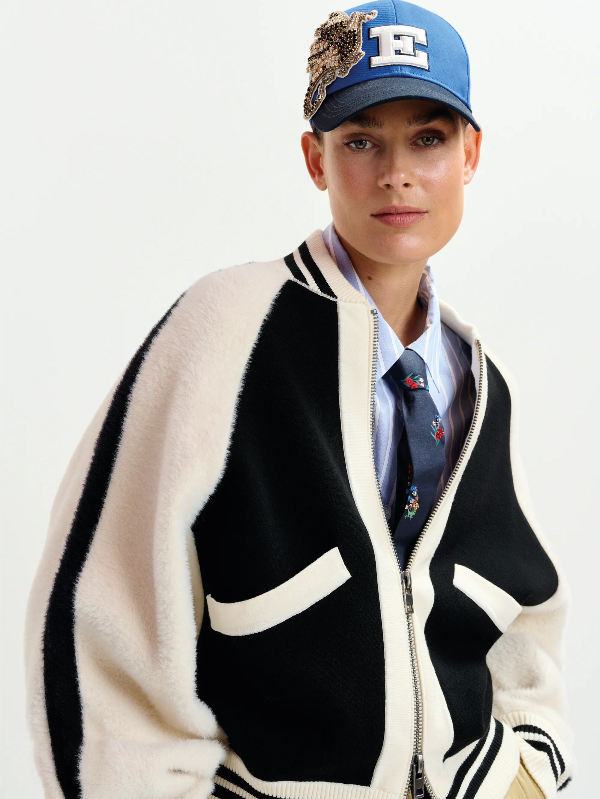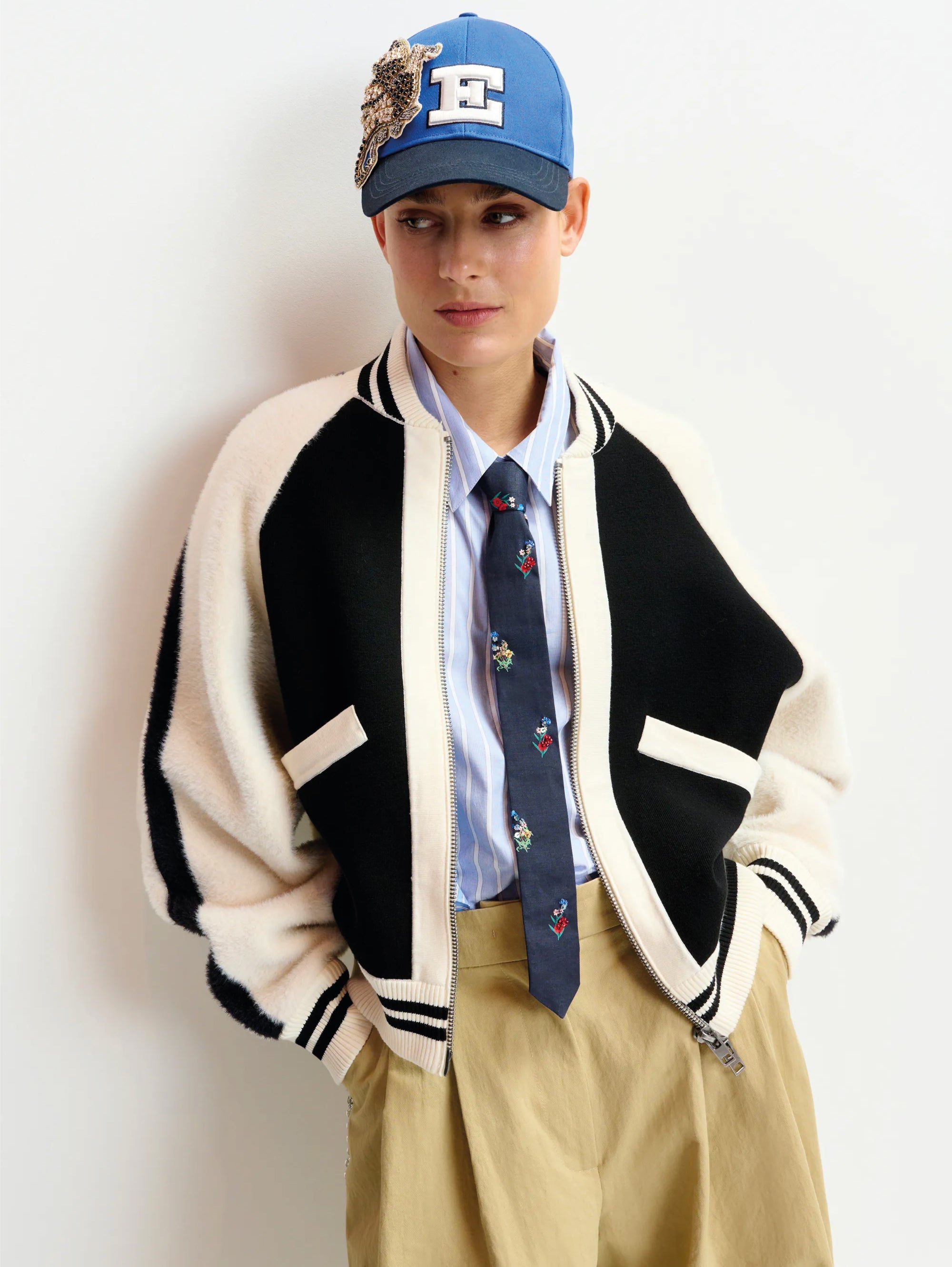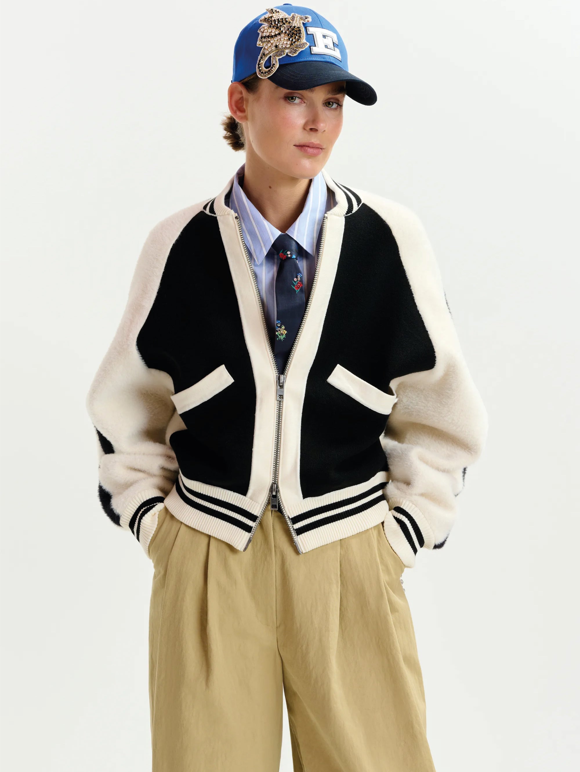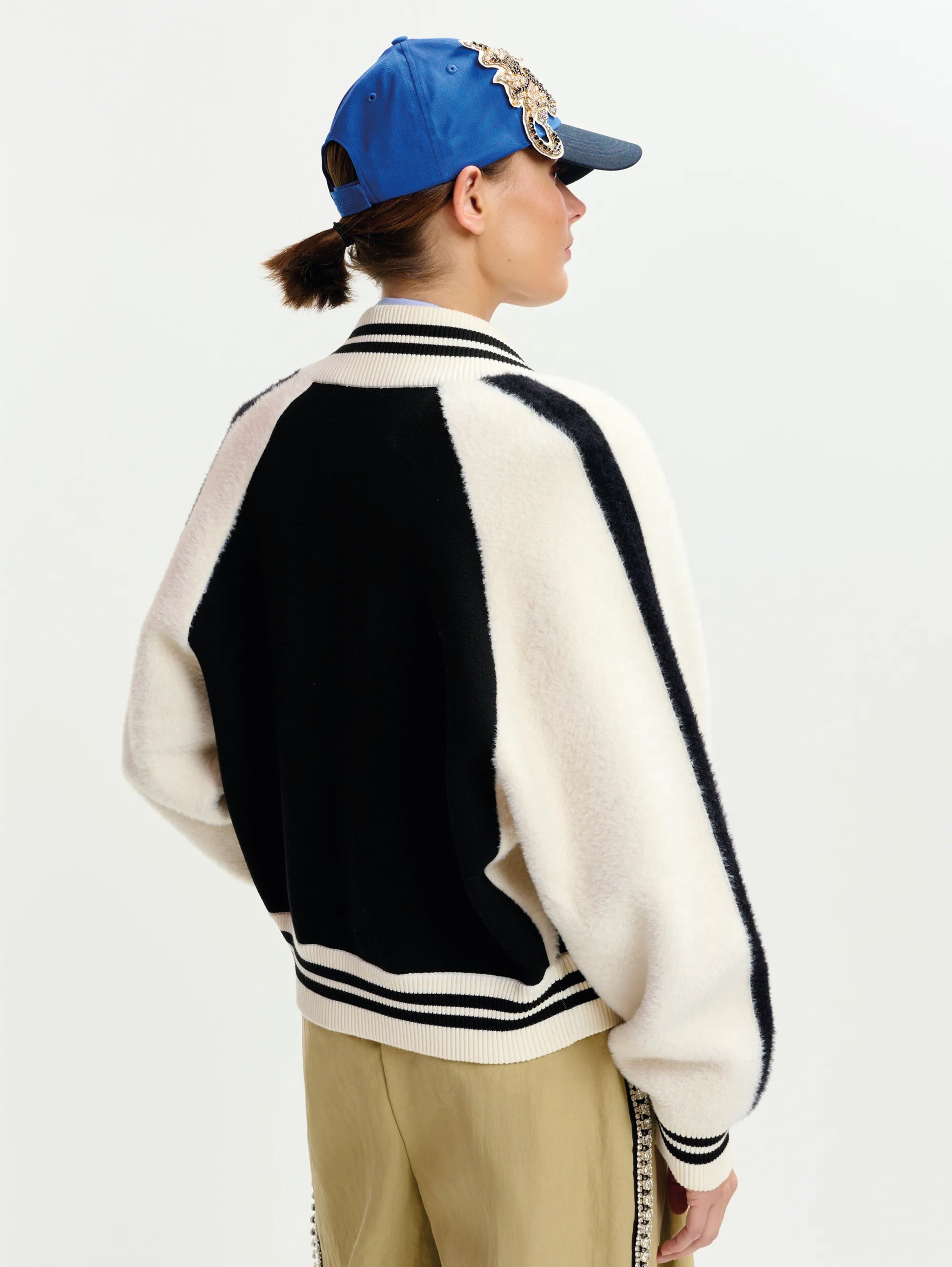 - Bomber con pannelli in pelliccia ecologica che percorrono sia le maniche che il corpo