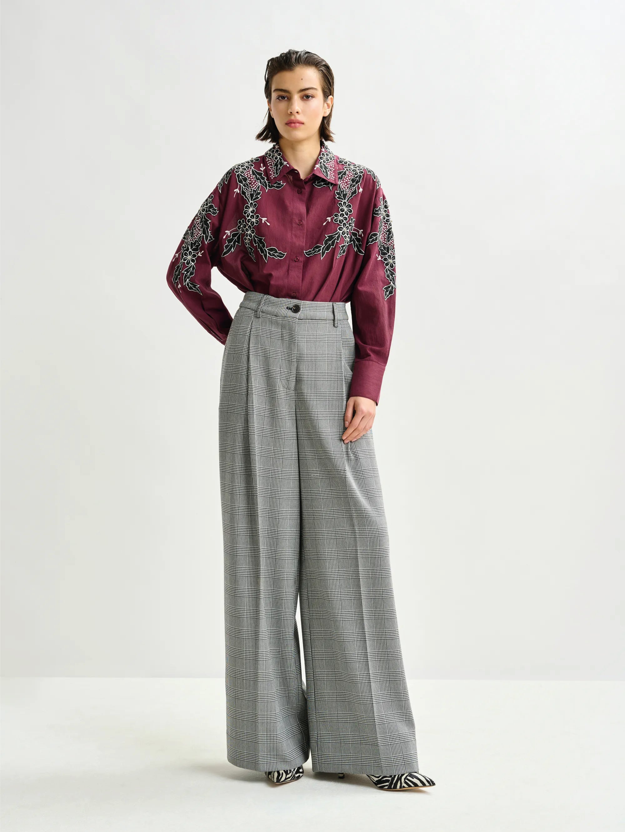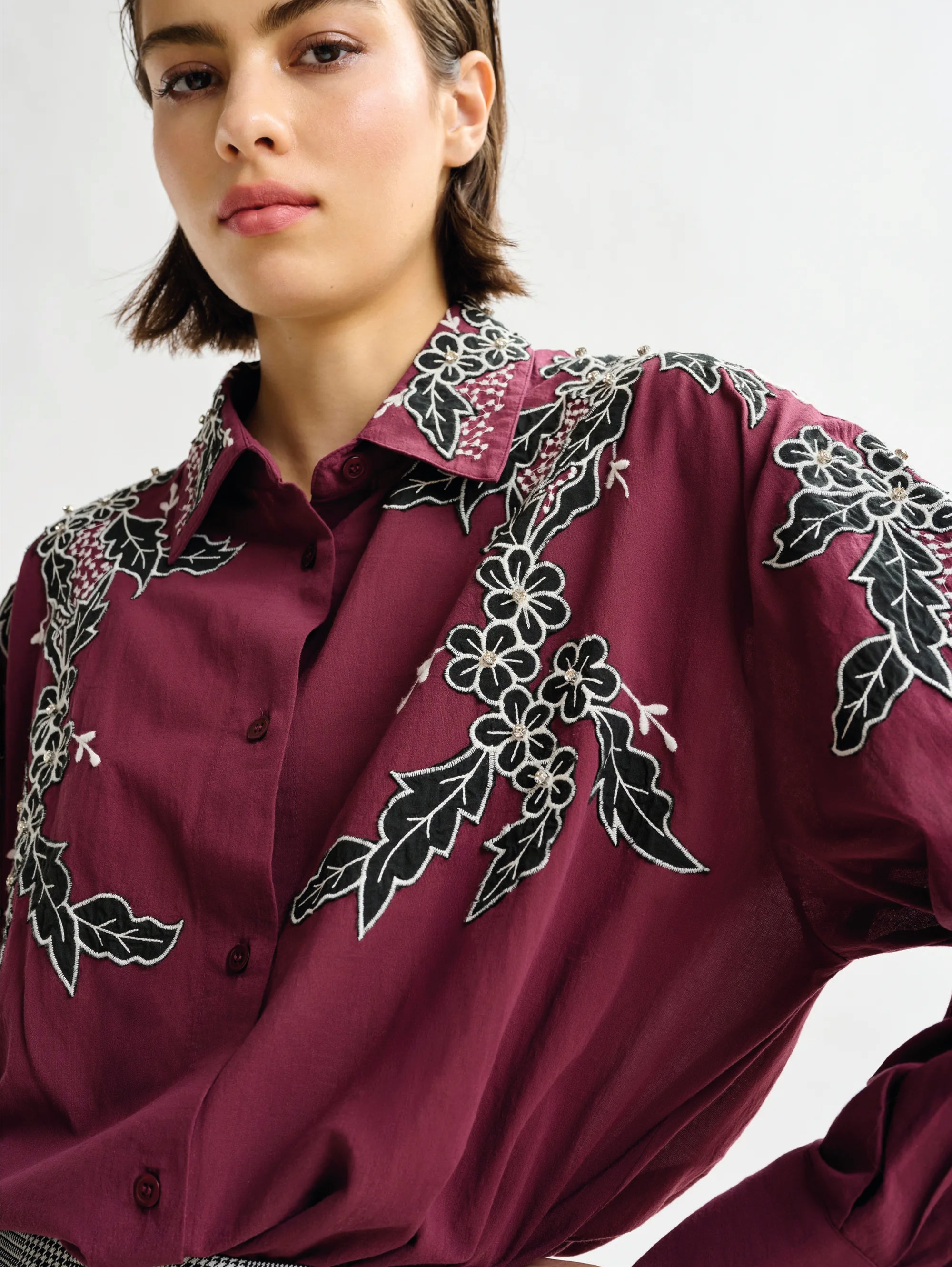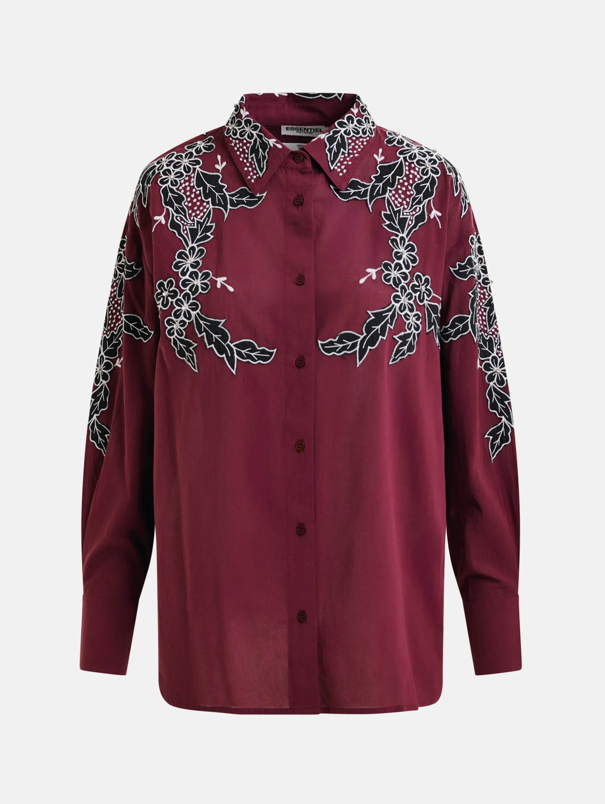 Camicia in cotone oversize con ricamo floreale impreziosito da strass modello Inglewood da donna di Essentiel Antwerp.