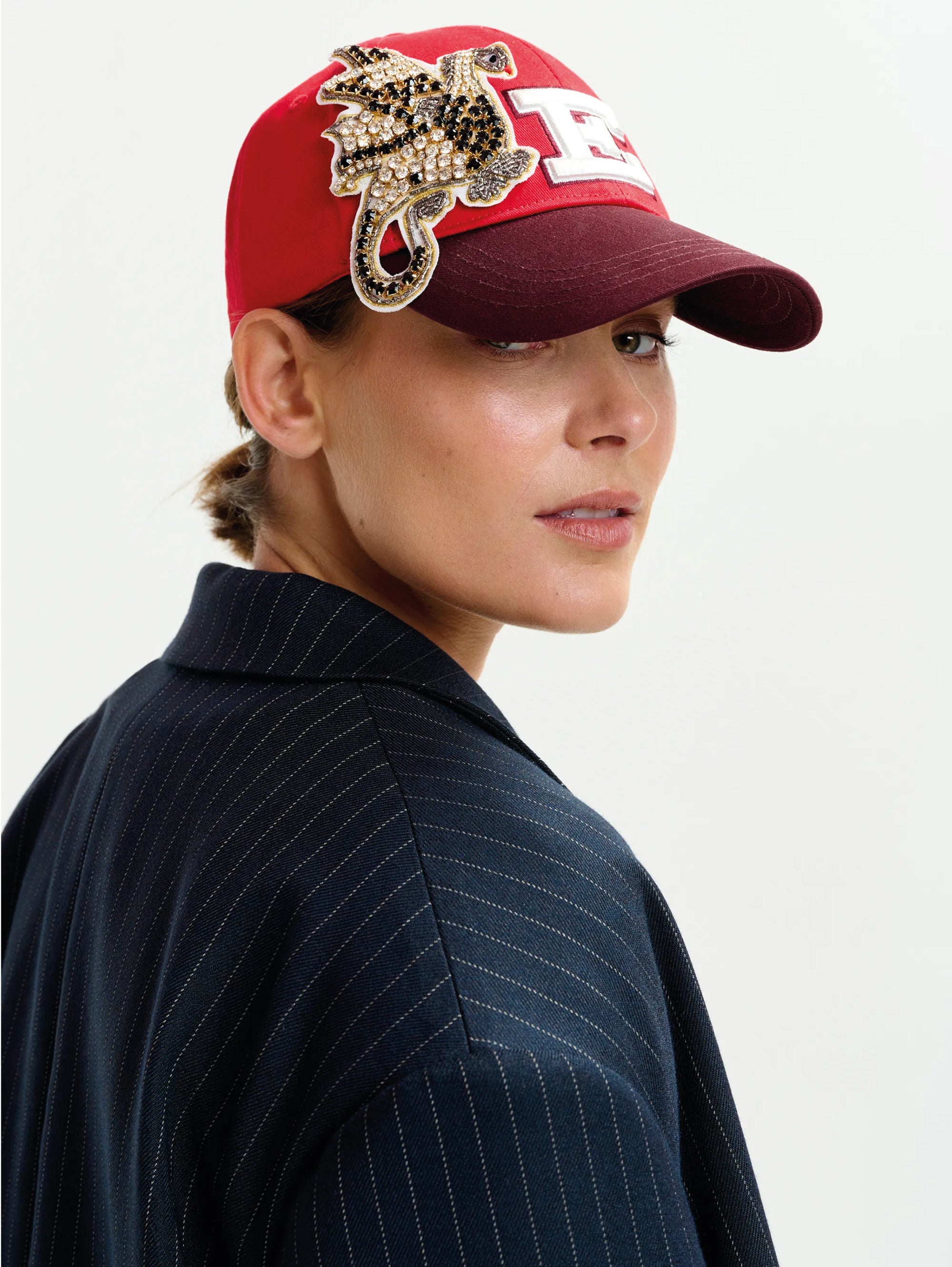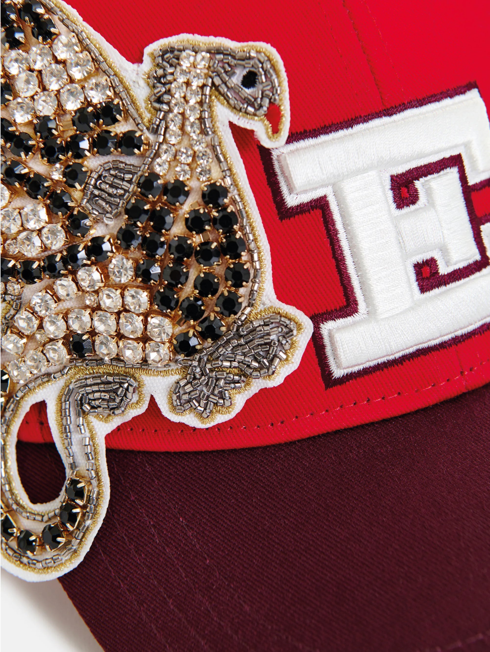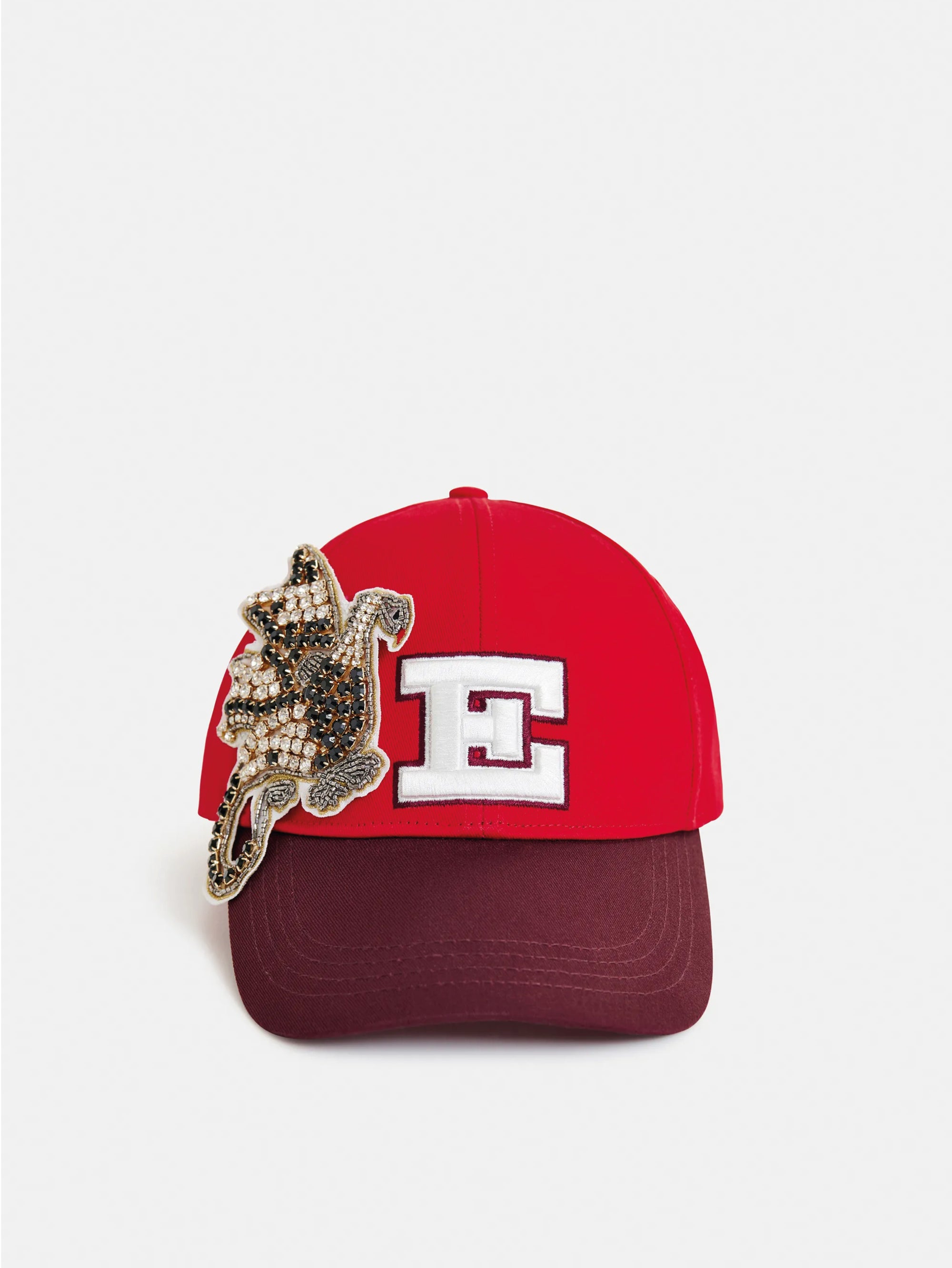 - Cappellino ricamato presenta una vistosa "E" e un'applicazione a forma di uccello impreziosita da strass sulla parte anteriore