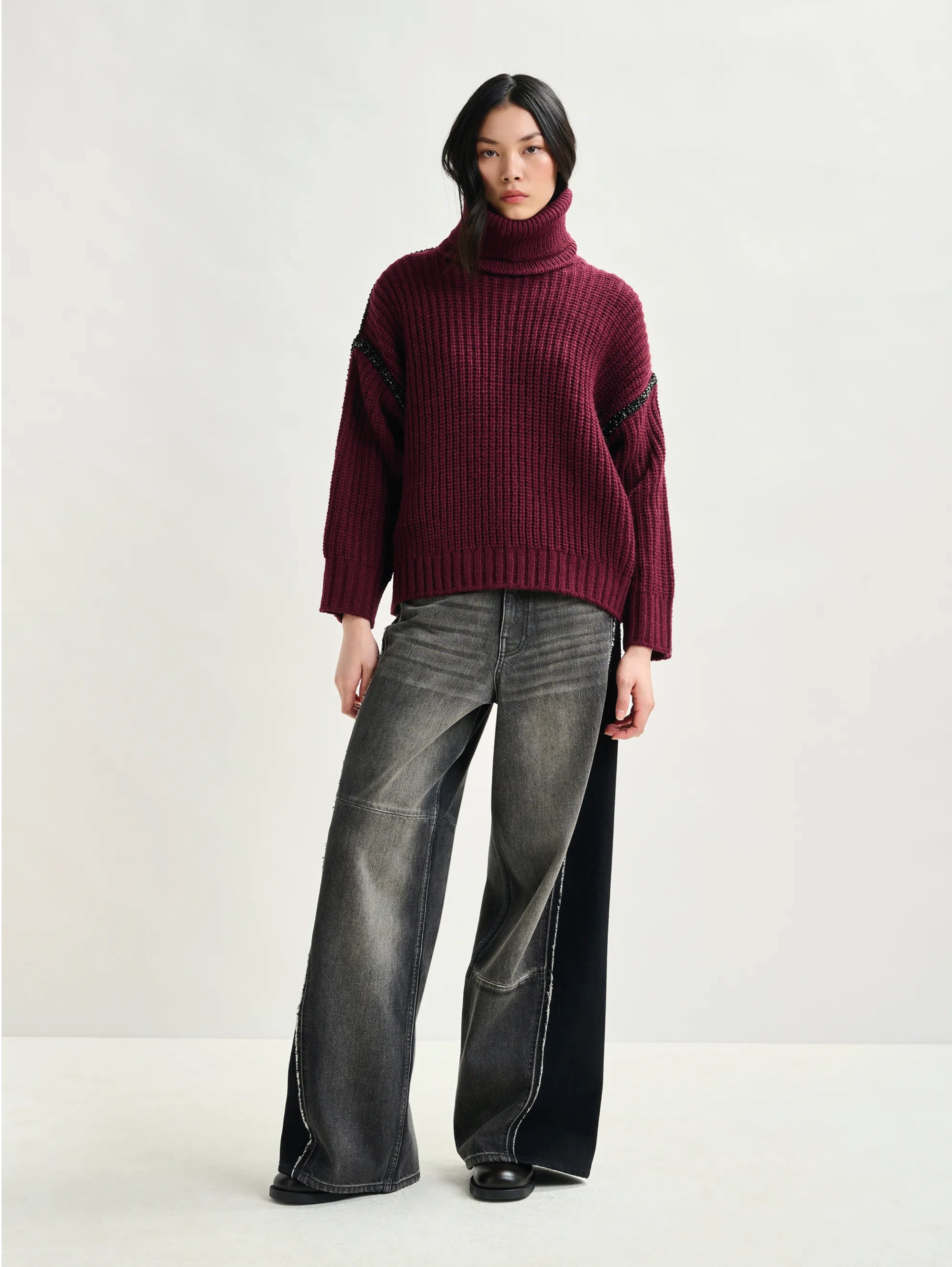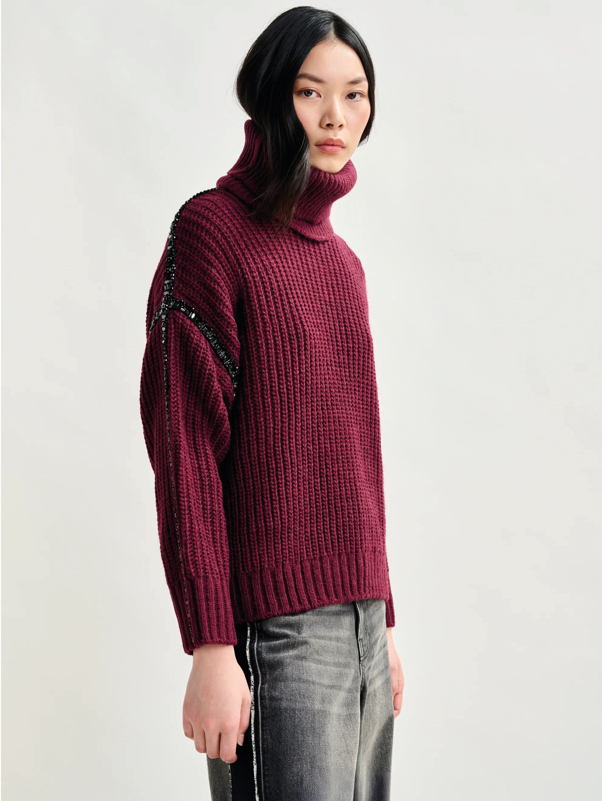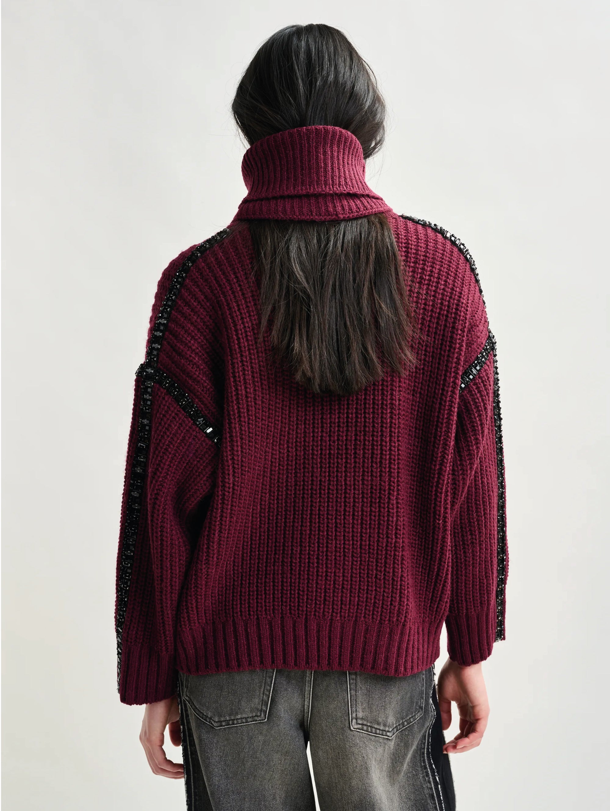 Dolcevita in misto lana con decorazioni in strass di vetro modello Indsay da donna di Essentiel Antwerp.