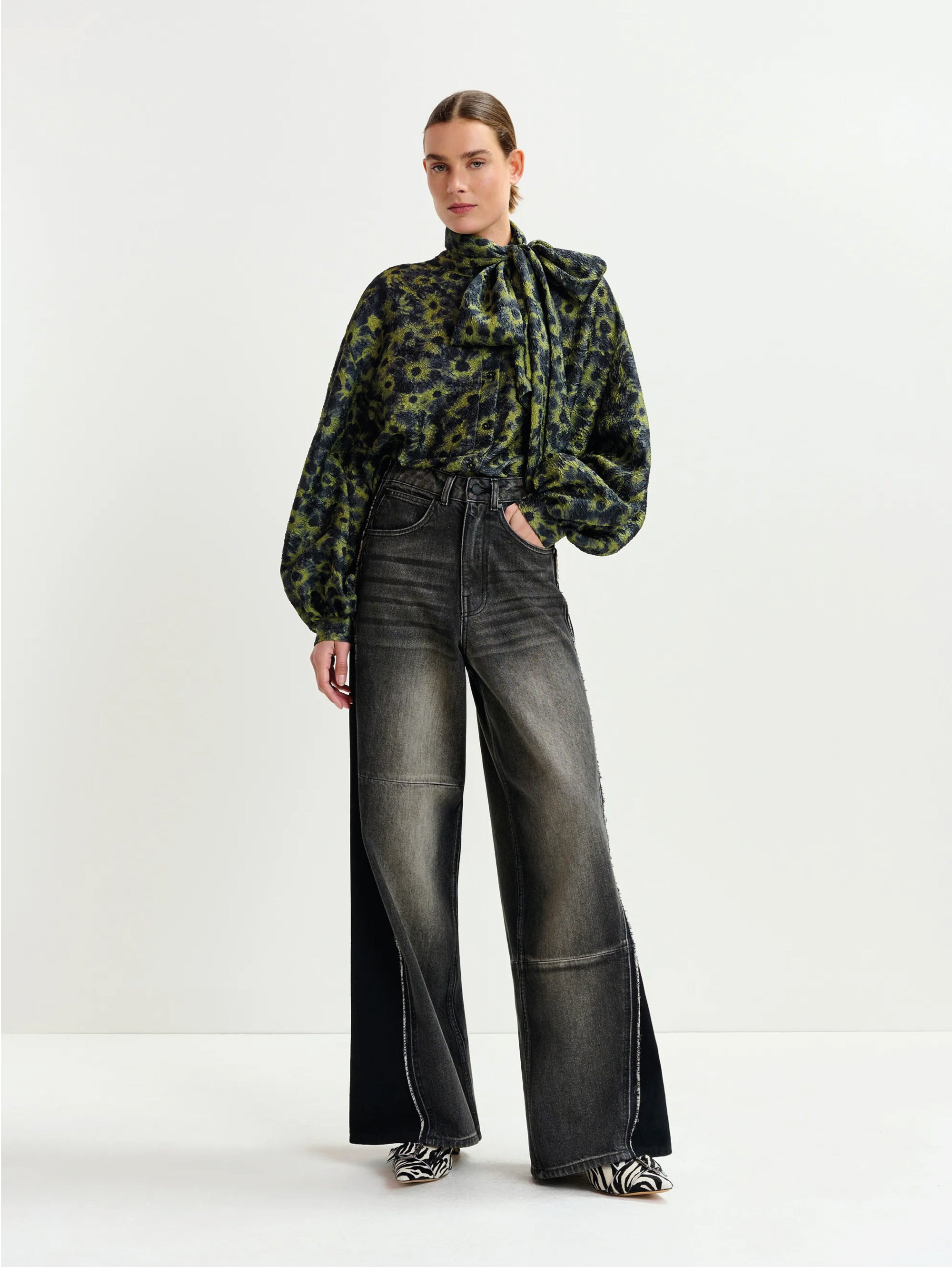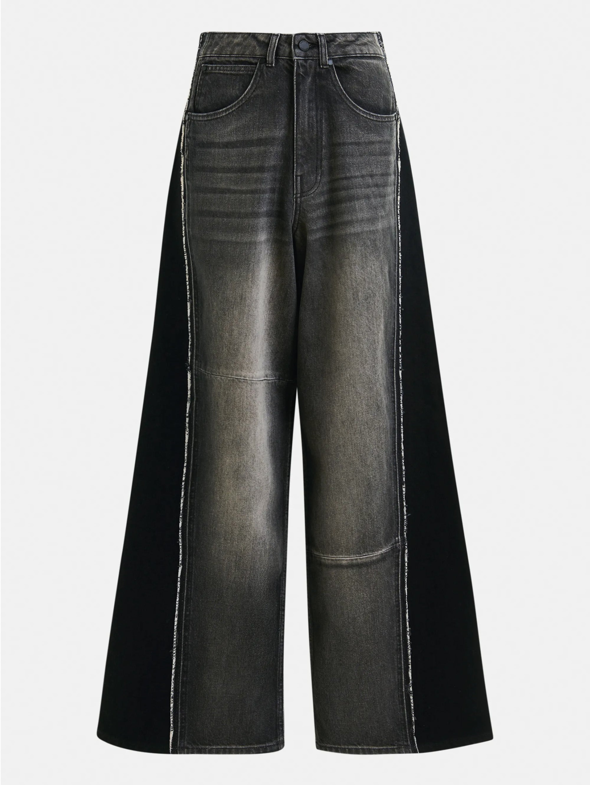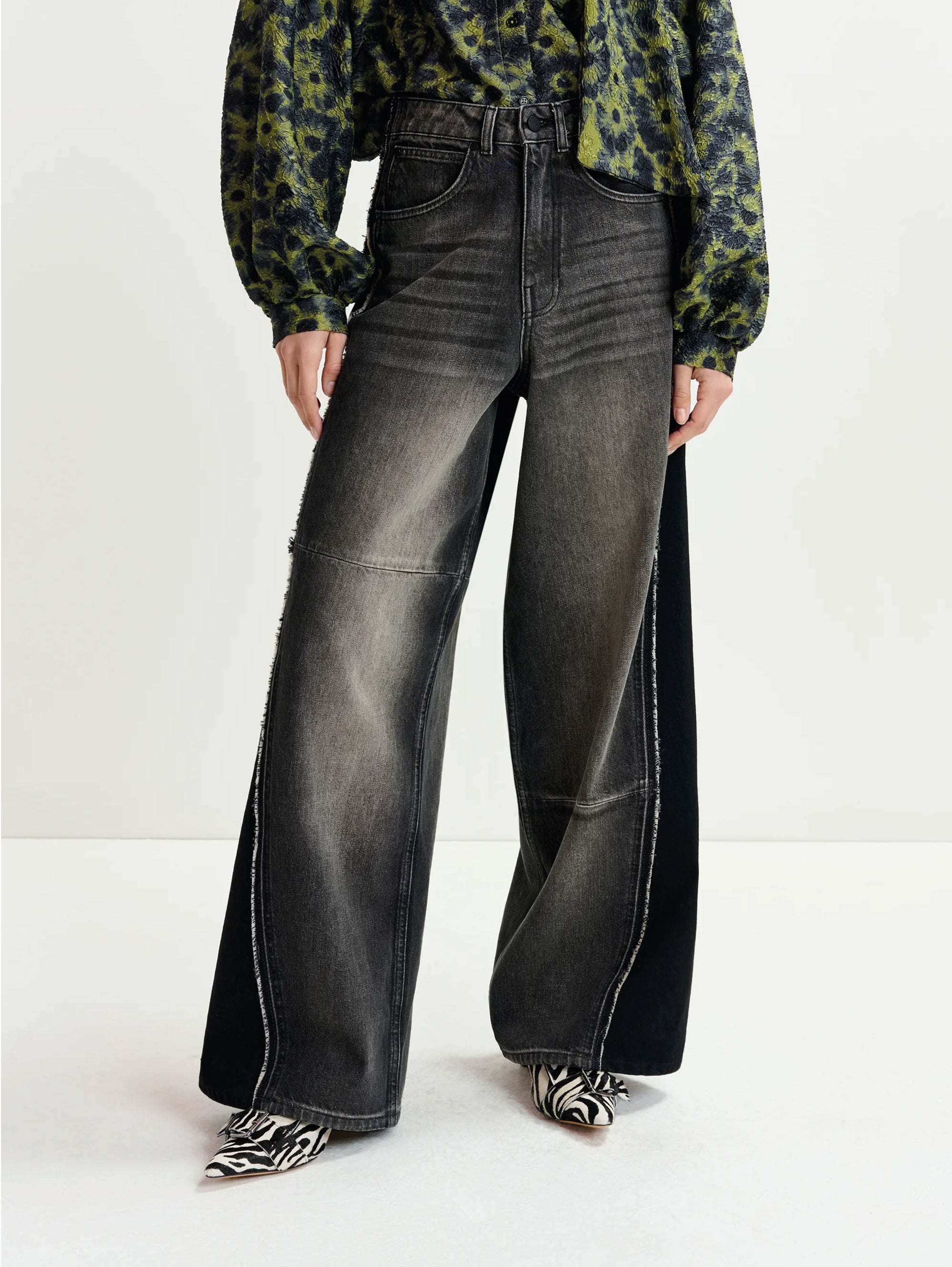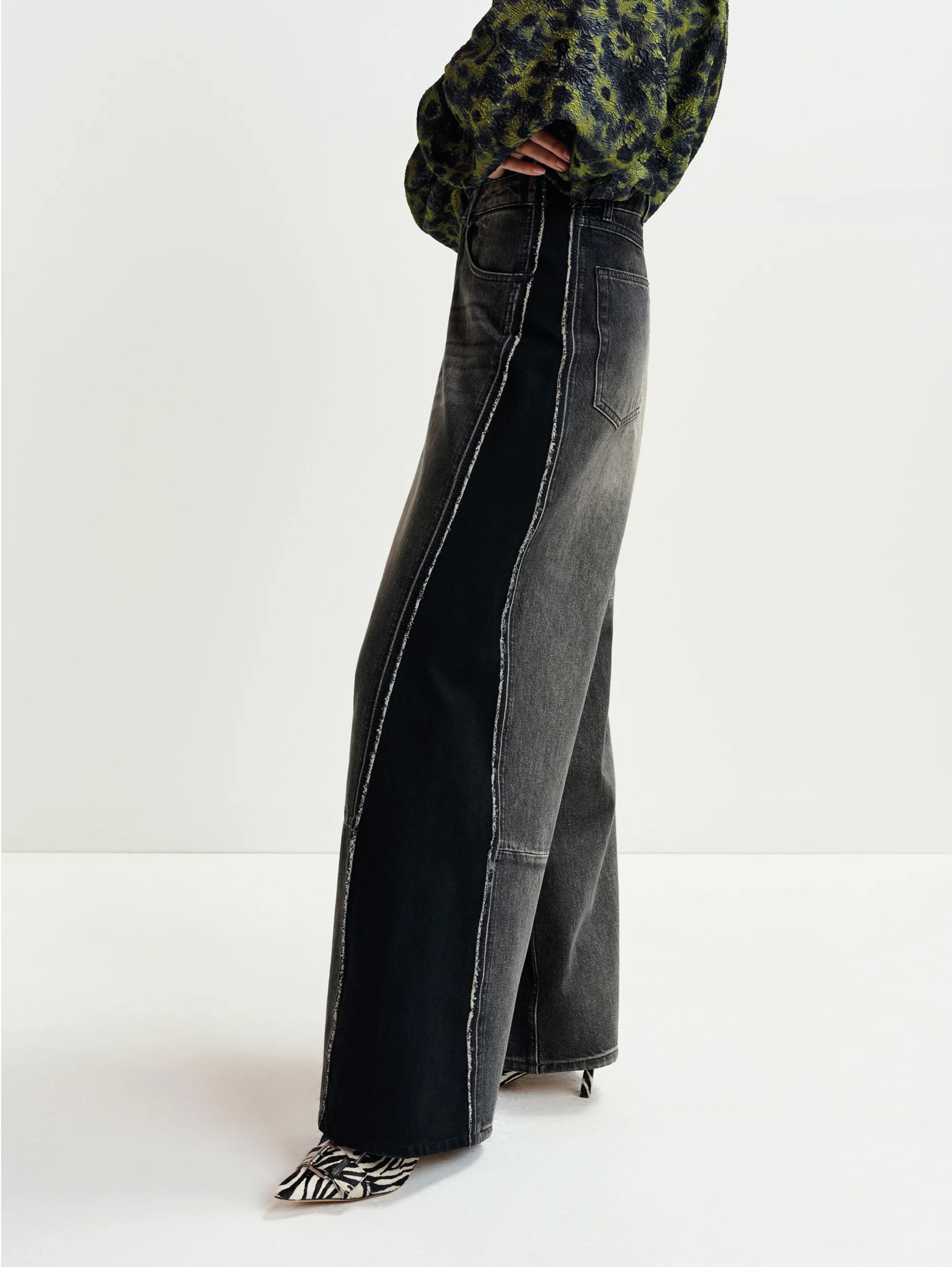 Jeans vita bassa e gamba ultra larga con pannelli laterali a contrasto modello Indusrious2 da donna di Essentiel Antwerp.