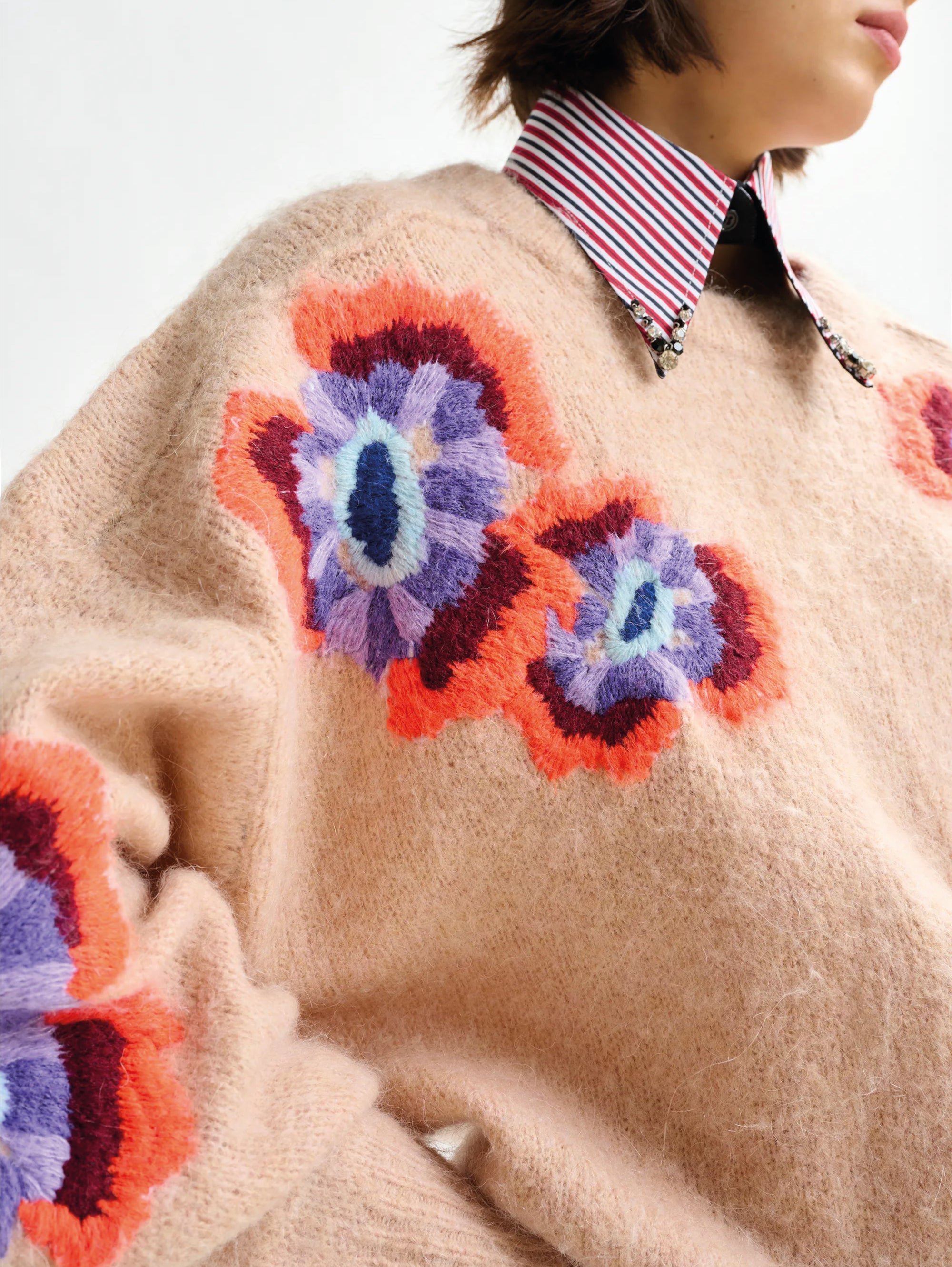- Maglione jacquard realizzato con un filato misto mohair spazzolato