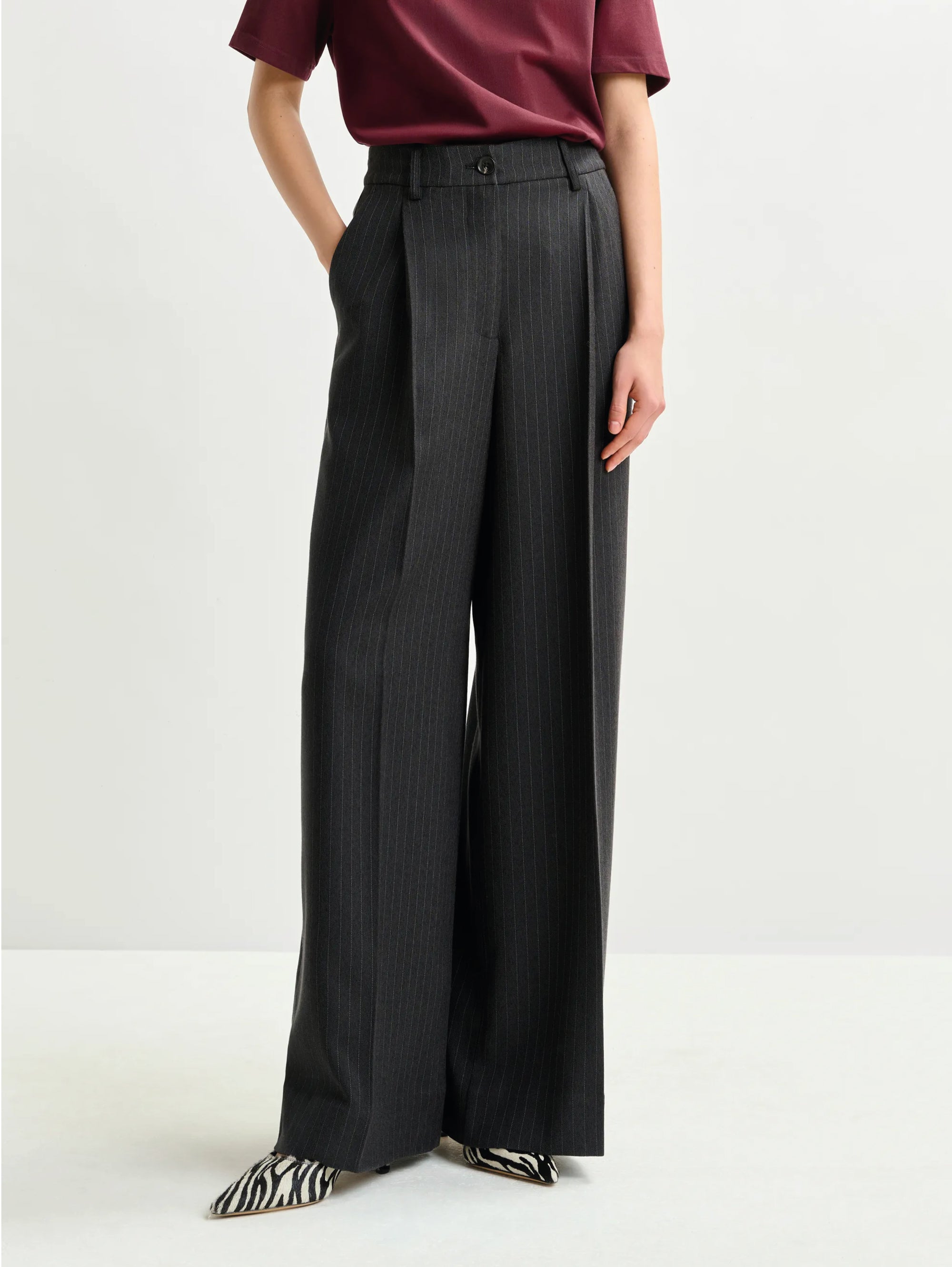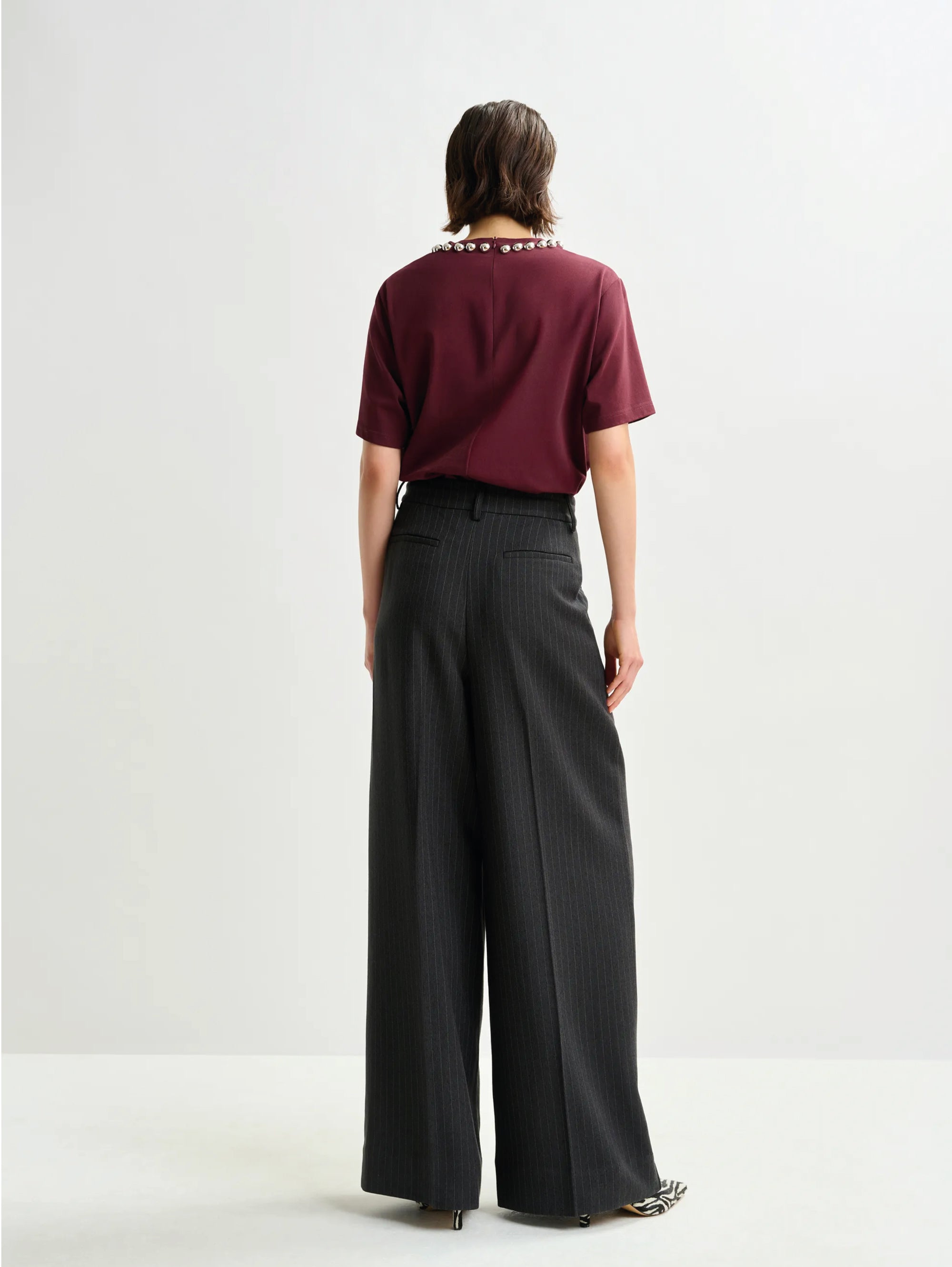 - Pantaloni con vita alta e pieghe stirate davanti e dietro