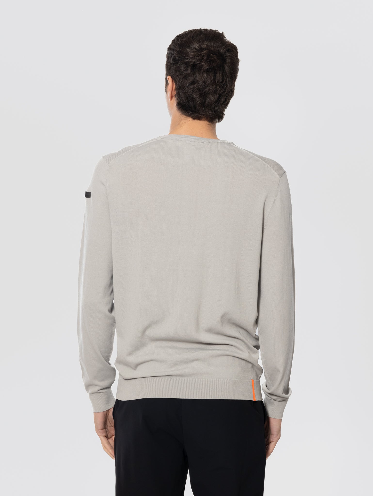 - Lavorazione a sottili coste elasticizzate del colletto, dei polsi e del fondo