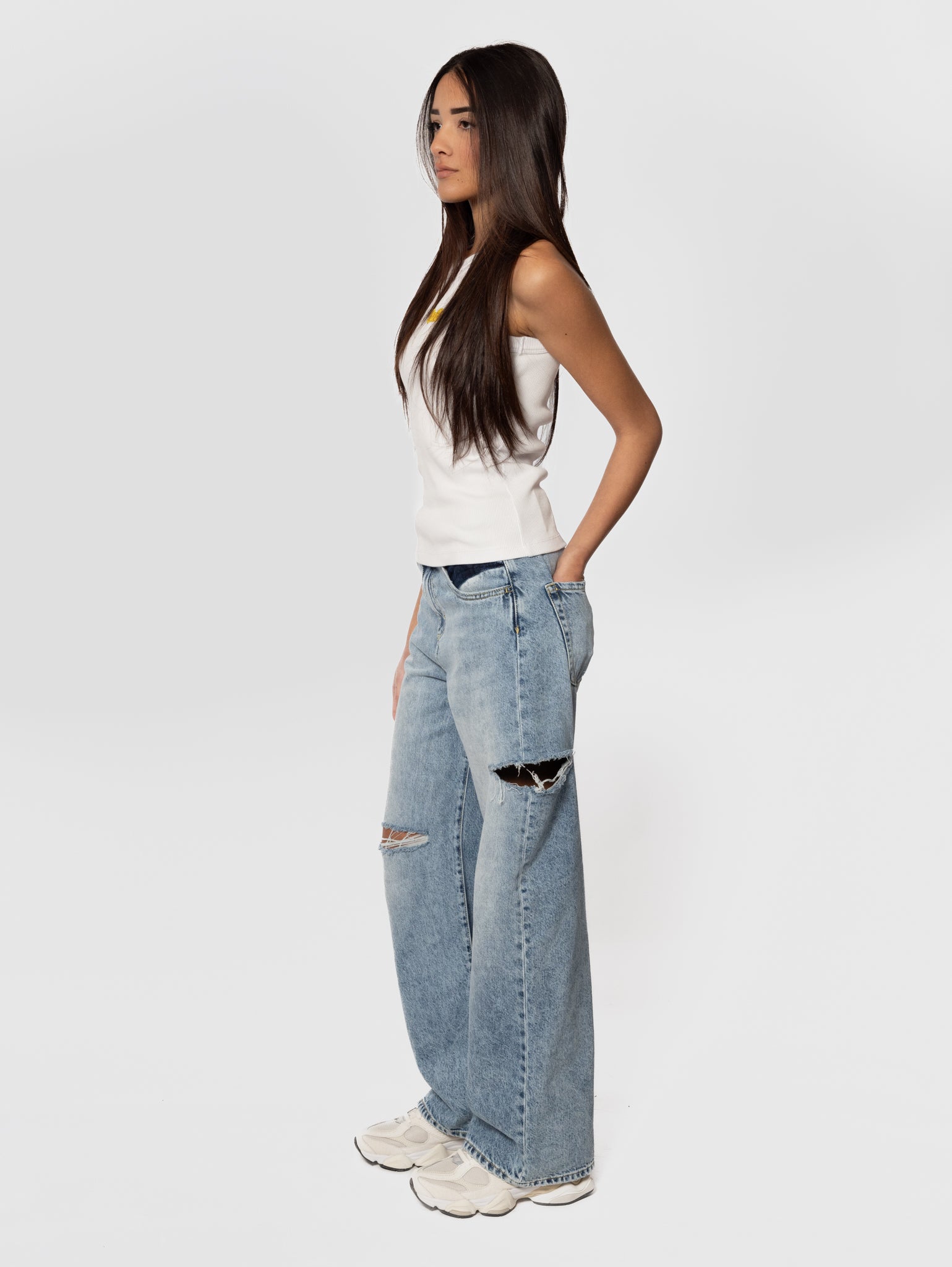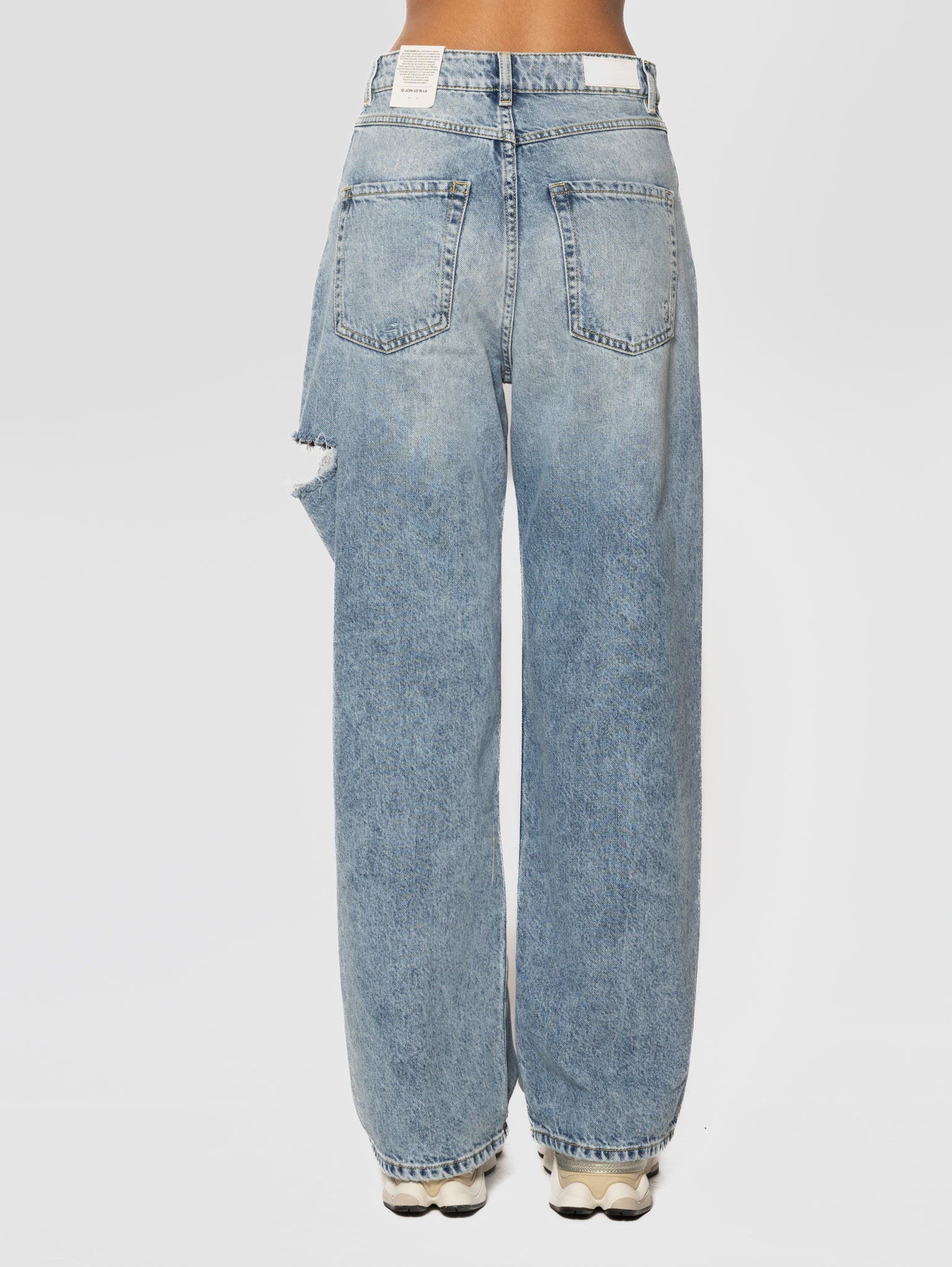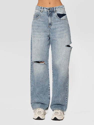 Jeans mit weitem Bein und seitlichem sowie kniefreiem Riss Poppy in mittlerer Taille für Damen von Icon Denim Los Angeles.