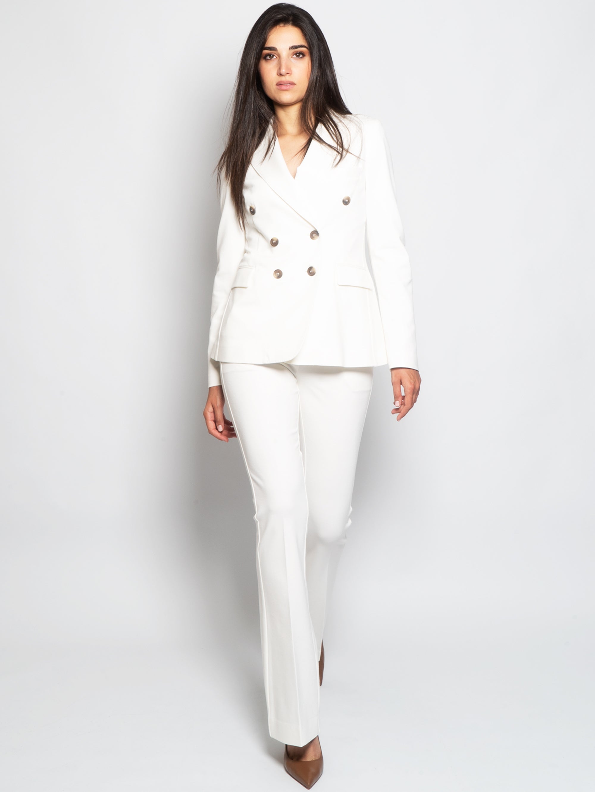 Zweireihige Jacke aus cremefarbenem Stoff mit Nähten