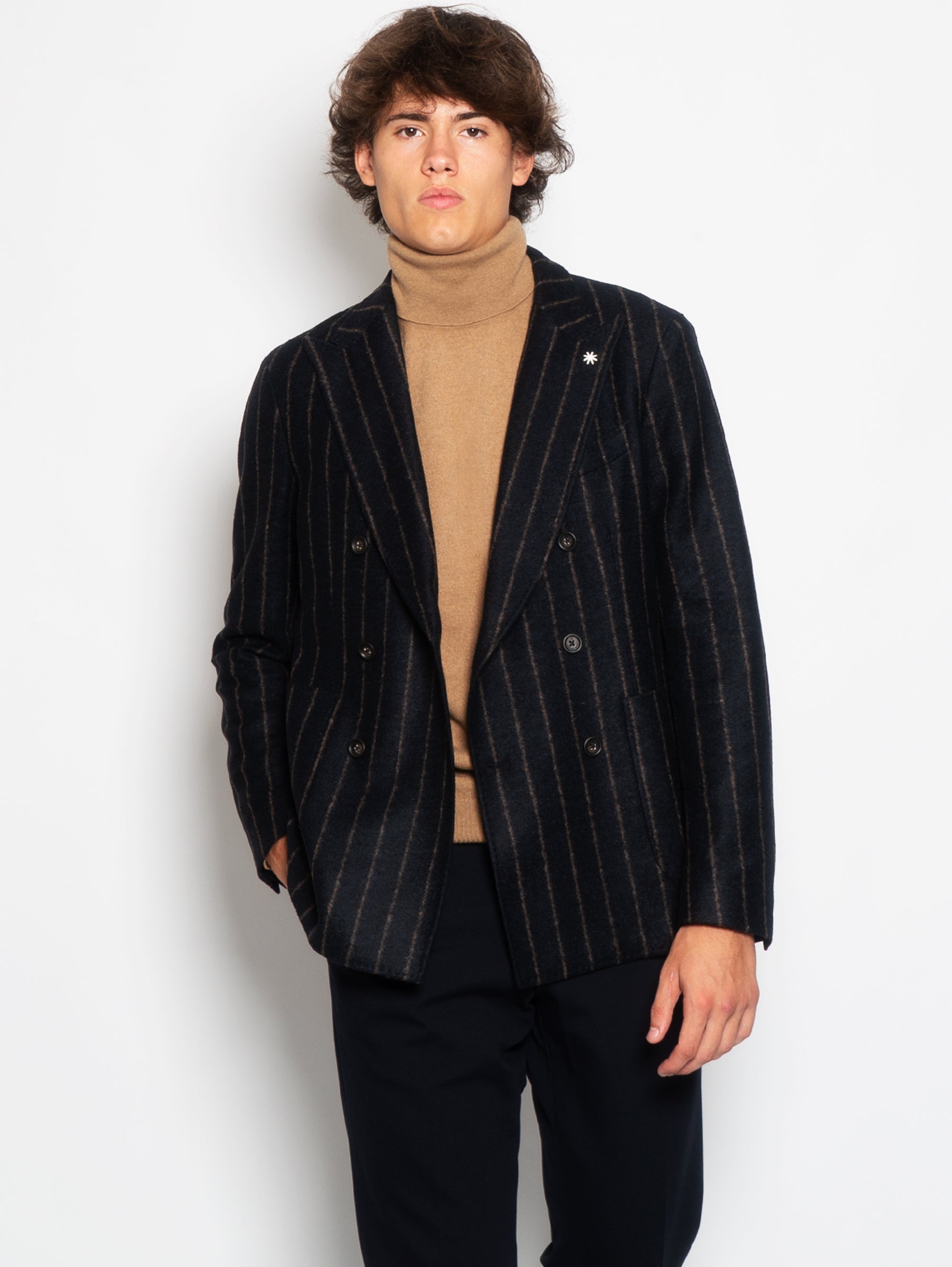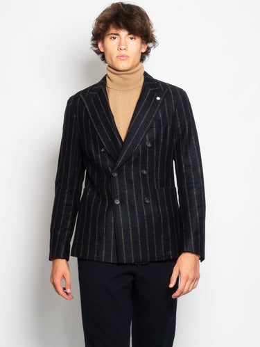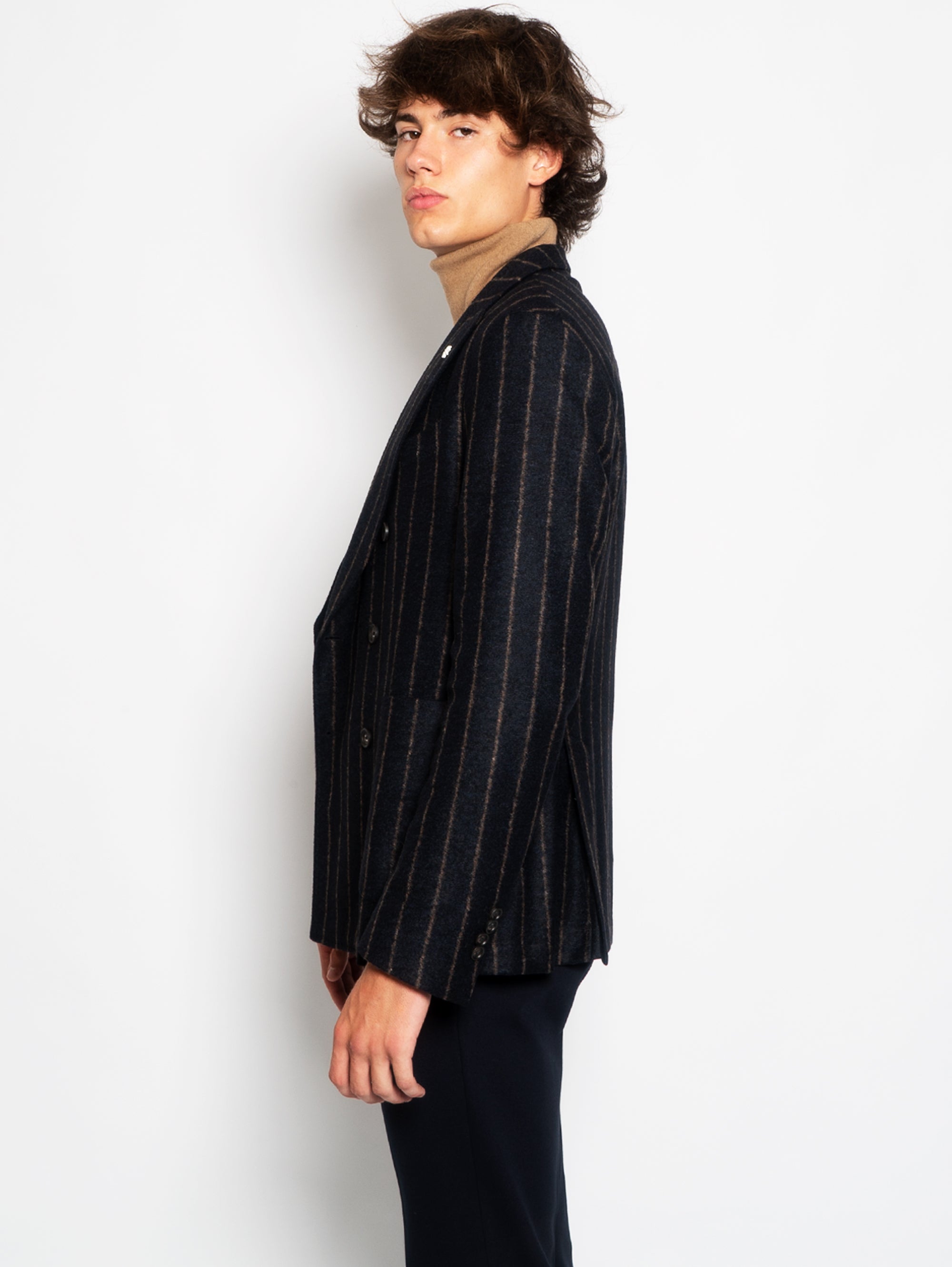 Blaue, zweireihige Cloud-Jacke mit Nadelstreifen