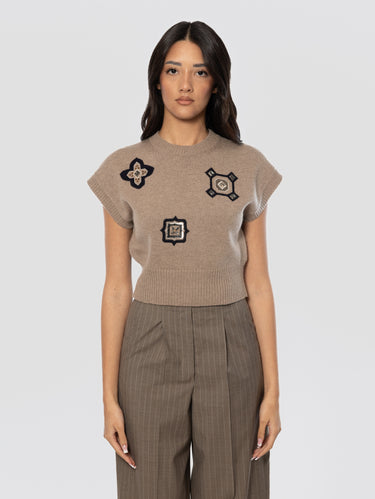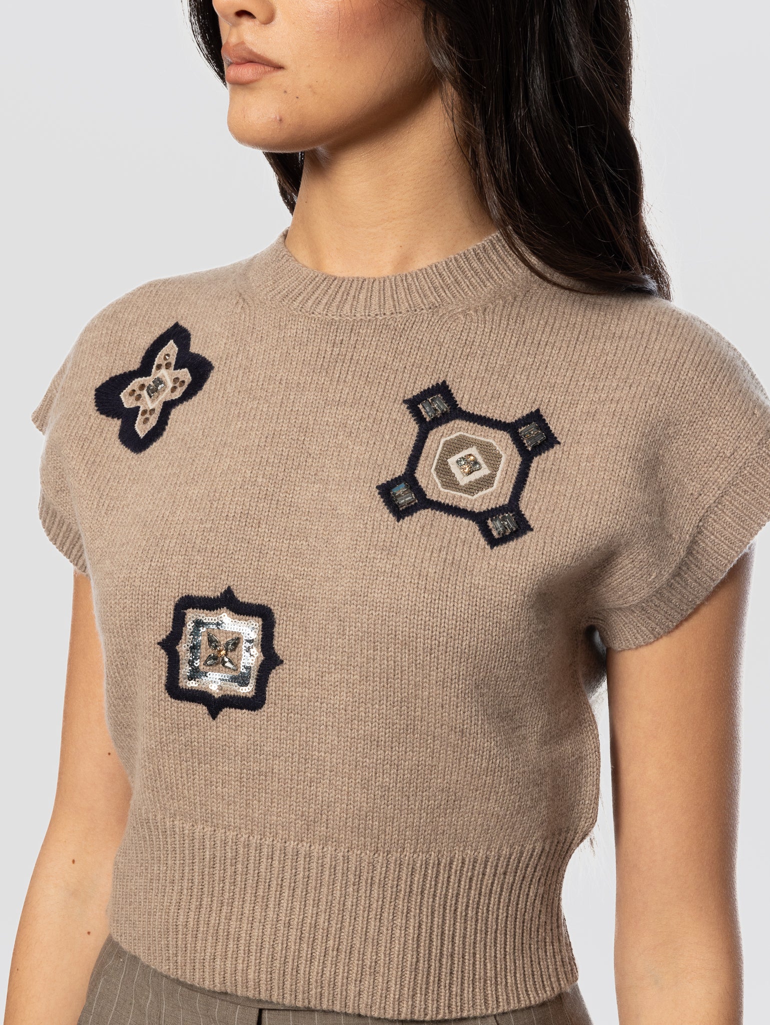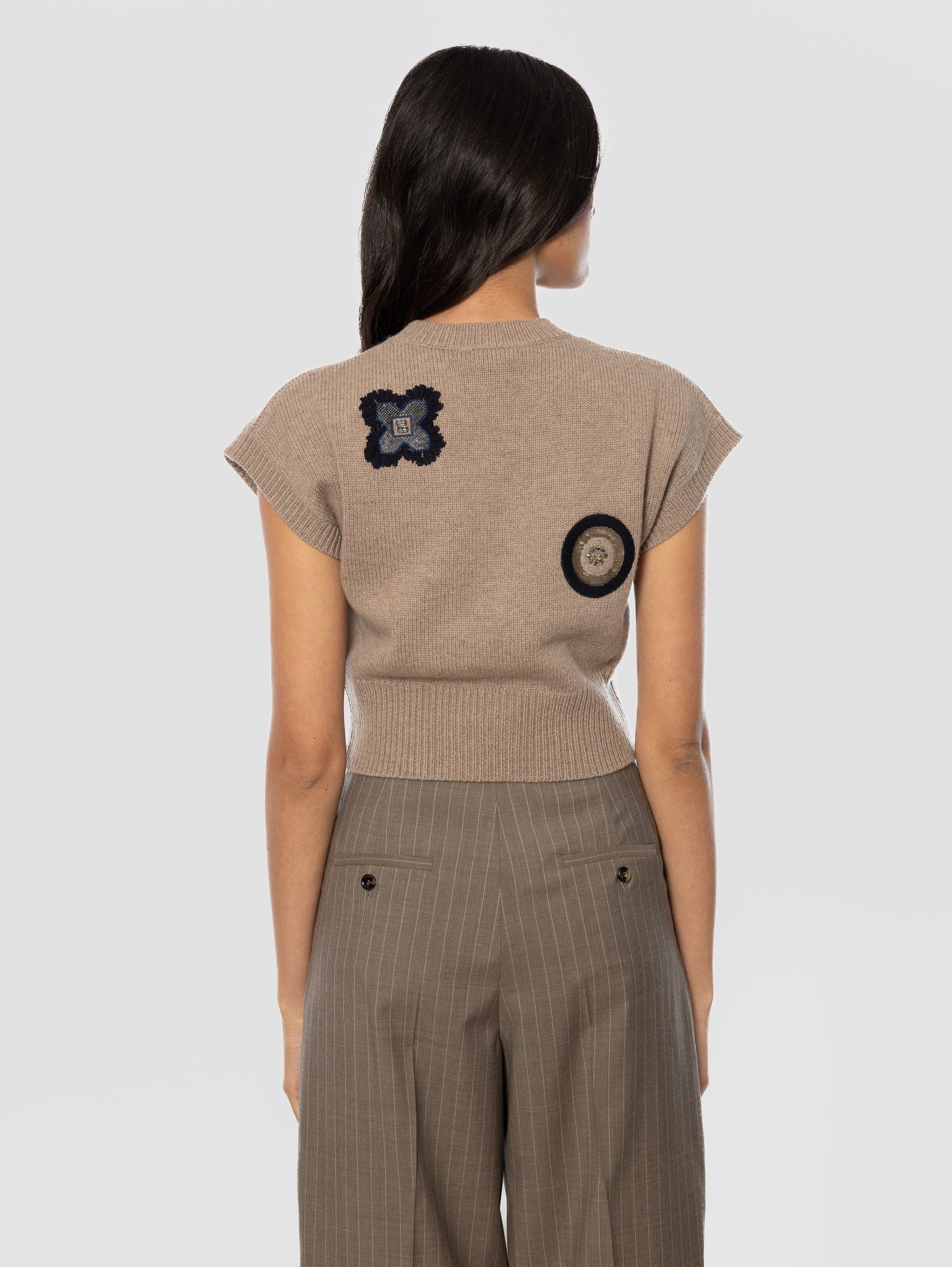 MAX MARA-Maglia Cropped con Ricami Sabbia-TRYME Shop