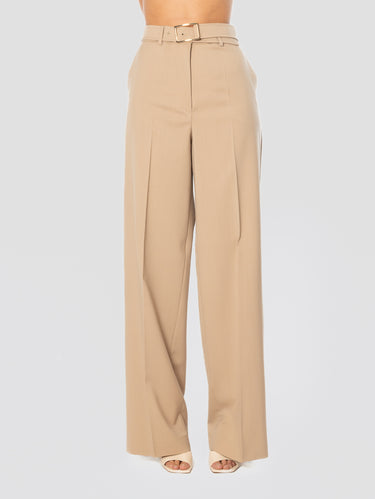 MAX MARA-Pantaloni con Vita Alta e Cintura Beige-TRYME Shop