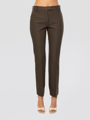 Pantaloni Slim in Cotone e Viscosa Stretch Verde Scuro