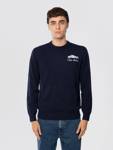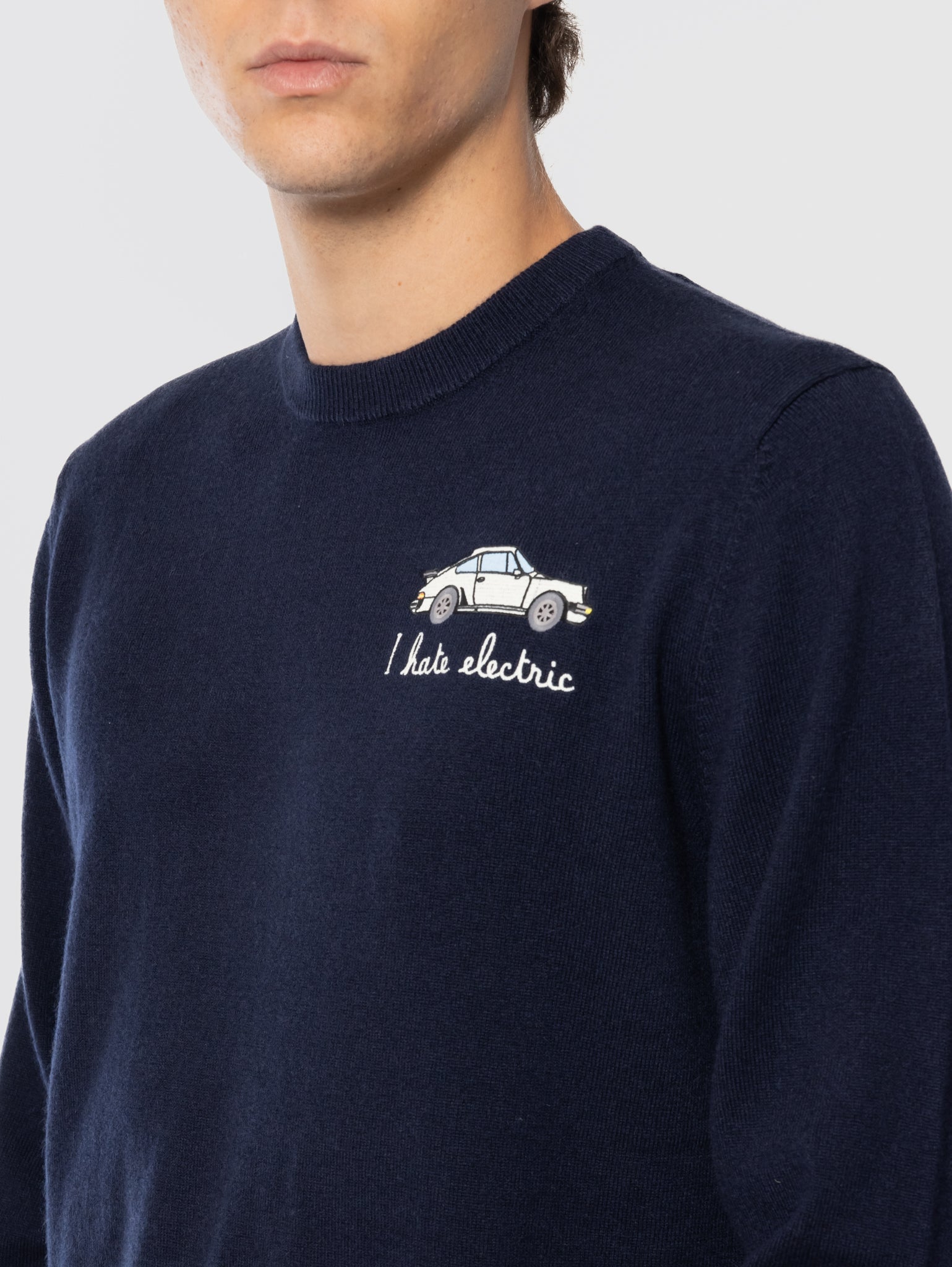 Maglione Girocollo con Ricamo I Hate Electric Blu