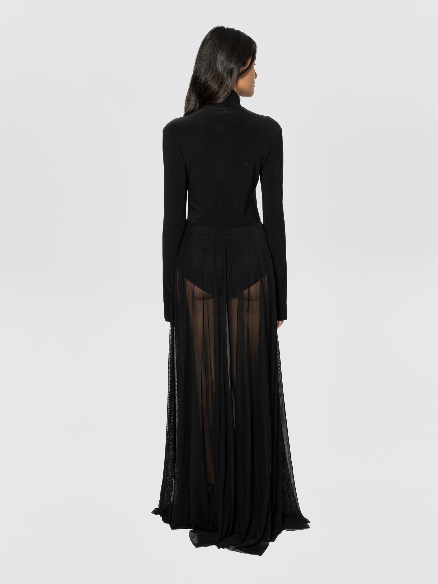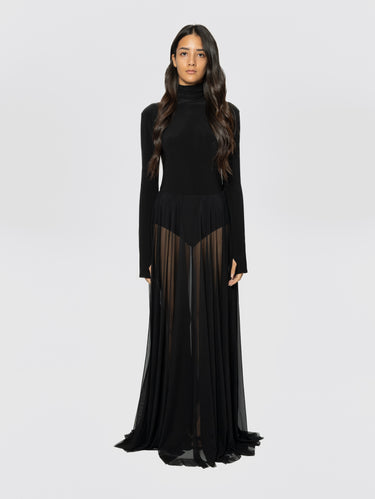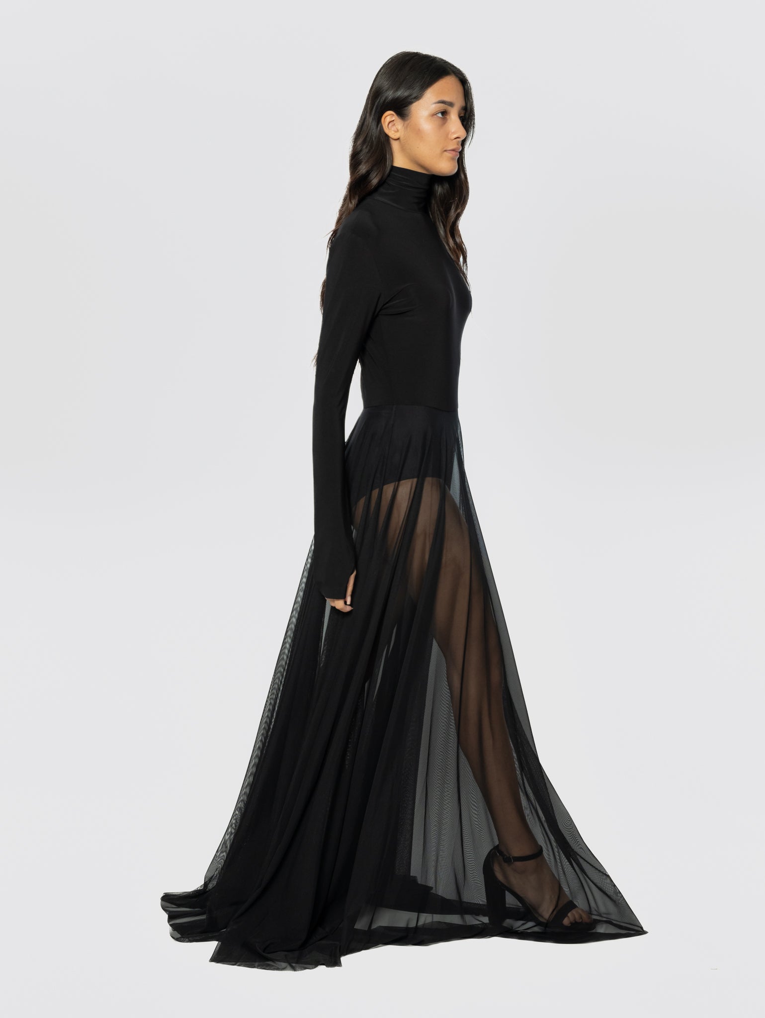 - Cod. ST3253PMR46001 - BLACK - LONG SLEEVE TURTLE NECK FLARED GOWN W/BODYSUIT - BLACK