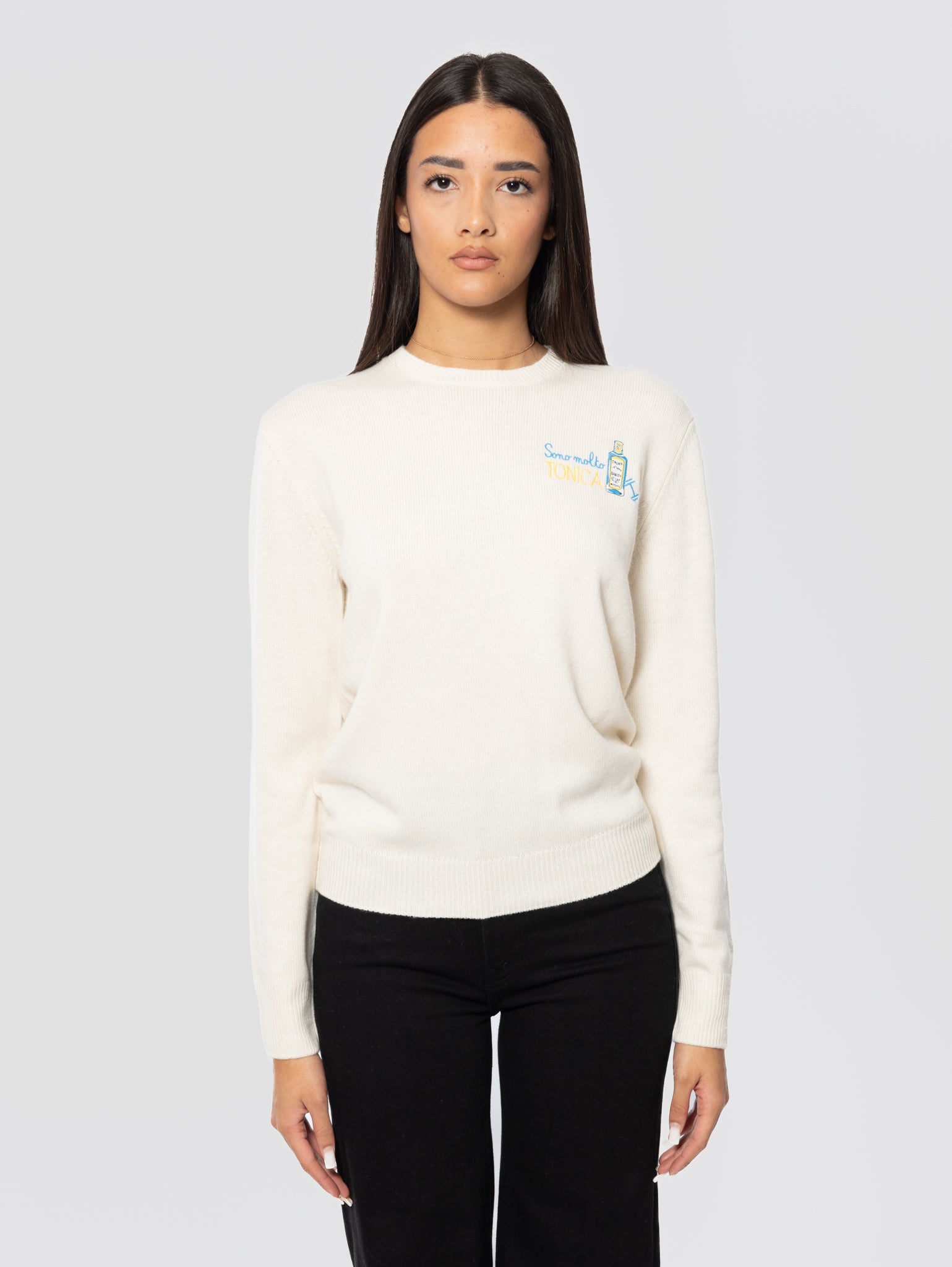 Maglione Girocollo con Ricamo Sono Molto Tonica Bianco