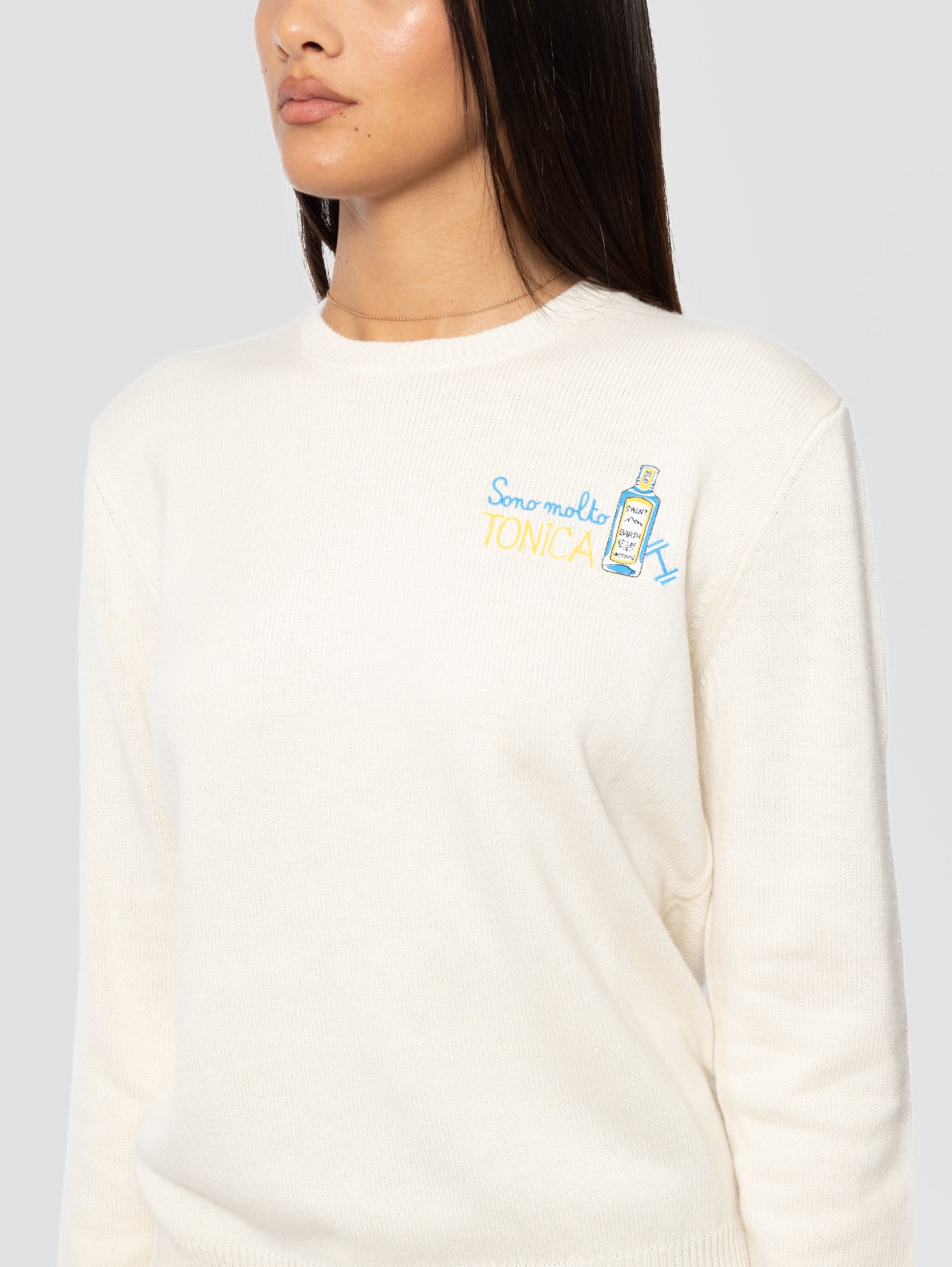 Maglione girocollo in misto lana con ricamo sul petto Sono Molto Tonica modello New Queen da donna di Mc2 Saint Barth.