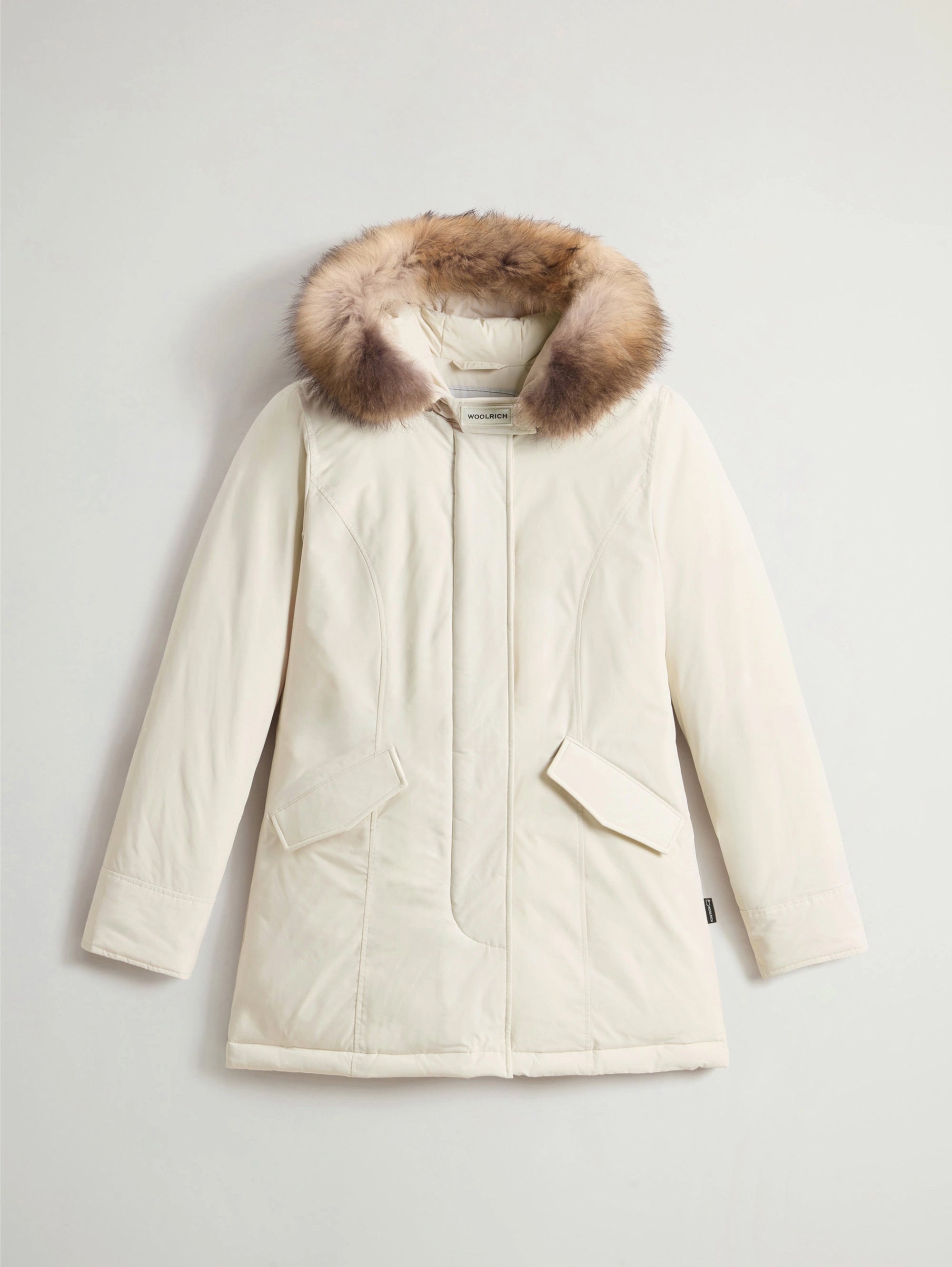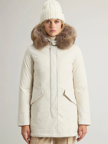 Giaccone parka luxury in Urban Touch da donna di Woolrich con cappuccio in pelliccia removibie.