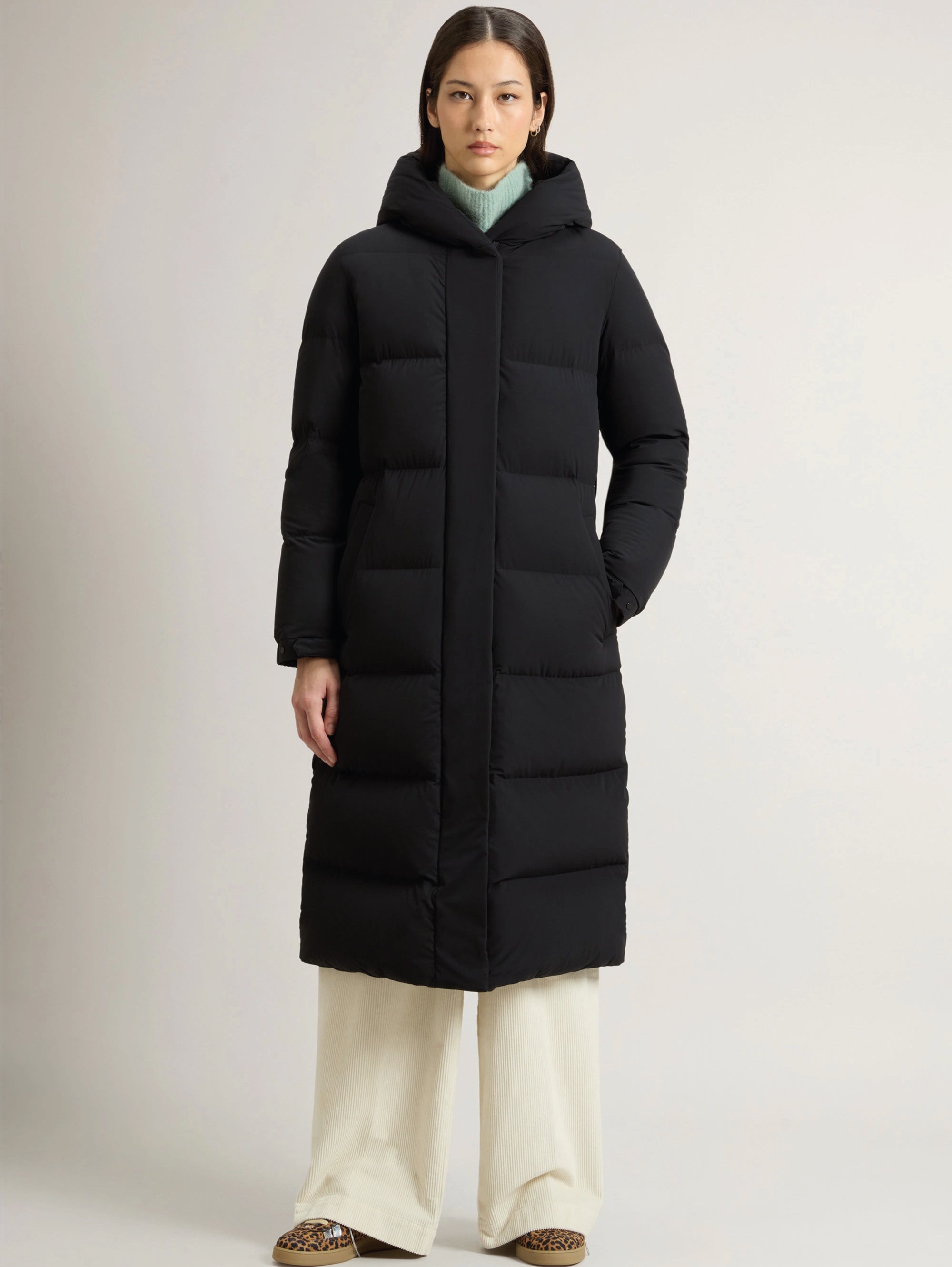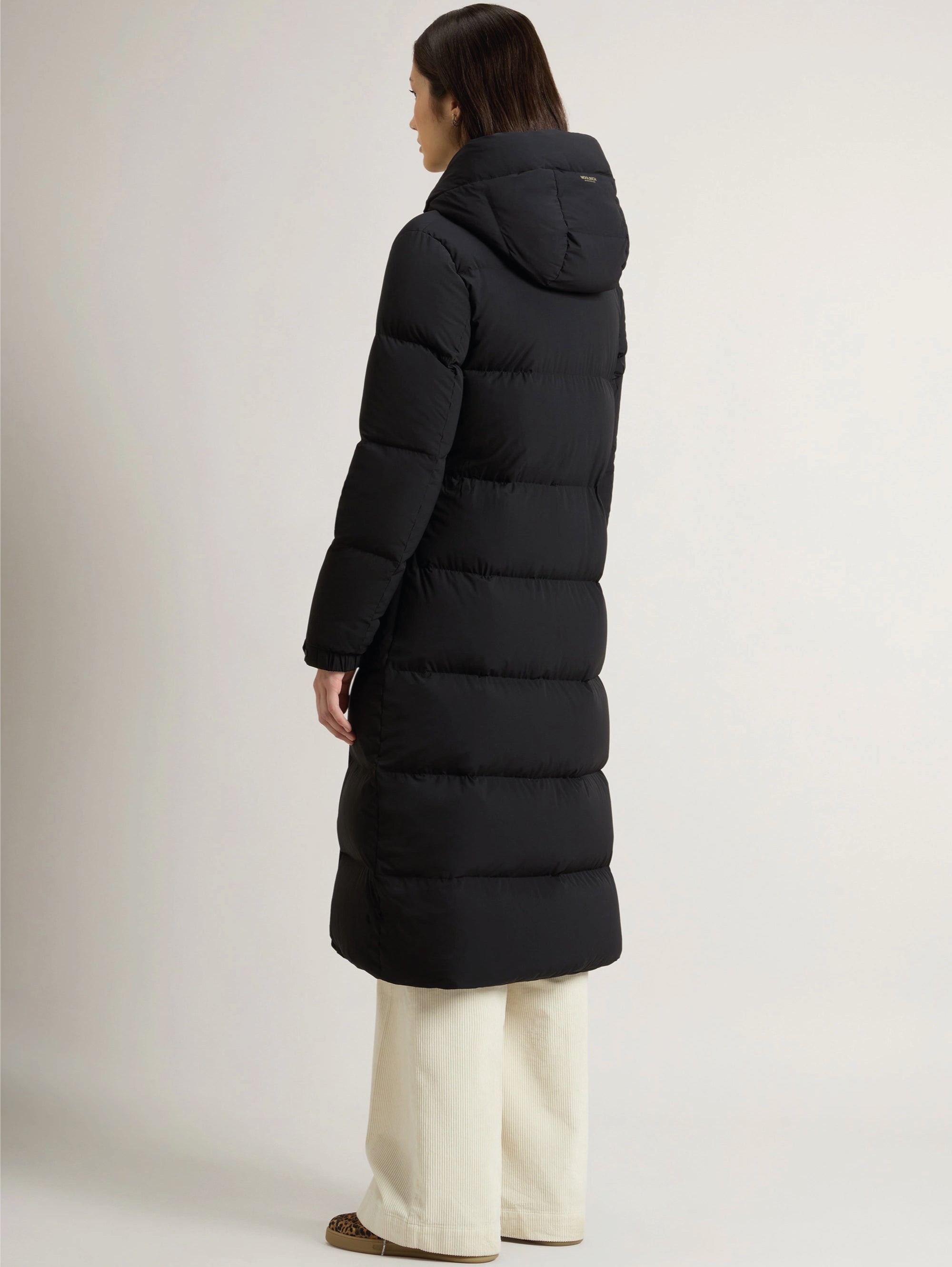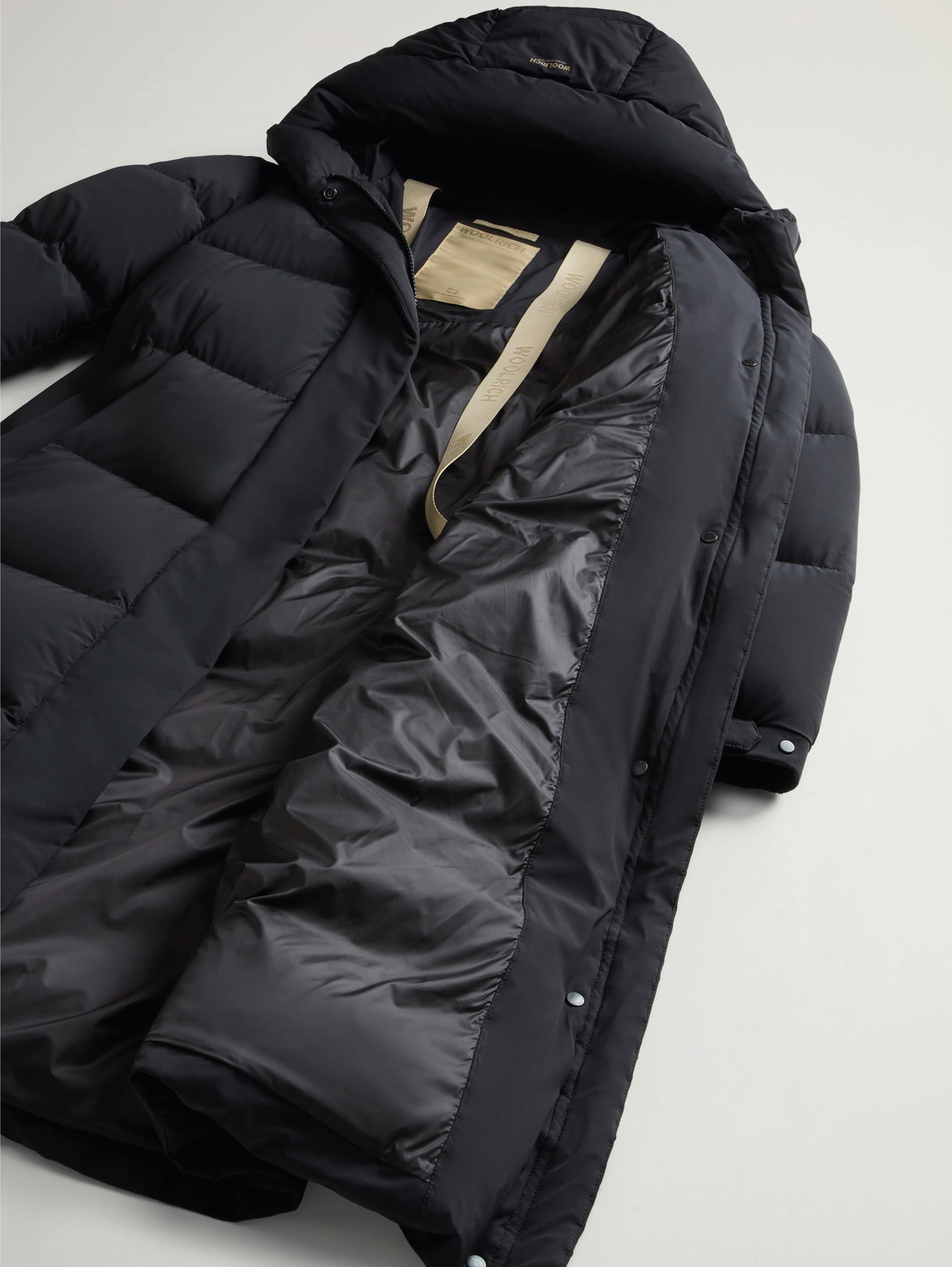 Piumino lungo con cappuccio e nylon finitura opaca Cloud Madison da donna di Woolrich.