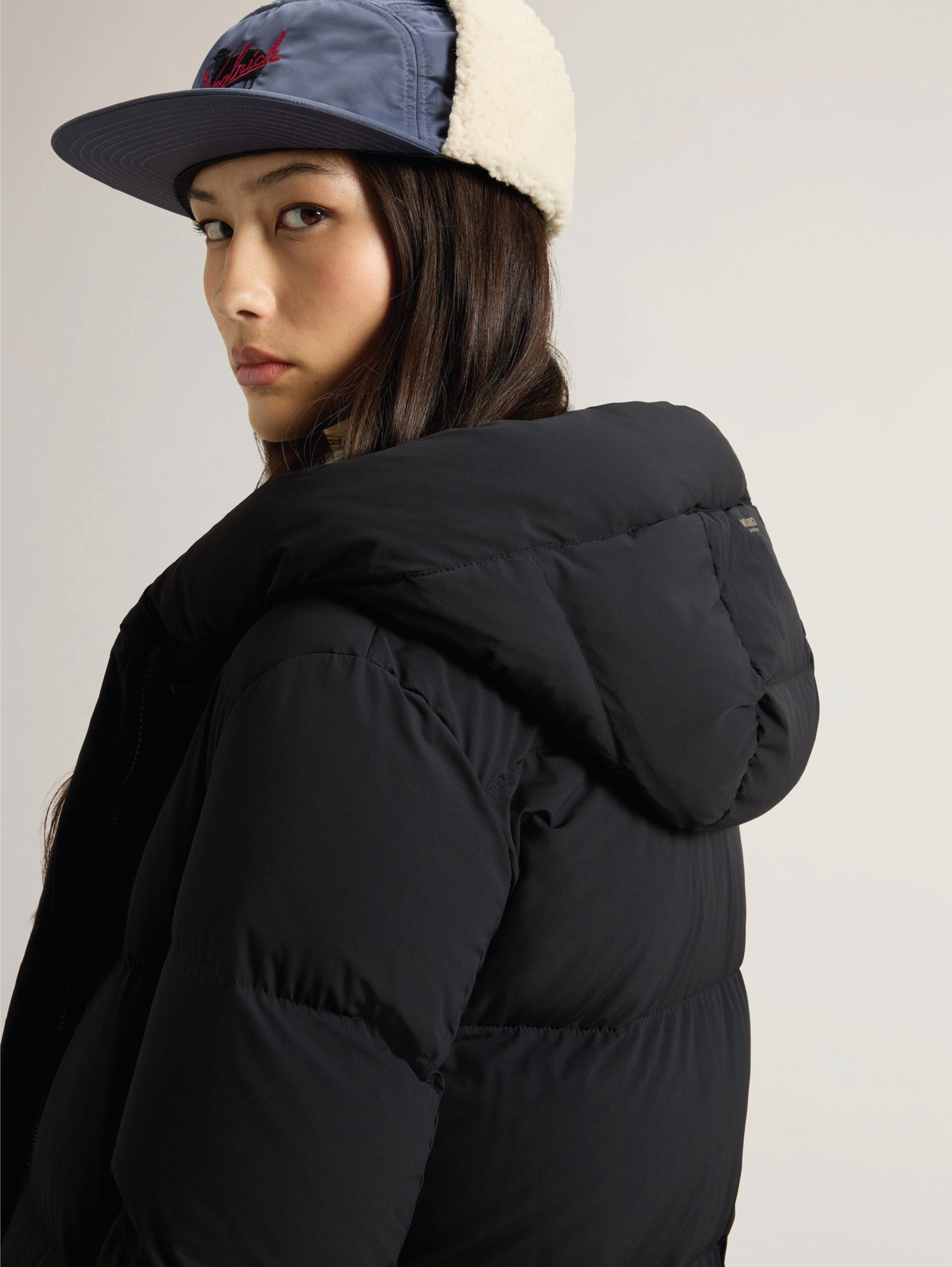 - Logo Woolrich applicato sulla manica sinistra
