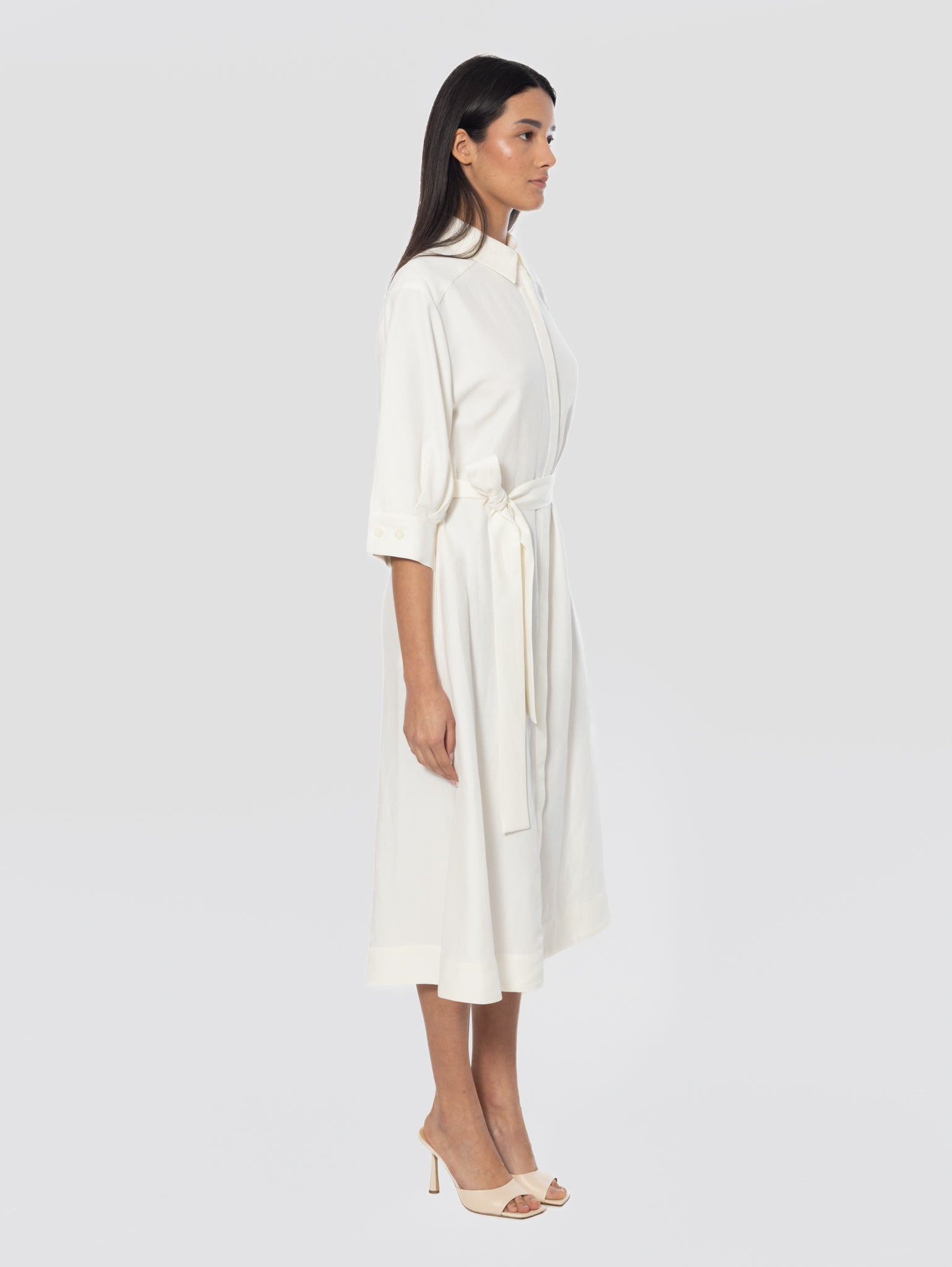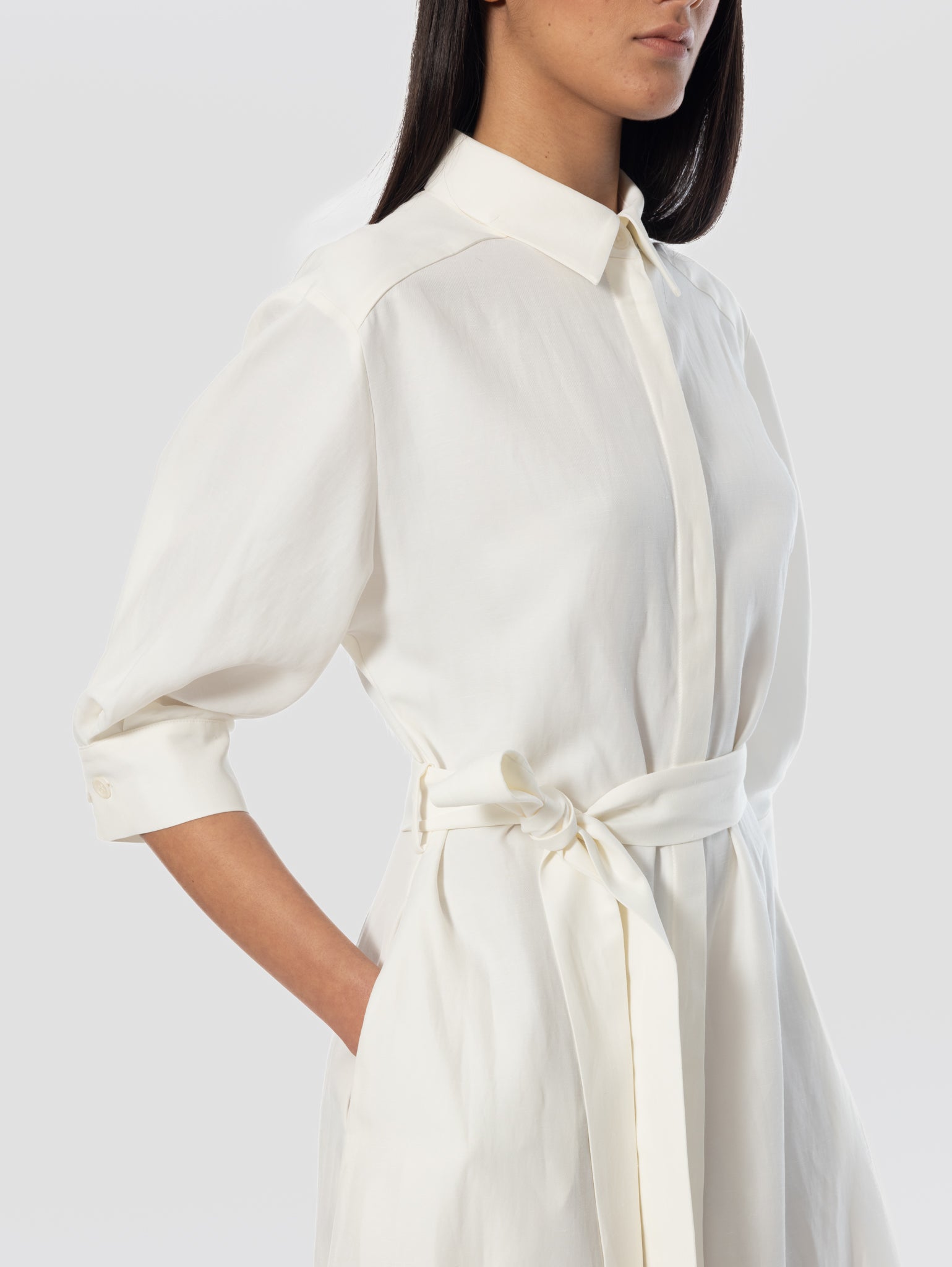 - Cod. D726153 RAISA26 - 002 - Abito Chemisier Viscosa e Lino - Panna