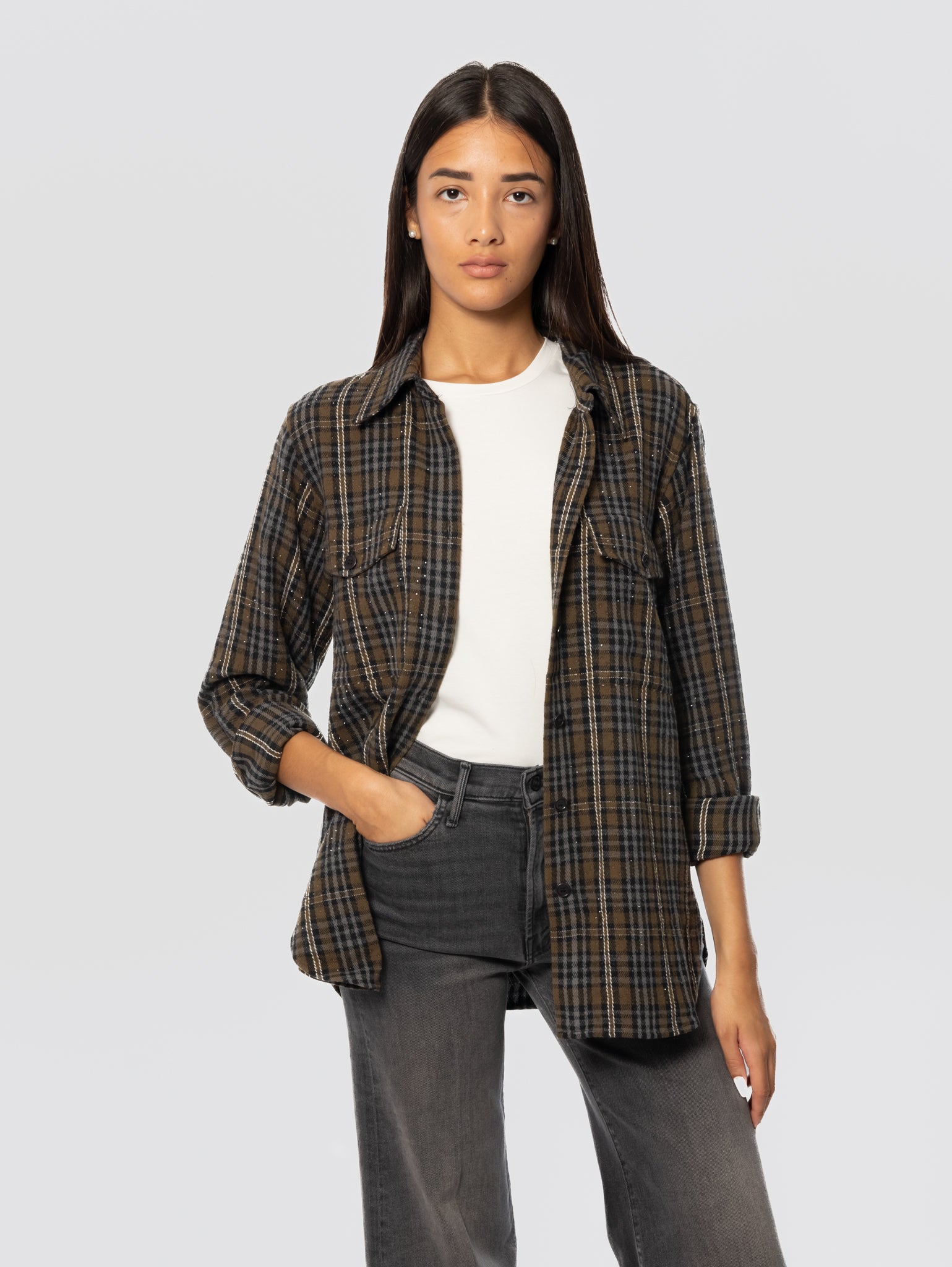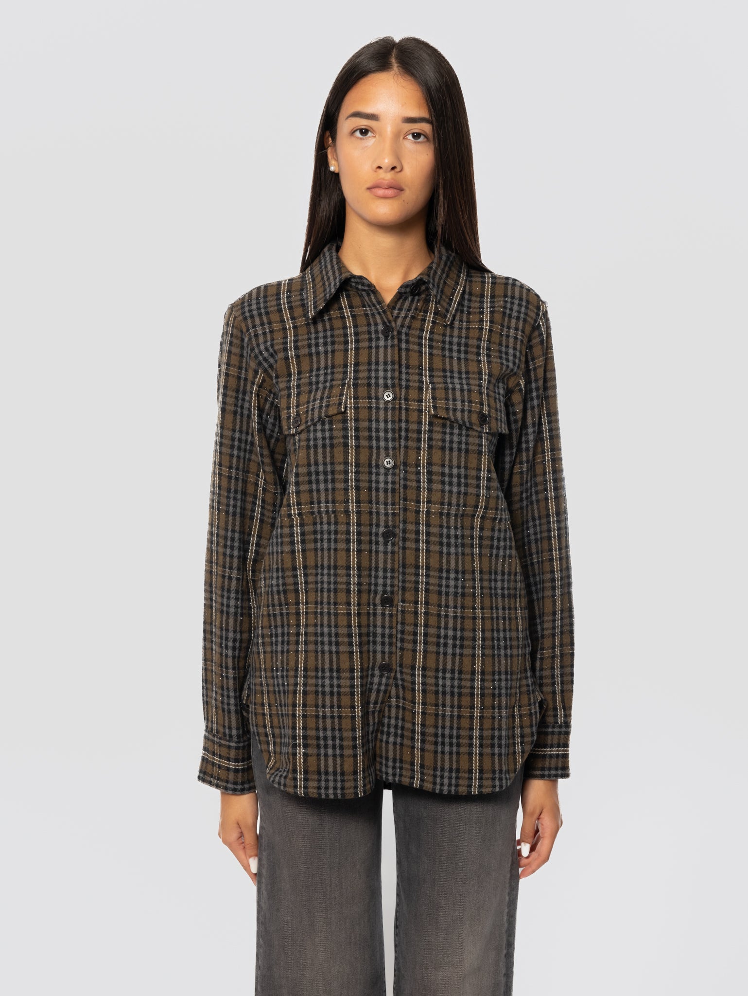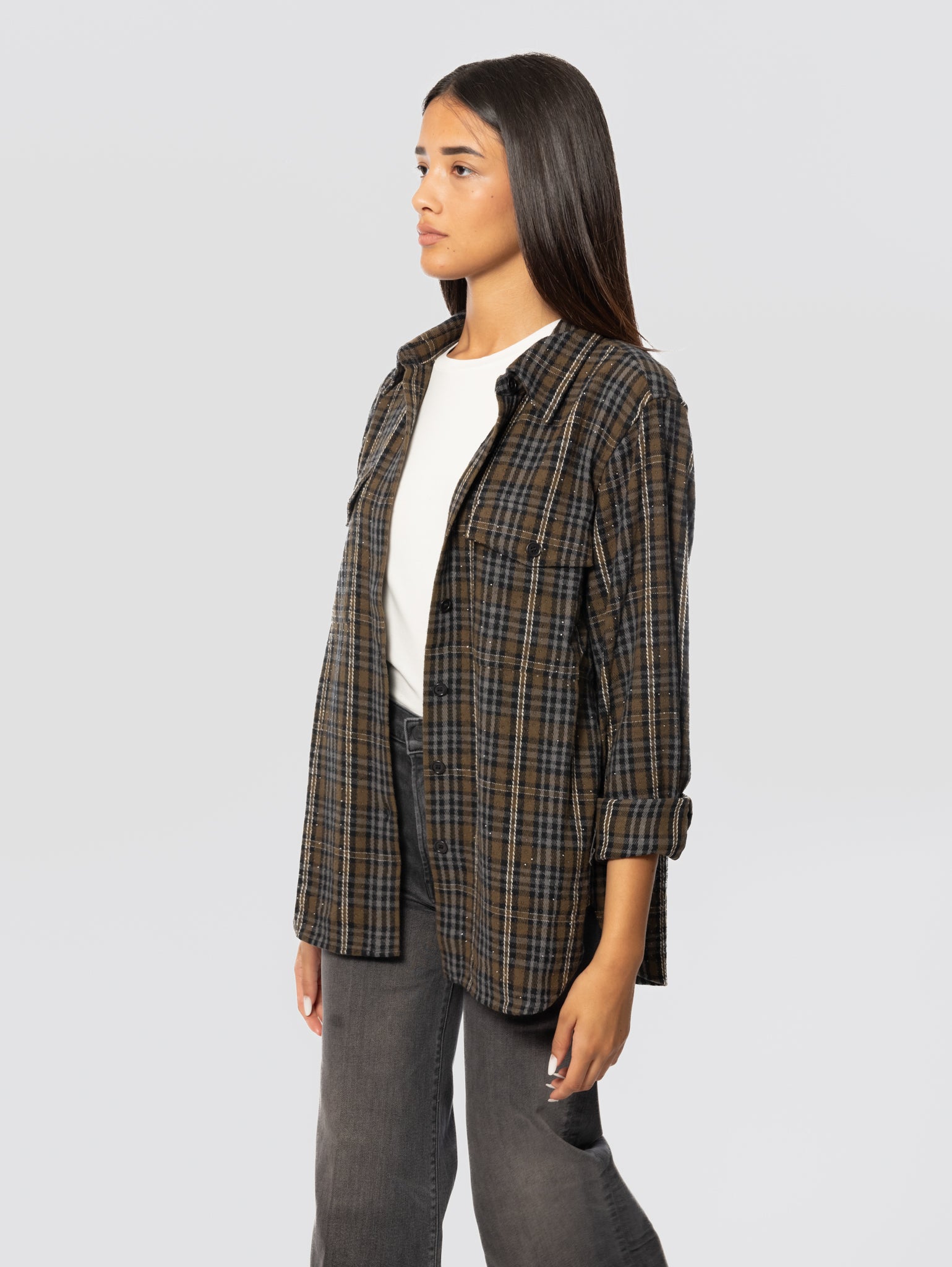 - Camicia check con strass