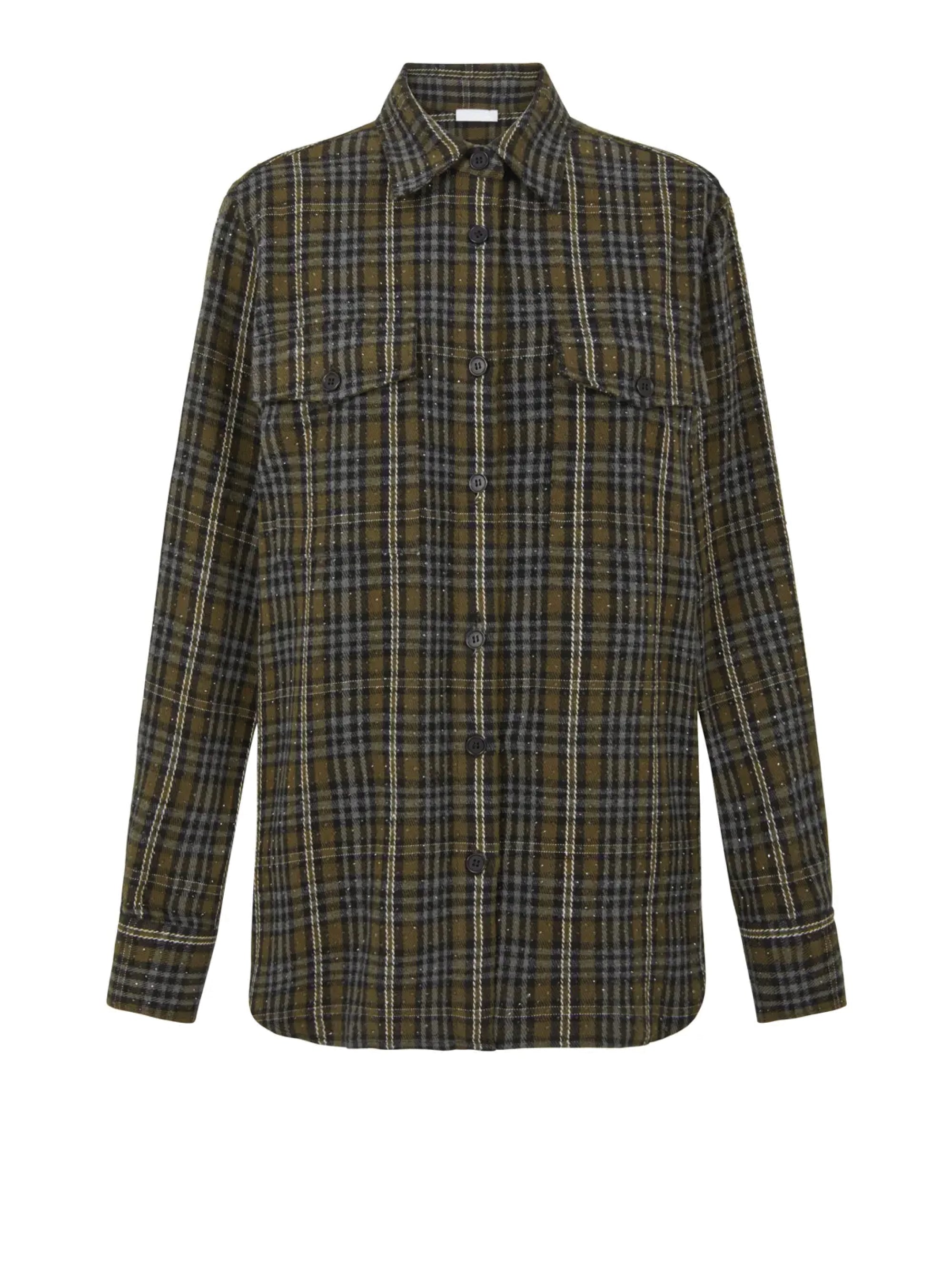 Camicia Check in Flanella con Strass Verde